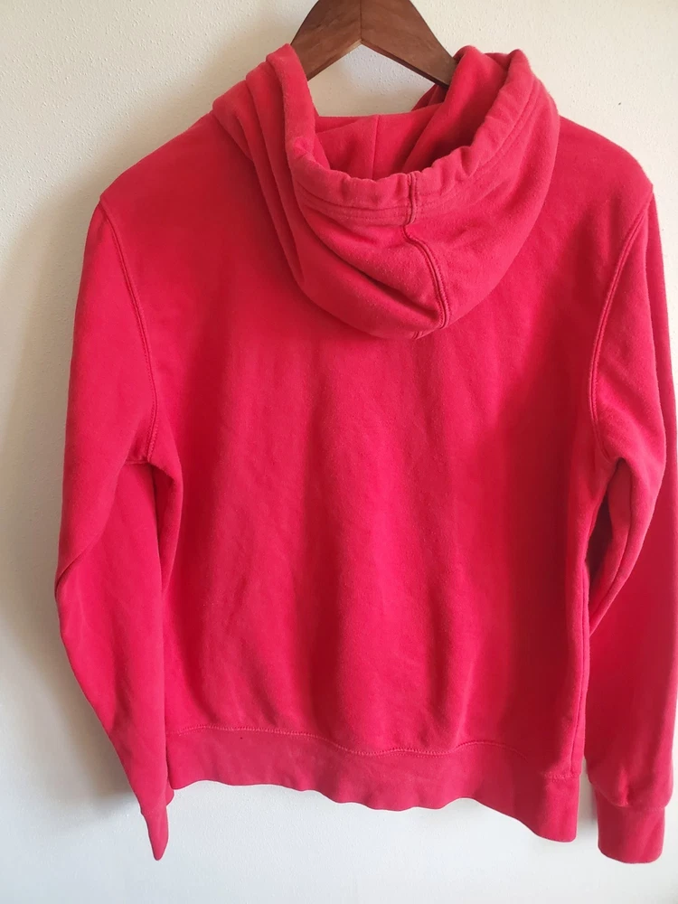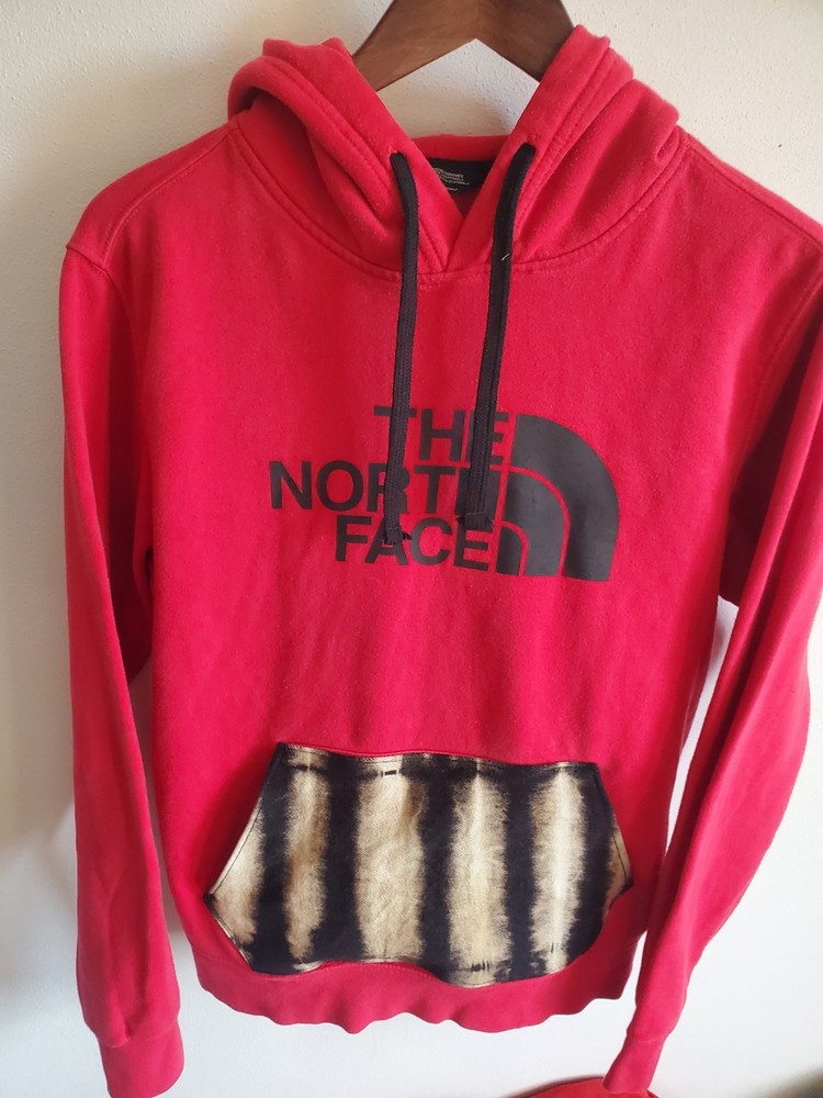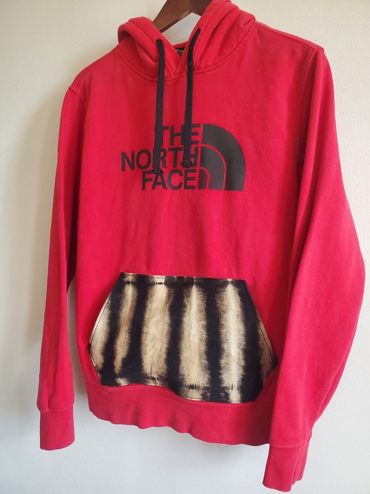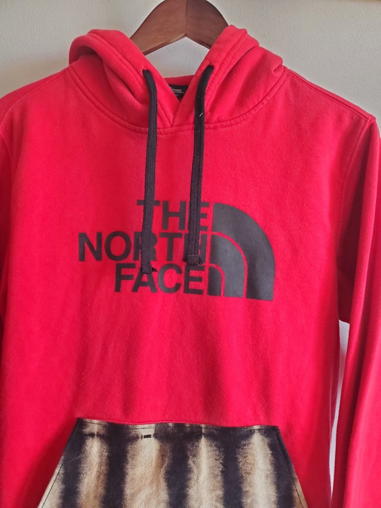 Elevate your casual style with this trendy The North Face Repuposed Street Hoodie. Made of a cozy cotton blend fabric, this hoodie features a solid pattern and a crew neckline. It has long sleeves and a drawstring closure for added comfort. The pullover style and semi-slim fit make it perfect for gym & training, walking, or hiking. This red hoodie comes with a stylish bleach denim pouch, adding to its unique appeal. It is made of fleece and has pockets for added convenience. The hoodie is perfect for men in size S who want a combination of style and functionality. Add this hoodie to your activewear collection and enjoy the great outdoors or casual outings in style.