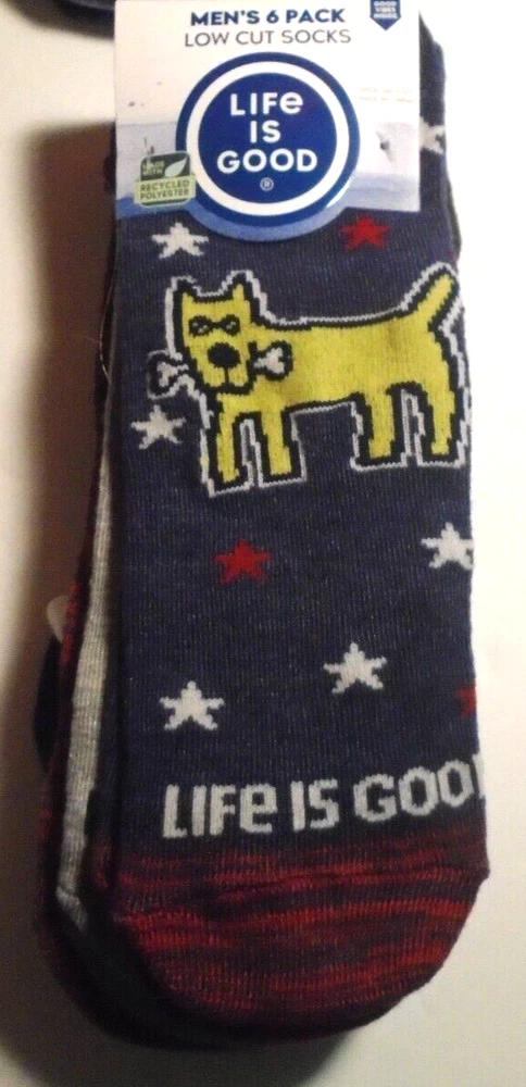 Life is Good Socks Dogs & Stars Low Cut Men's 6 Pairs Blue Recycled Polyester marsh