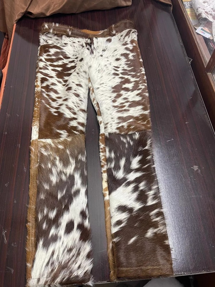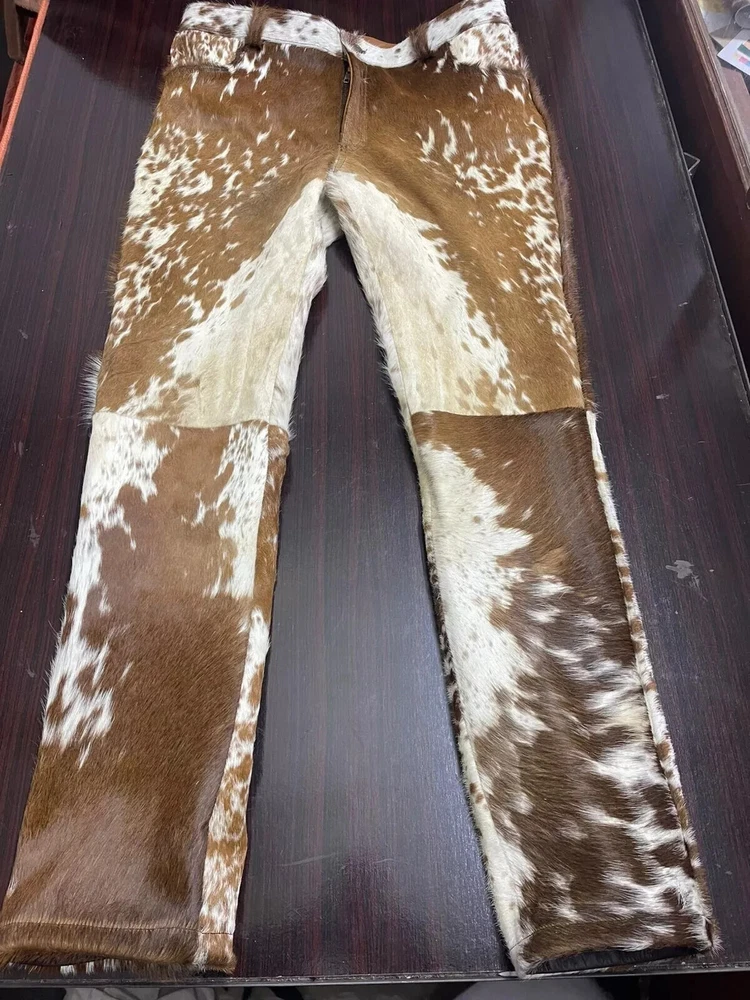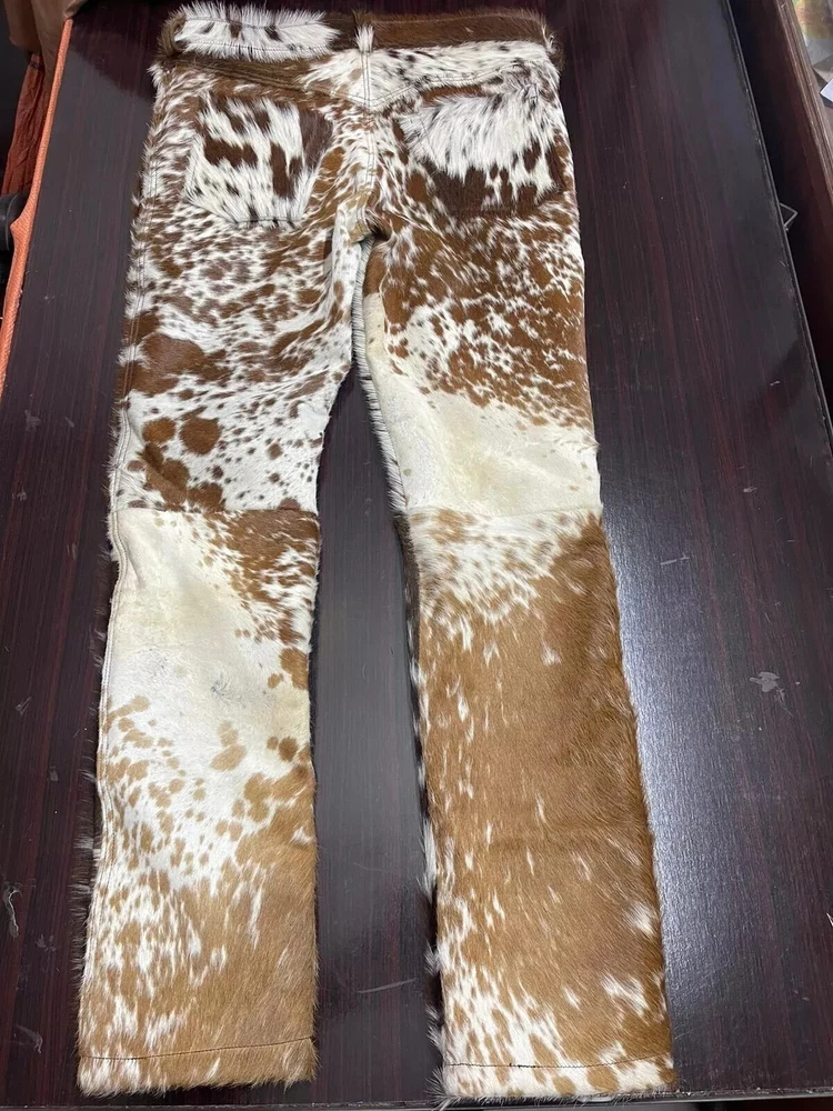 Men's New Natural Leather Pant Genuine Soft Cowhide Causal Wear Pant Leather Jeans Colours Pattren may vary slightly as it is 100% original Natural Cow Hide Skin. External : Real Cowhide Skin Front Internal : Polyester Lining Pockets : Two Front Pockets Two Backside Pockets We Accept Return If Any Issue with our Product Feel Free to contact us. NOTE: Colours Pattren may vary slightly as it is 100% original Natural Cow Hide Skin. NOTE: Colours may vary slightly from original due to individual monitor colour settings and/or light conditions when photographed. Colours Pattren may vary slightly as it is 100% original Natural Cow Hide Skin. Size : Please select your jacket Size according to the size chart in Images Gallery. If you choose to have a Custom (Made-to-Measure) jacket, please email us your measurements. Delivery: We'll deliver your order via DHL / FEDEX / USPS at your door step. Returns & Exchanges: Hassle Free Returns and Exchanges. Colours Pattren may vary slightly as it is 100% original Natural Cow Hide Skin.