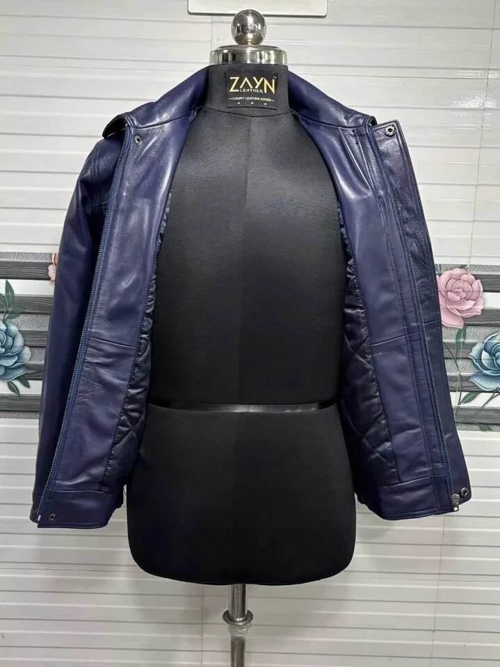 Abez Leather Fashion Item Details Men's Soft Lambskin Leather 70's Classic Bomber Jacket Retro Style Blue Jacket Stay warm and stylish with this men's Blue Bomber jacket, expertly crafted from 100% genuine lambskin leather. Designed for the winter season, this premium jacket offers a perfect blend of durability, comfort, and fashion. Elevate your winter wardrobe with this high-quality lambskin leather Bomber jacket—available in all sizes! Size and Color Consult the provided size chart in the image to ensure a perfect fit. Follow the instructions for accurate measurements. Unsure about sizing? Send us a message with your body measurements, and we'll tailor your jacket accordingly. Enjoy our FREE CUSTOMIZATION service to meet your specific requirements; simply get in touch with us. Explore a variety of COLORS by contacting us for your preferred choice. We Also Accepted Bulk Orders. Customize / Tailor Made Leather jacket for Men & Women in Sheep / Lamb antique leather jacket Customize your order to meet your specific requirements. Dear Customer, Please answer the below questions in order to serve you better : Shoulder = Chest = Arms = Waist = Sleeves = Tummy = Length of jacket = HIP = Actual height = Shipping Information Color of actual product may vary due to photography/light effects & also due to computer screen resolution and color settings. Buyer will bear custom-duty/Import duty charges. Orders are shipped using DHL or FedEx, occasionally utilizing India Post based on location and service accessibility. The Accessories of the Leather item such as Button, Zippers, & color might differ due to material availability in the market but we use Premium Quality only. Return Policy If you find that product is not as per product detail, we will accept a return for Item within 30 days of receiving item in original condition as it was sent and we will refund you EXCLUDING shipping charges. Buyer is responsible for return shipping & handling charges. A request you to Please don't leave negative or neutral feedback, if any problem with the product, you should contact us first and also don't open a case, first contact us we will fully help the buyer to resolve their problem. THANK YOU