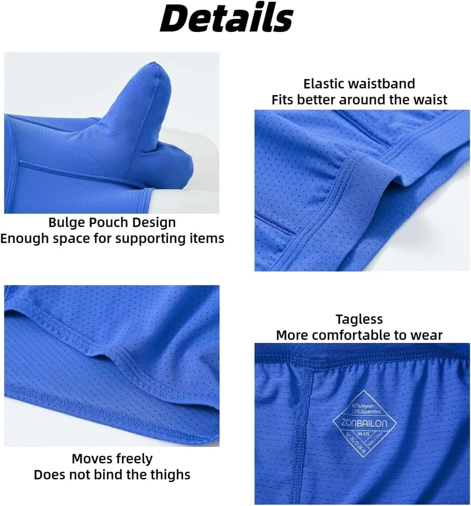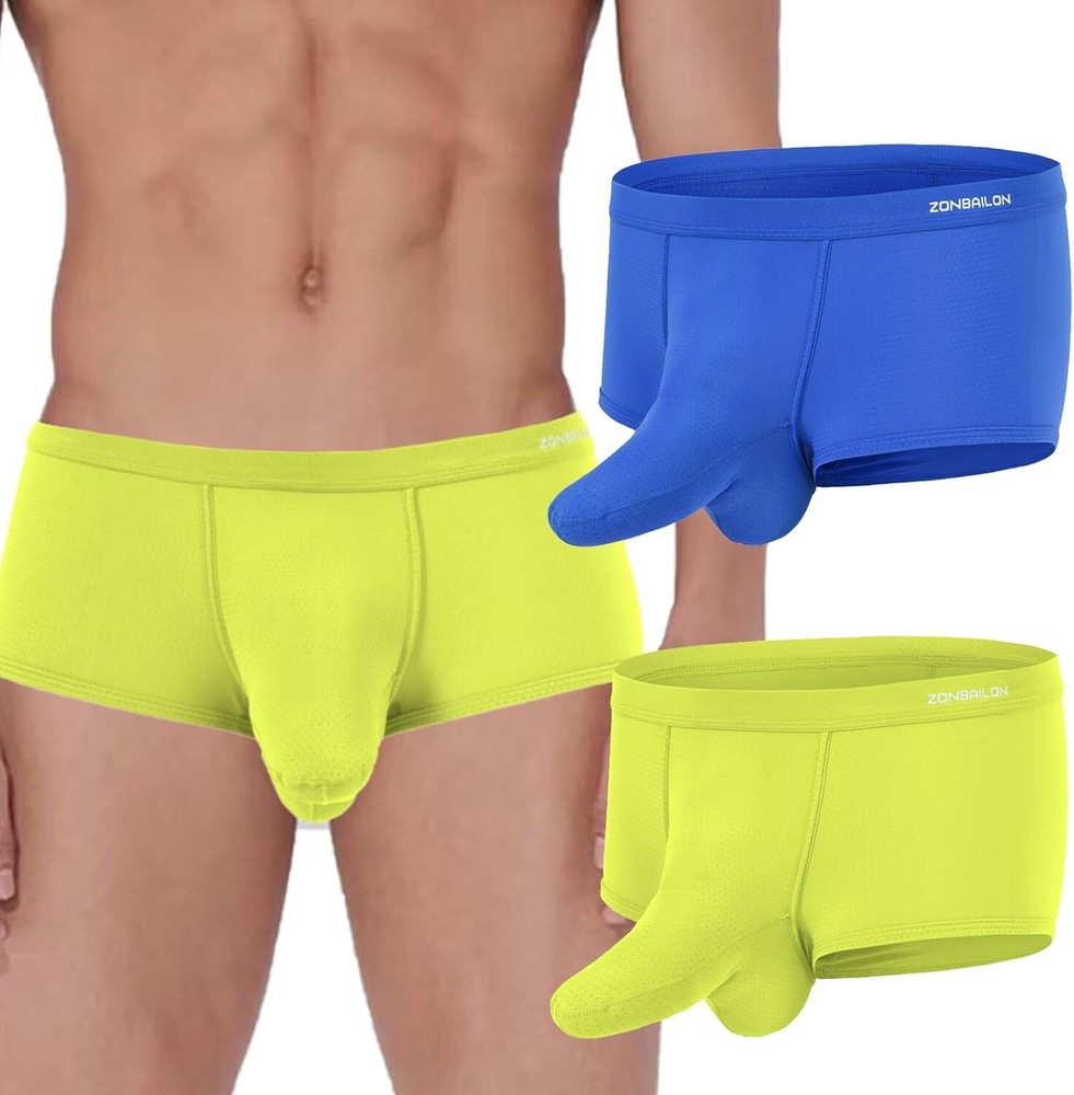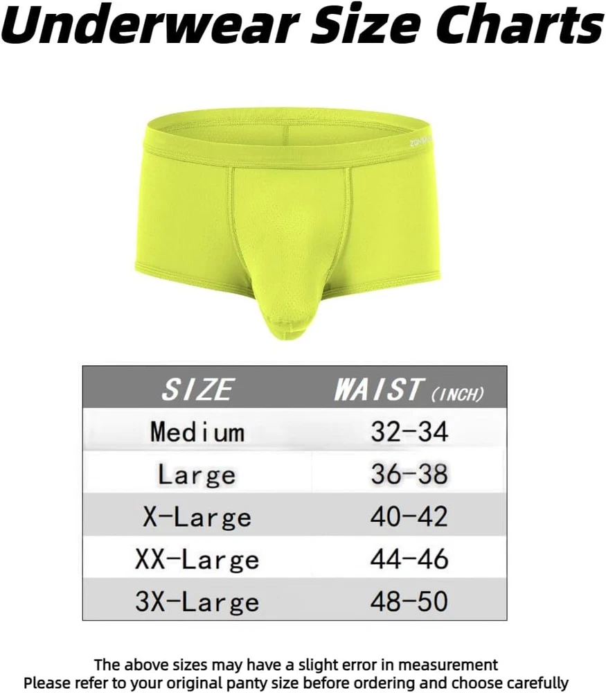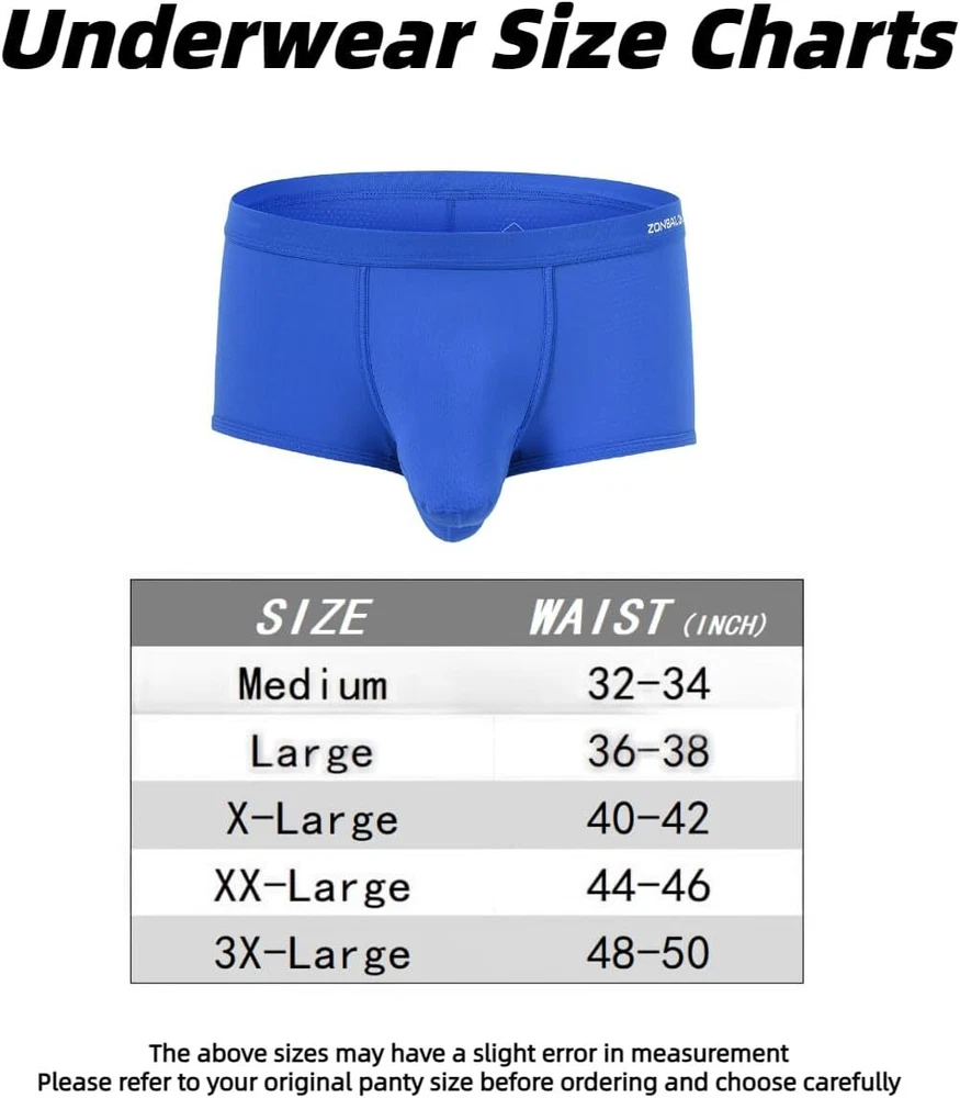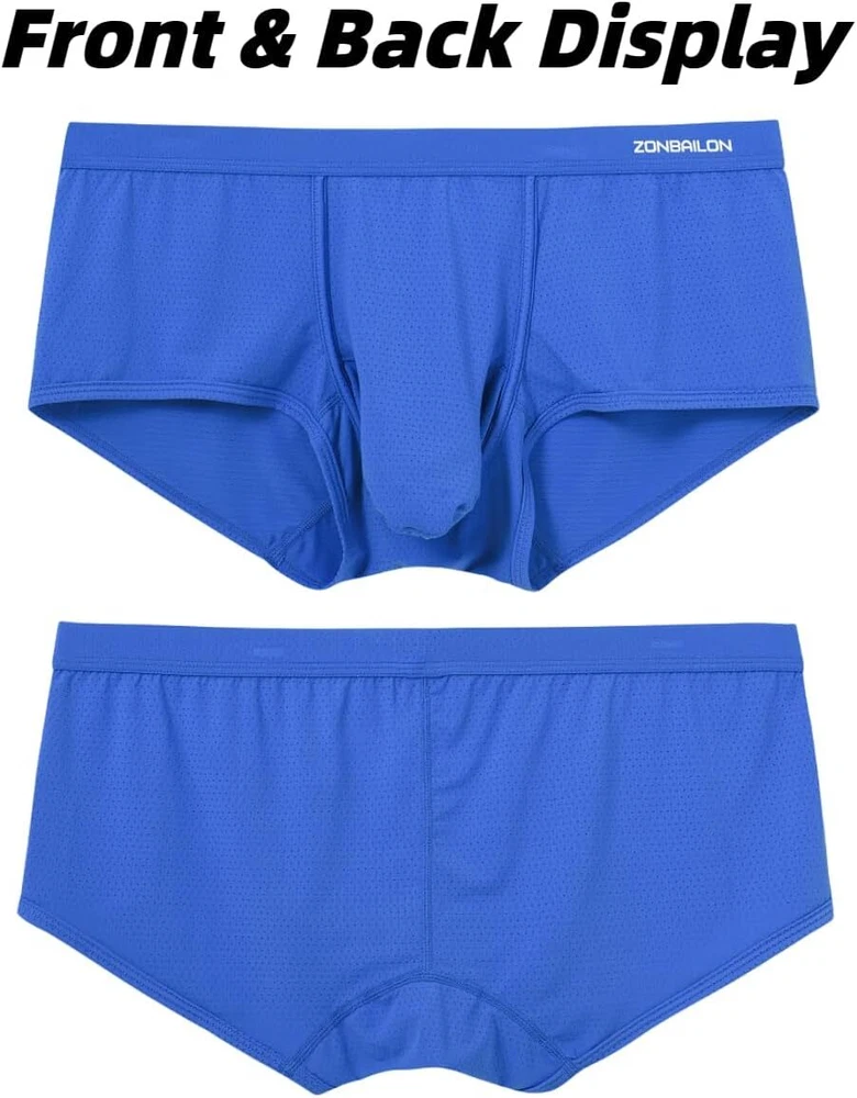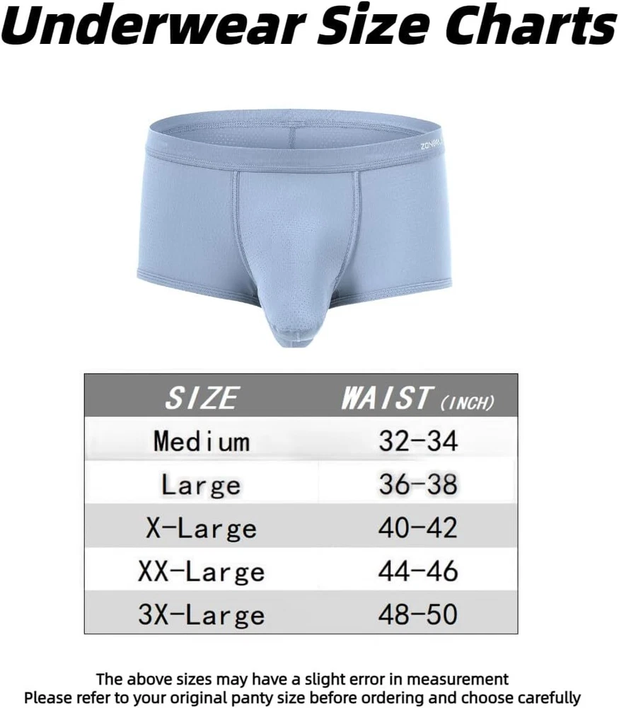 About this item Experience unmatche d comfort with our mens athletic underwear, crafted from 87% nylon and 13% spandex. The ice silk fabric provides a soft, cool touch against the skin, ensuring you stay comfortable throughout the day, no matter the activity Breathability is key with separate pouch boxer underwear featuring placed ventilation holes. This design promotes airflow, preventing moisture buildup and keeping you fresh, making these men's sexy boxer briefs with pouch ideal for both everyday wear and intense workouts Mens underwear boxer briefs features a double pouch design that adds extra support and enhances your well-being. This thoughtful construction ensures maximum comfort and provides a secure fit, effectively reducing chafing during physical activities Available in a range of sizes from Medium to 3X-Large, our elephant trunk underwear men cater to various body types. Medium = 32"-34", Large = 36"-38", X-Large = 40"-42", XX-Large = 44"-46", 3X-Large = 48"-50" Whether you're working, exercising, or relaxing at home, these mens mesh underwear are perfect for any occasion. Experience the ultimate comfort and support with our bulge pouch boxer briefs