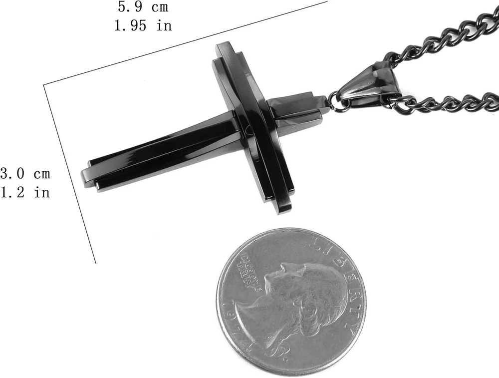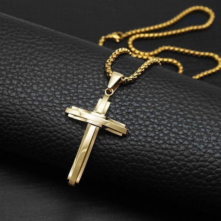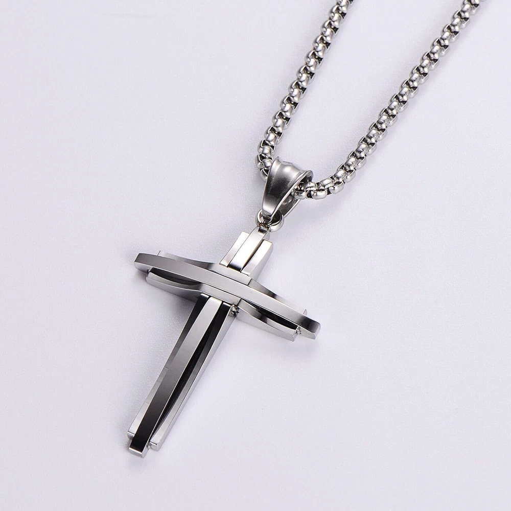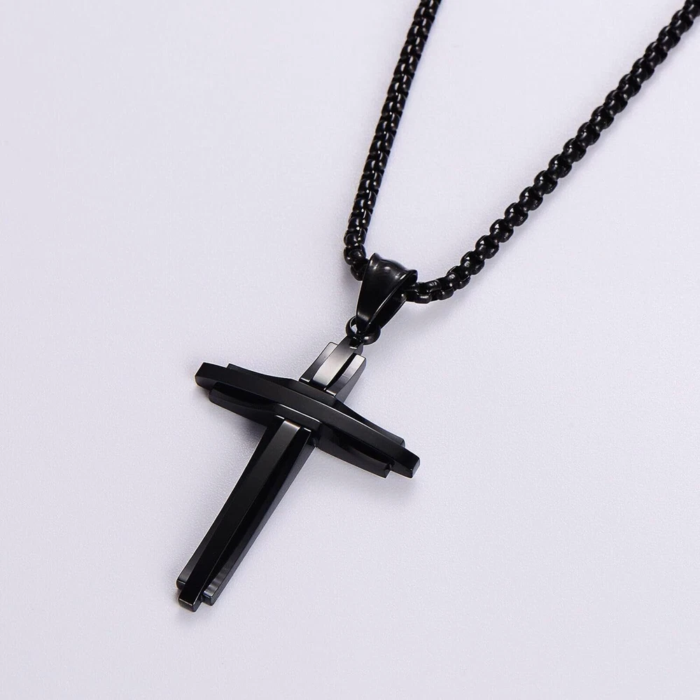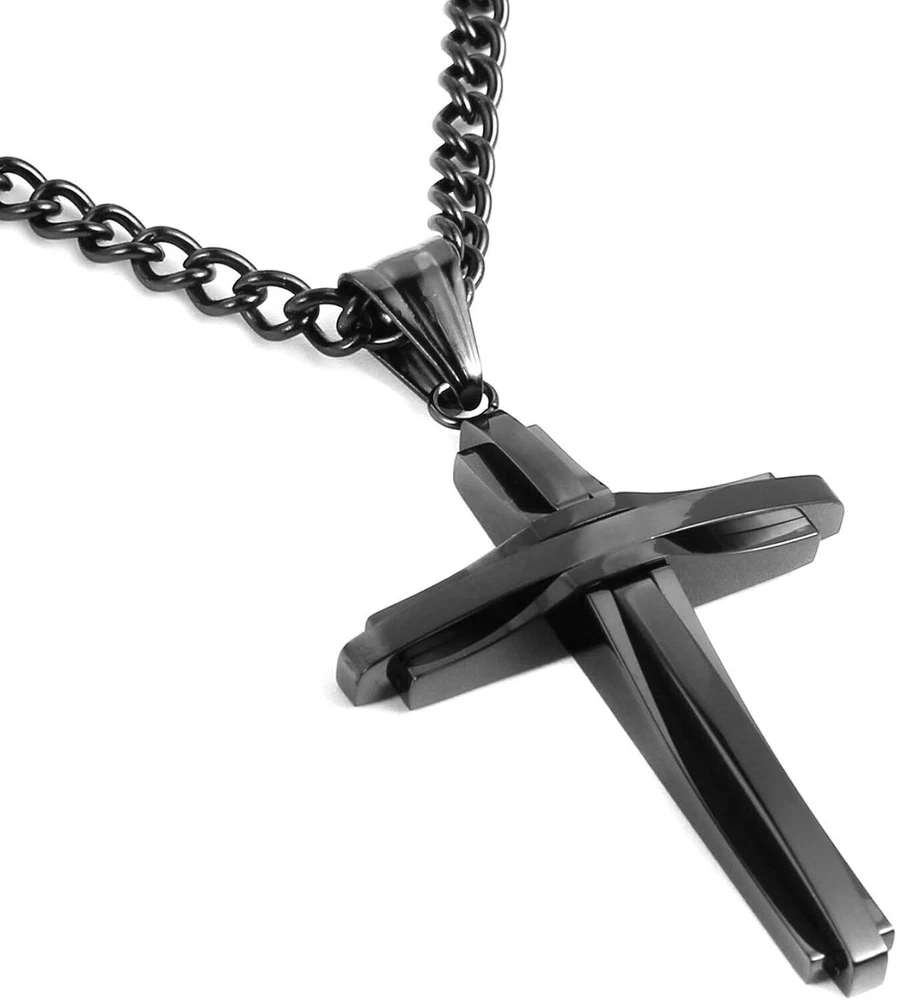 Men's Stainless Steel Cross Pendant Necklace in Silver, Gold, Black – 24 Inch