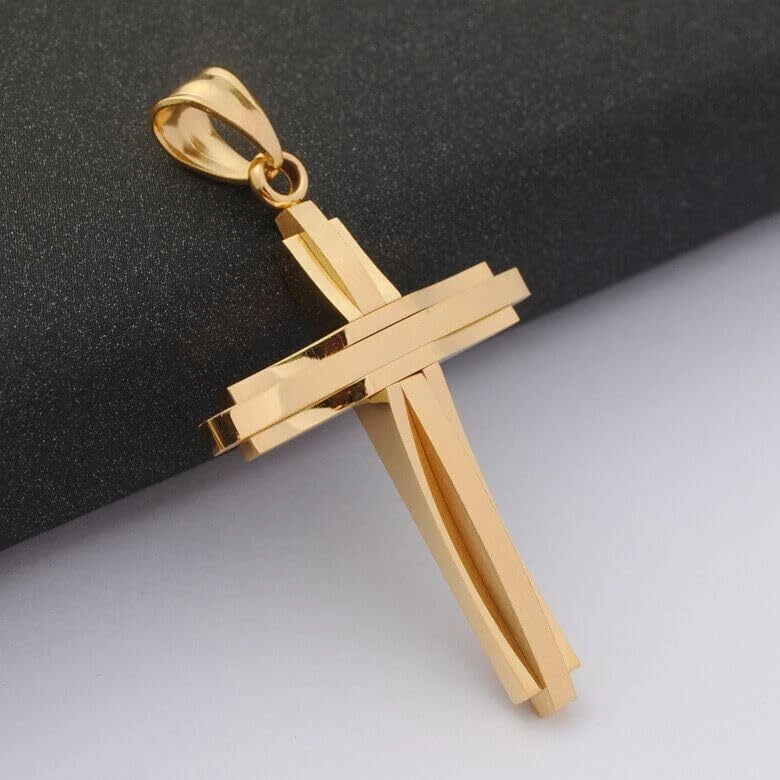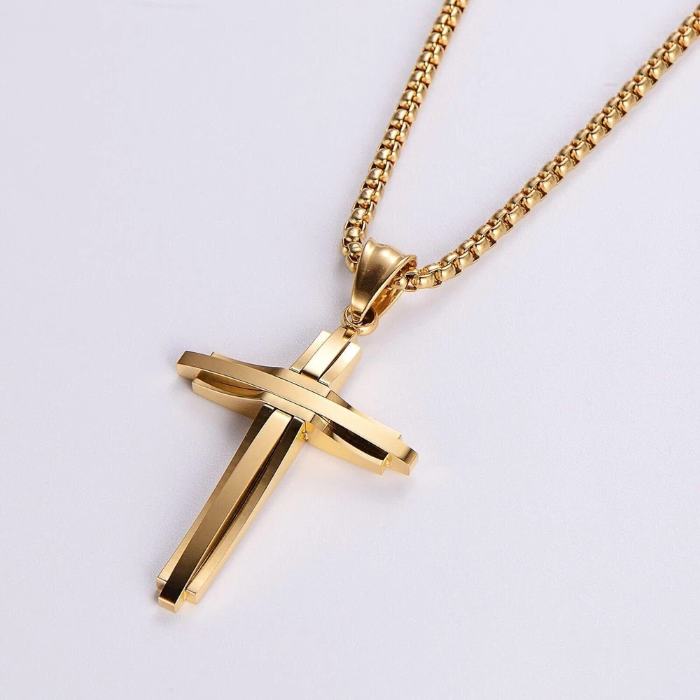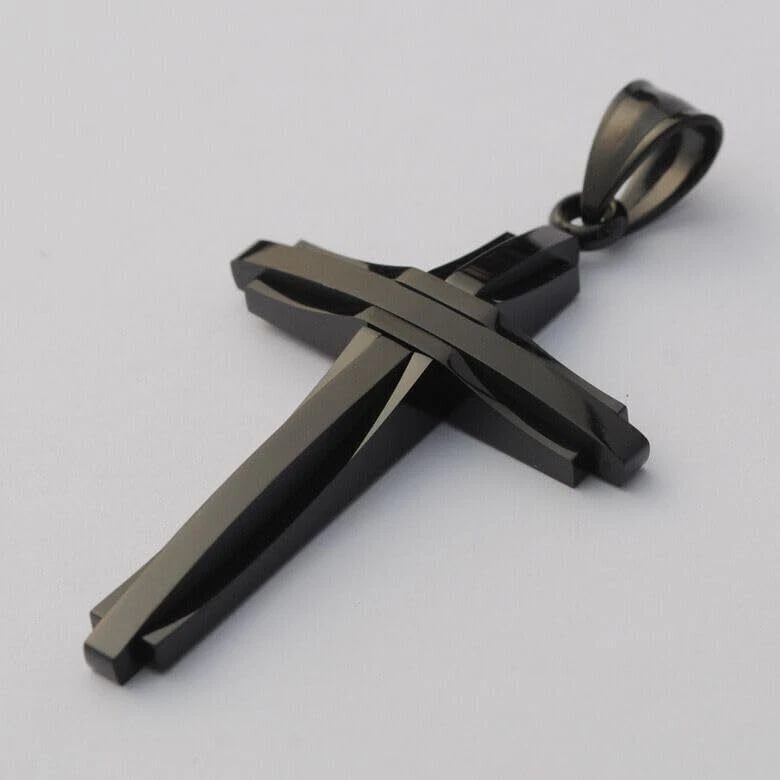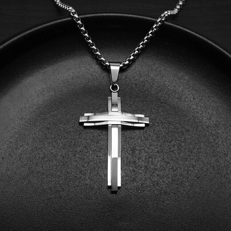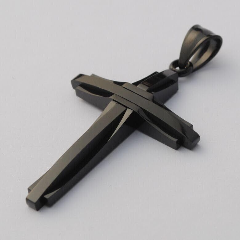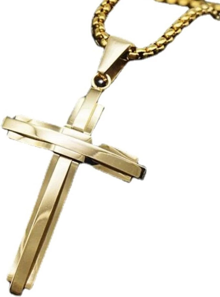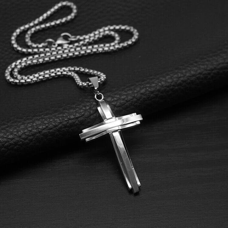 Men's Stainless Steel Cross Pendant Necklace in Silver, Gold, Black – 24 Inch