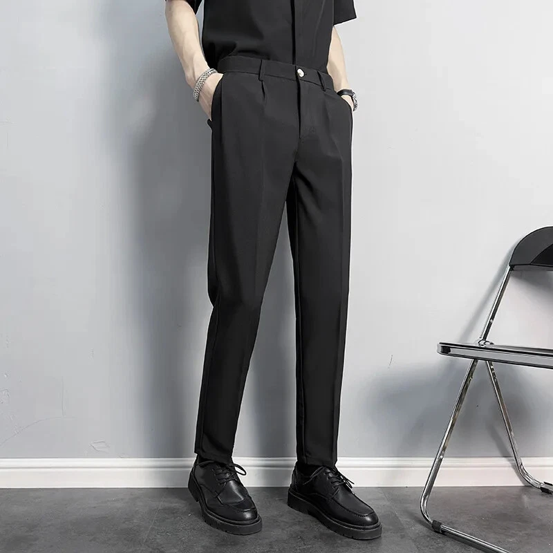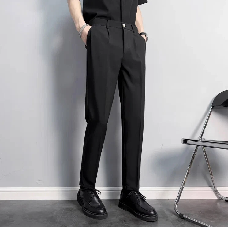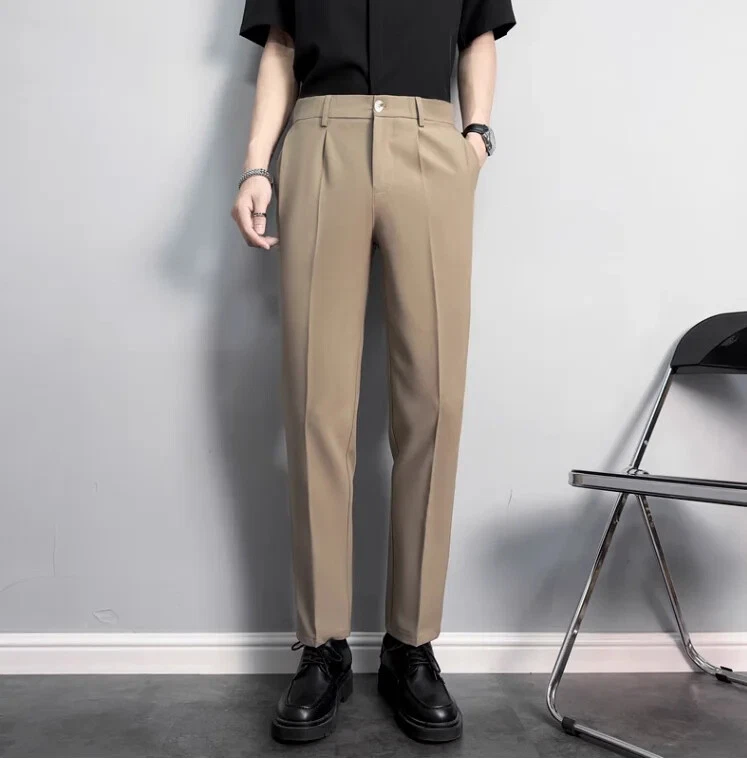 These pants are a game-changer! The fit is perfect—slim but comfortable, great for both office and casual wear. The anti-wrinkle fabric keeps them looking sharp all day, and the quality feels premium. Love the straight-leg design—very stylish yet professional. Highly recommend for any guy needing versatile, polished trousers.