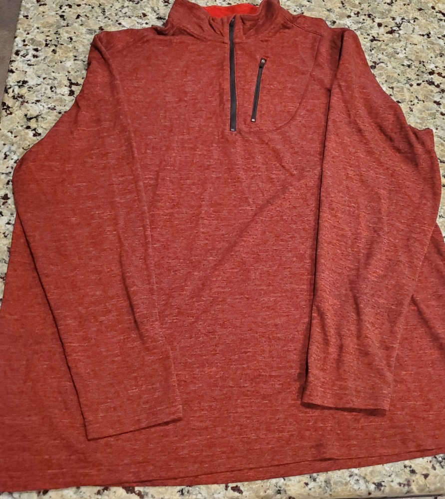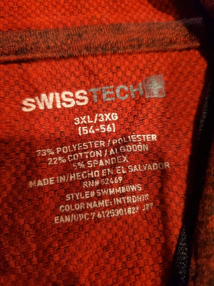 Men's Swiss Tech 1/4 Zip Pullover Athletic Shirt – Burgundy/Red – Size 3XL Item Specifics: Brand: Swiss Tech Size Type: Regular Size: 3XL Color: Burgundy (or Marled Red) Style: Pullover Type: Activewear Top Department: Men Sleeve Length: Long Sleeve Closure: 1/4 Zip Material: 73% Polyester, 22% Cotton & 5% Spandex Neckline: Stand Collar Features: Breathable, Logo, Zippered Breast Pocket, Stretch. Activity: Running, Training, Casual, Walking, etc. Condition: Pre-owned excellent condition. Description: This listing is for a men's Swiss Tech 1/4 zip pullover athletic top in a rich burgundy (or marled red) color, size 3XL. This versatile long-sleeve shirt is perfect for active wear or casual comfort. It features a convenient 1/4 zip closure with a stand collar and is made from a comfortable, breathable polyester blend fabric. Measurements Pit to Pit: 27" Length neck to hem: 31" Excellent pre-owned condition with no rips, tears or stains.