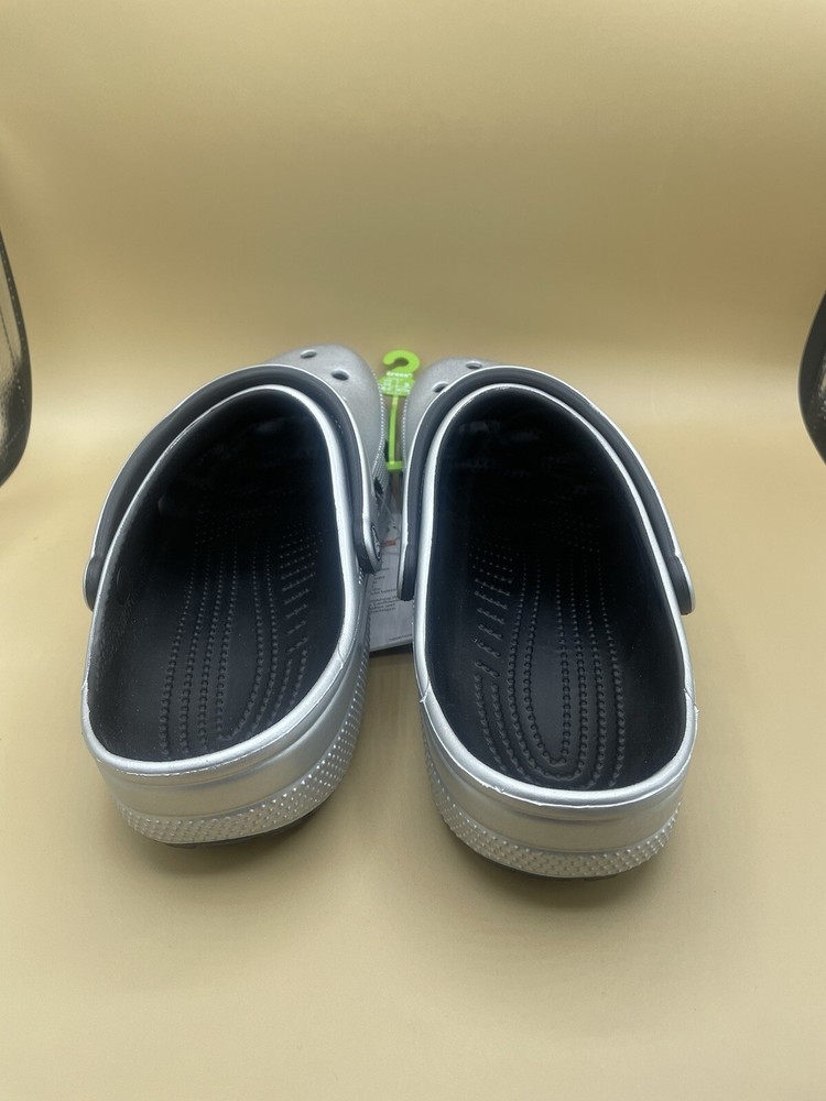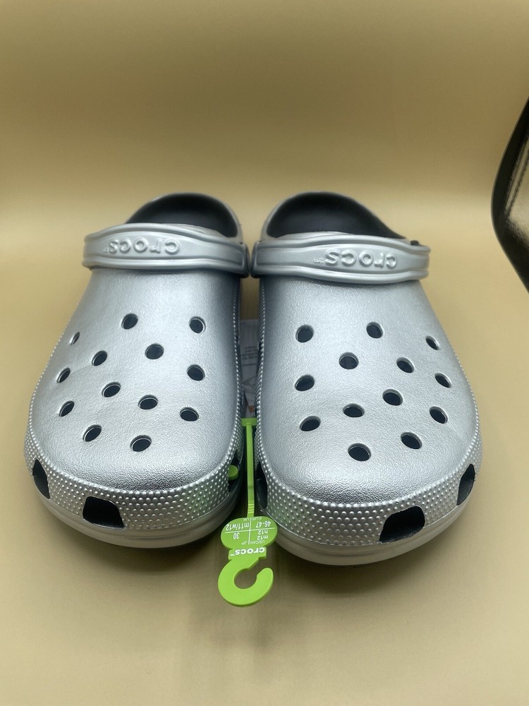 NEW NO SHOEBOX WITH TAG ATTACHED Crocs Classic metallic All Terrain water Clog Men’s 12 US Silver metallic WATER RESISTANT COMFORTABLE AND STYLISH EVERYDAY FUN FOOTWEAR