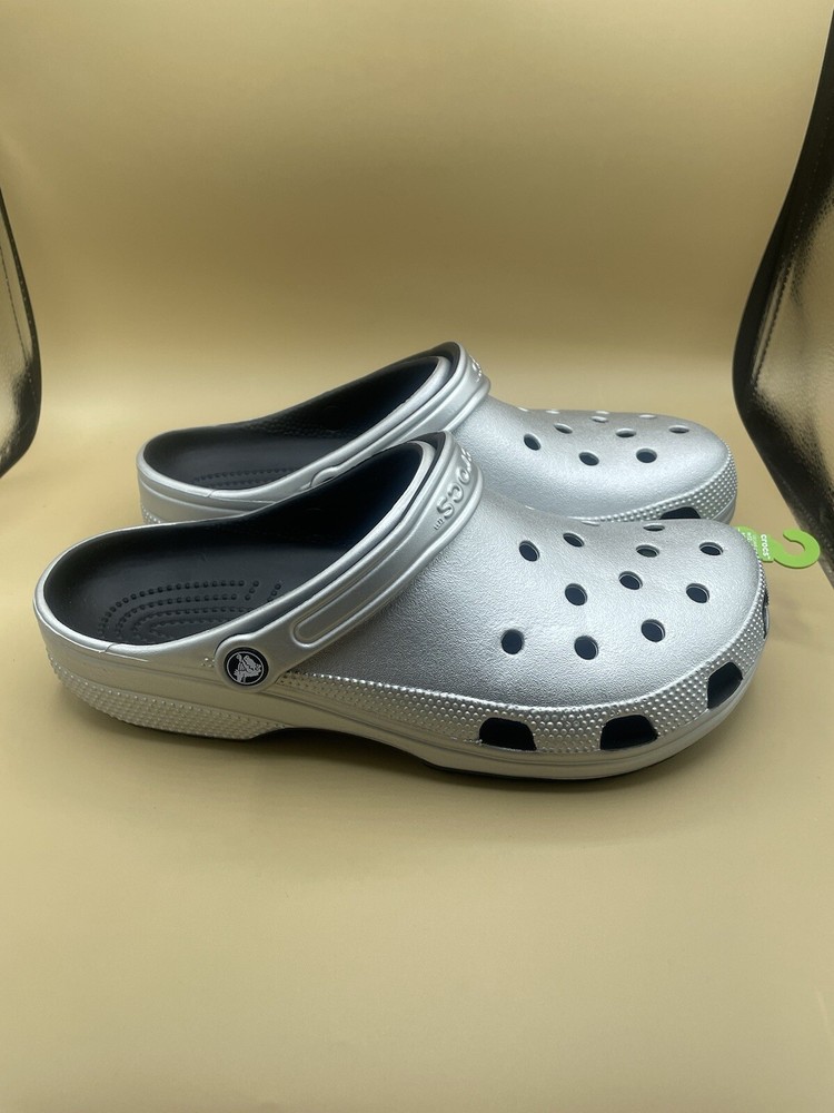 Men’s Sz 12 Crocs Classic Metallic Clog Silver Slip-On Water Shoes New No Box