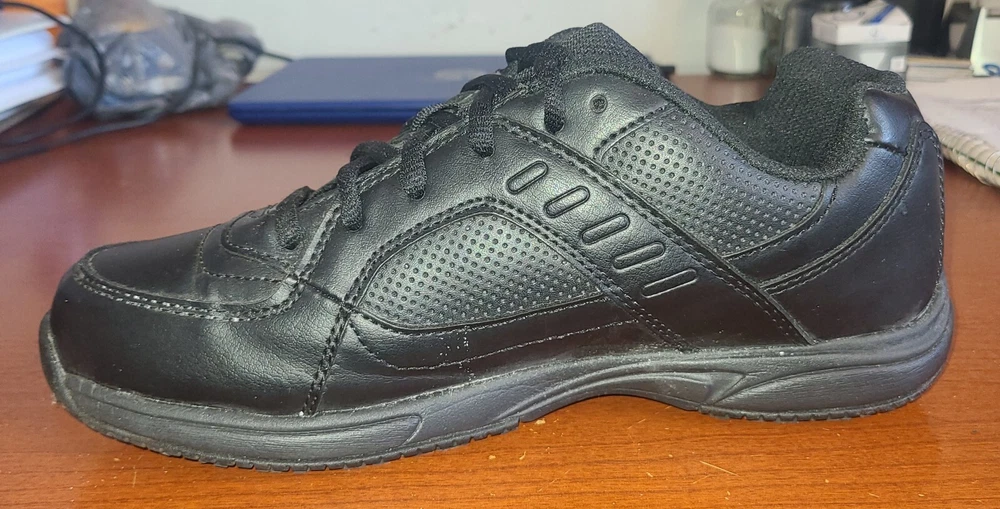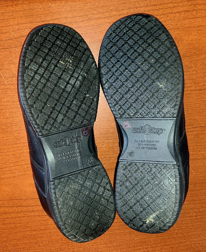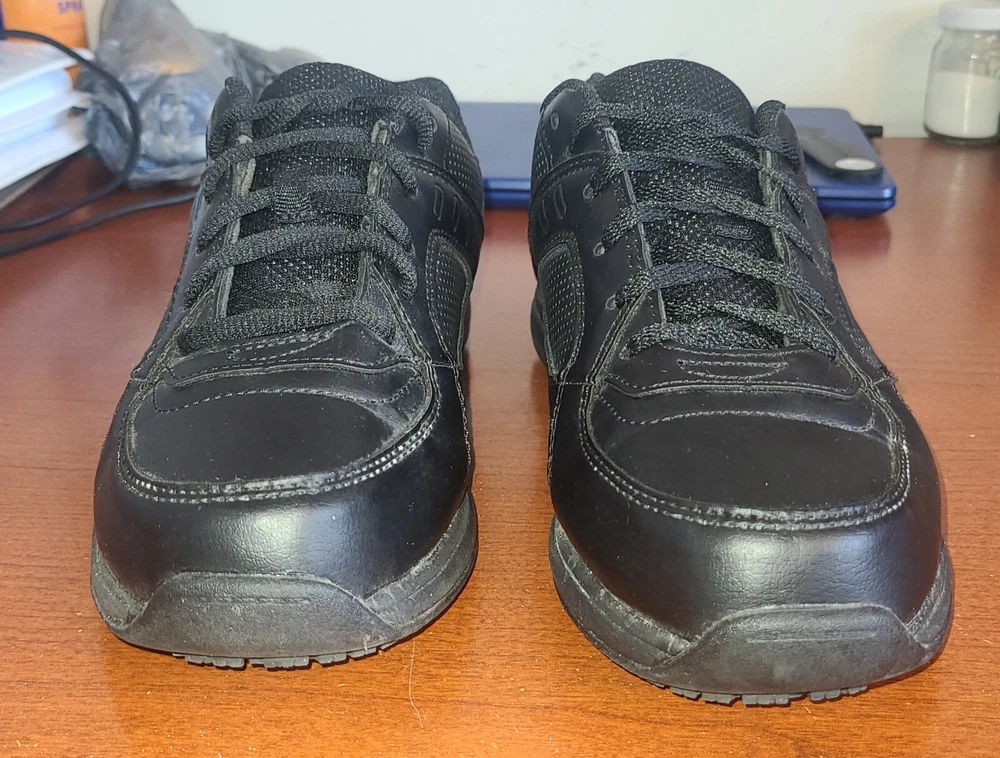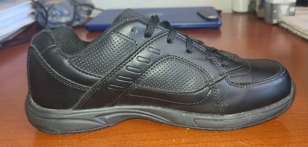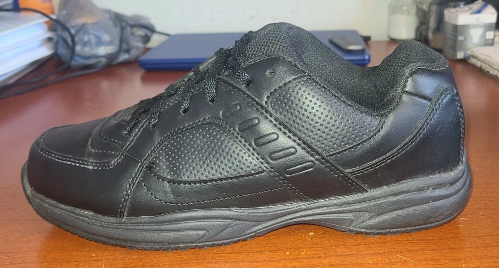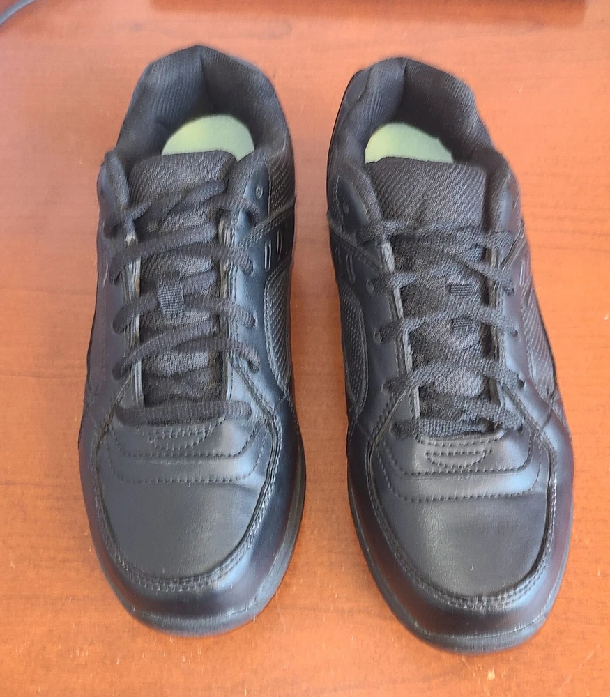 Men's Sz 7.5 Safe T Step Comfort Work Shoes Black Slip Resistant Wide Lace-Up.