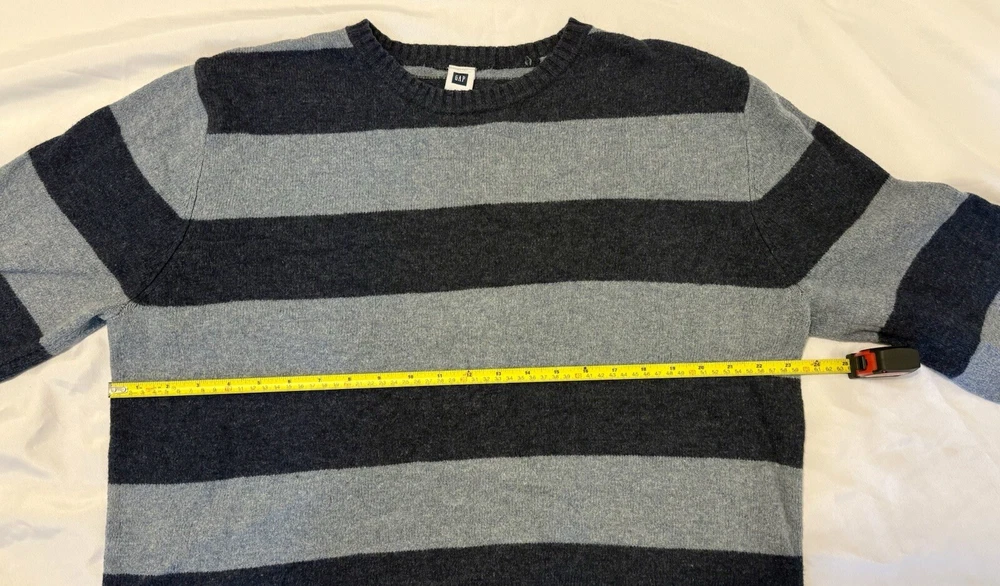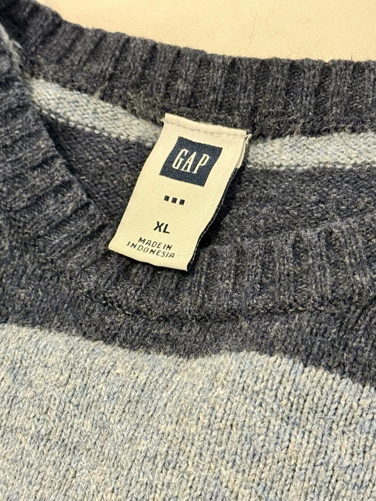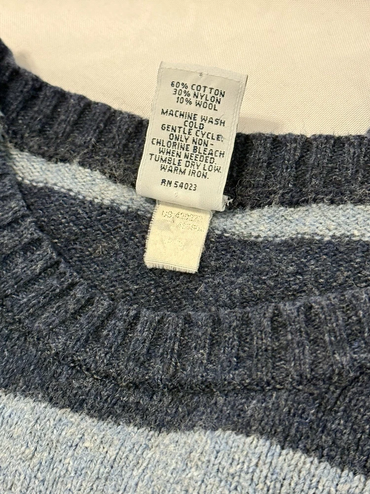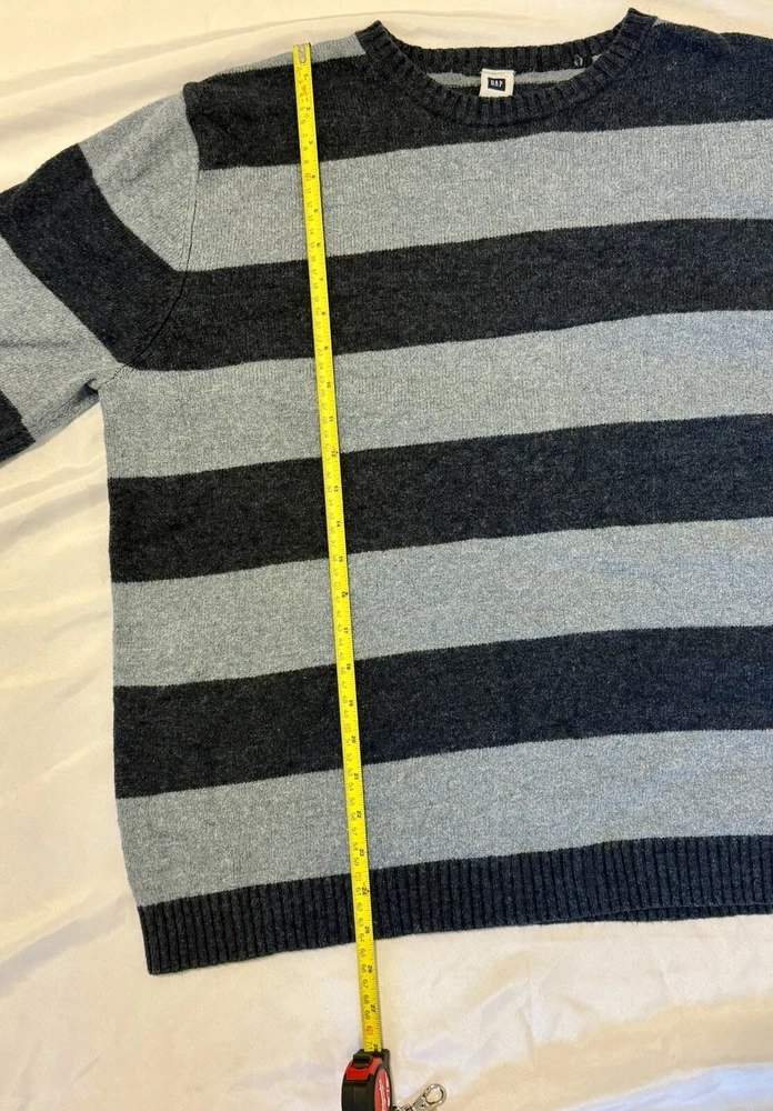 Color: Blue Size Type: Regular Knit Style: Tight-Knit Style: Pullover Season: Fall, Winter Sleeve Length: Long Sleeve Brand: Gap Neckline: Crew Neck Department: Men Pattern: Striped Size: XL Fabric Type: Knit Type: Sweater Material: Cotton, Nylon, Wool