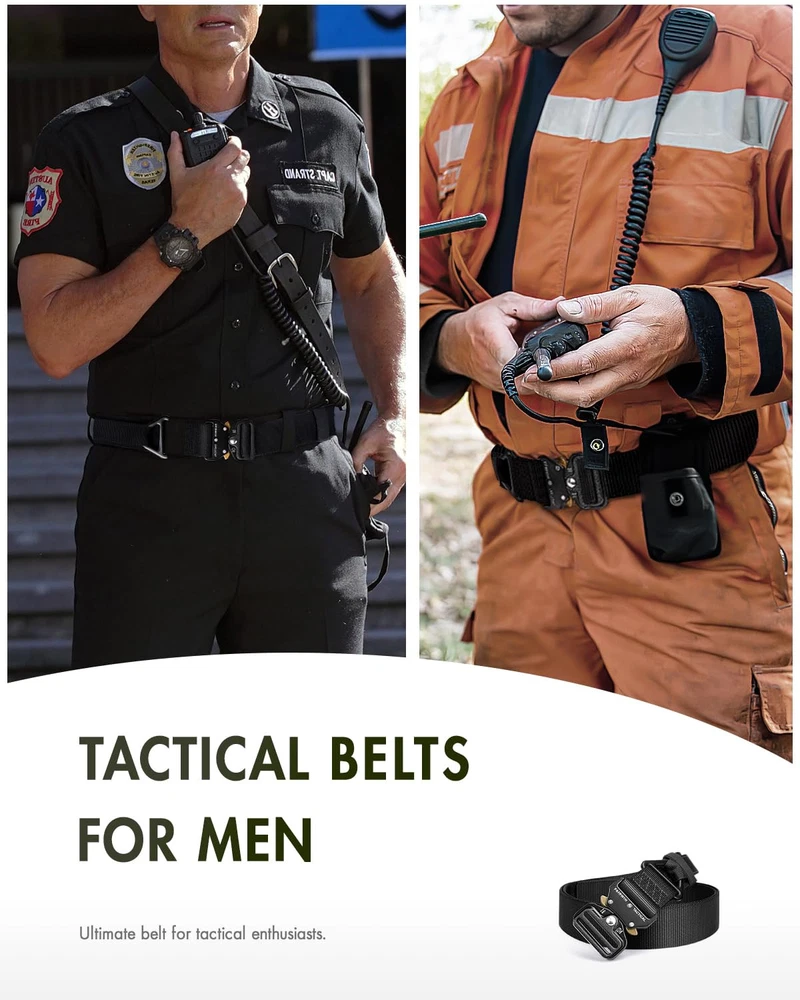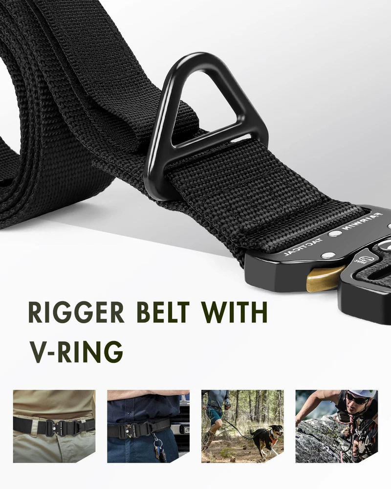 【 1.5 In Tactical Belt Size 】Length: 45”(115cm), Width:1.5”(3.8cm), fits waist 30"~ 36". Buckle Size: 2.4"(6cm) in width and 5/16"(8mm) in thickness. But if you need 1.7" width rigger belt, please search B07GPHSKQF. 【 Men Work Belt 】This is work belts for men, it suits for Military, SWAT, Fire fighters, Worker, Rigger, Police, Law enforcement, Conceal carry, Armour military, tactical ninja, covert tactical, military essentials. Anyone who need to take any activity will be in harmony with this combat belt. The mens belt can also be used as daily casual belt, like pants, jeans, golf. More men’s belt usage scenarios are waiting for you to unlock. 【 Men's Utility Belt with Quick Release Buckle 】Just single hand can squeeze and release the belt buckle to easily unfasten the belt.Intuitive and smooth quick release functionality when you push the golden tabs down at the same time. If just one tab is engaged, the connection will still hold and fully re-lock on its own. 【 Tactical Web Belt 】The tactical nylon belt made of high strength, fast-dry eco-friendly 1000D nylon material. It’s breathable and very comfortable for daily use. 【 Belts for Men Riggers Belt 】This military belt attached a heavy duty military buckle made by aluminium alloy and a convenient V-ring for attachment of gears and accessories. Max bearing weight 1100lb/500kg. Widely used for military training or outdoor camping expedition. 【 Mens Tactical Belt Shopping Warranty 】Want Tactical Belts for Men and Women? Choosing belt means you won't be disappointed, there will be surprises! If you have any problem of these nylon web belts, please feel free to contact us. We promise to provide you satisfaction guarantee.