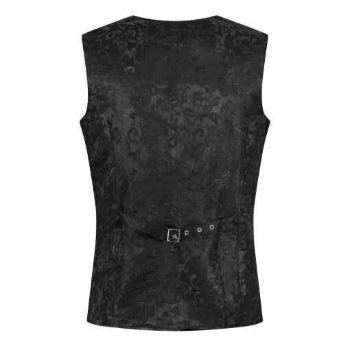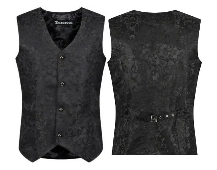 The Darkrock Men's Tailored Formal Waistcoat is a sleek and stylish piece perfect for a Gothic Steampunk Victorian look. Made from black brocade fabric with a polyester lining, this short jacket features a button closure and a regular fit. Ideal for formal occasions, this vest can be worn for business meetings, parties, or casual outings. The vintage design, accentuated with button details, adds a touch of artistry and edginess to any ensemble. Perfect for all seasons, this lightweight waistcoat is a versatile and eye-catching addition to any man's wardrobe. Ship from USA.