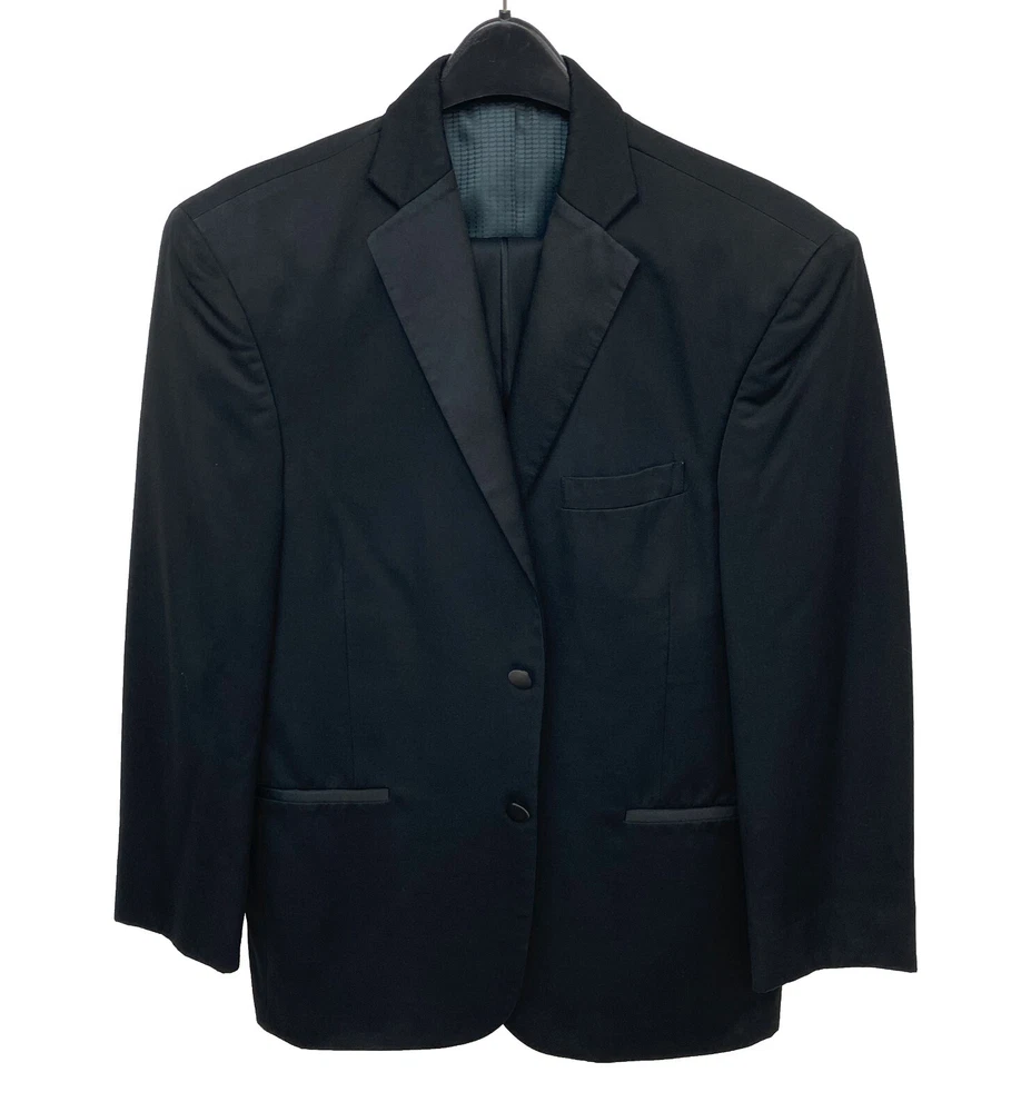 Men's Tallia Black Tuxedo with Pants Two Button Satin Notch Lapels Size 48S 42W