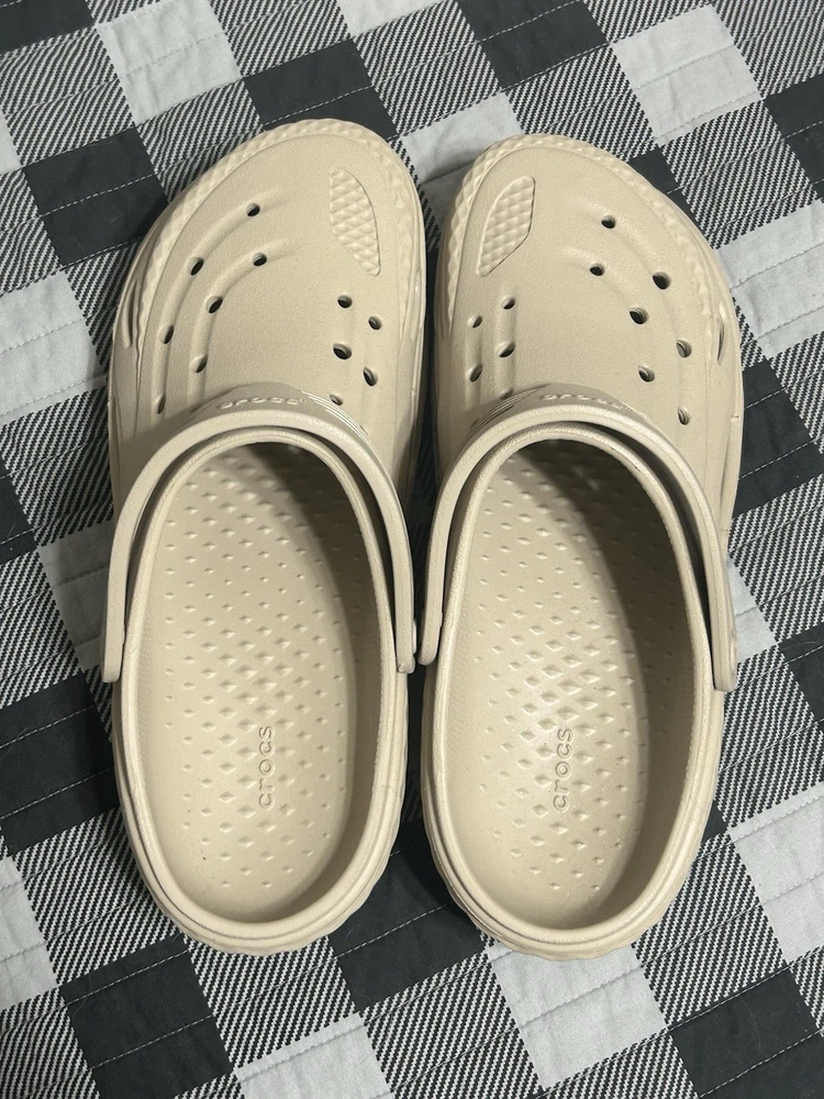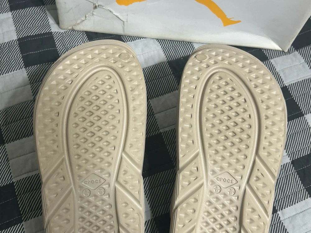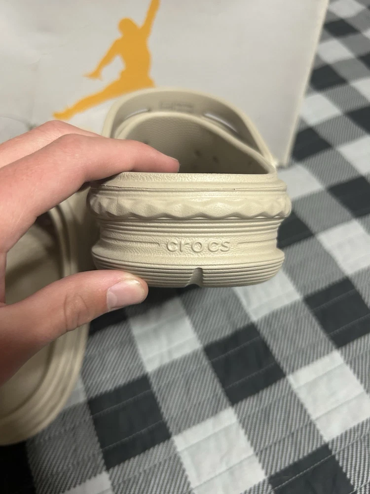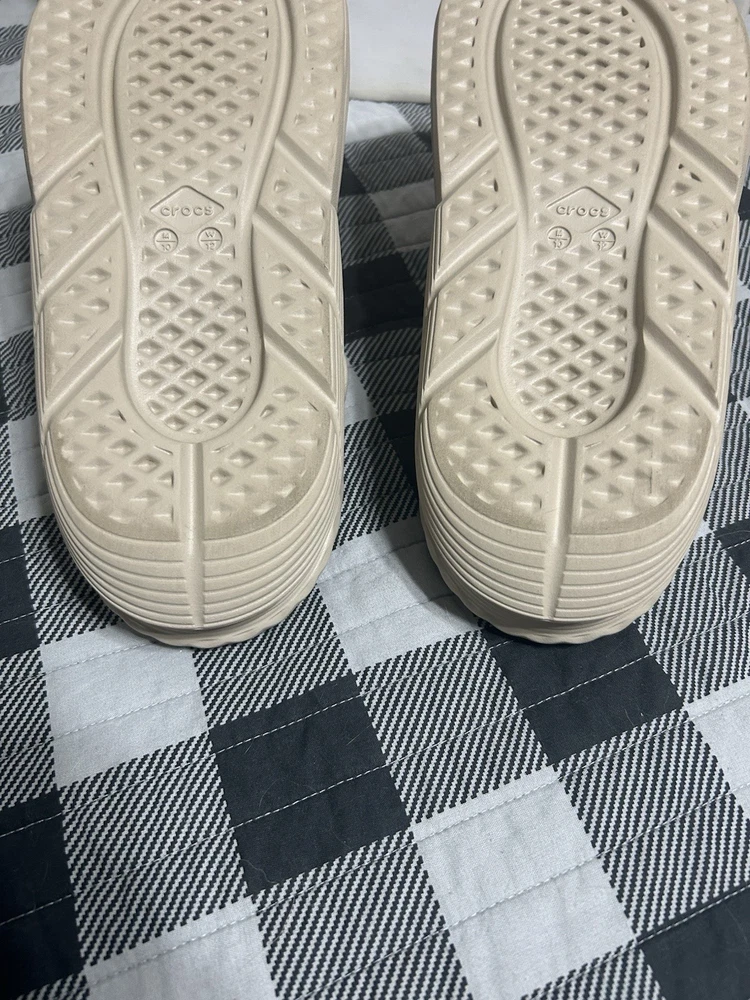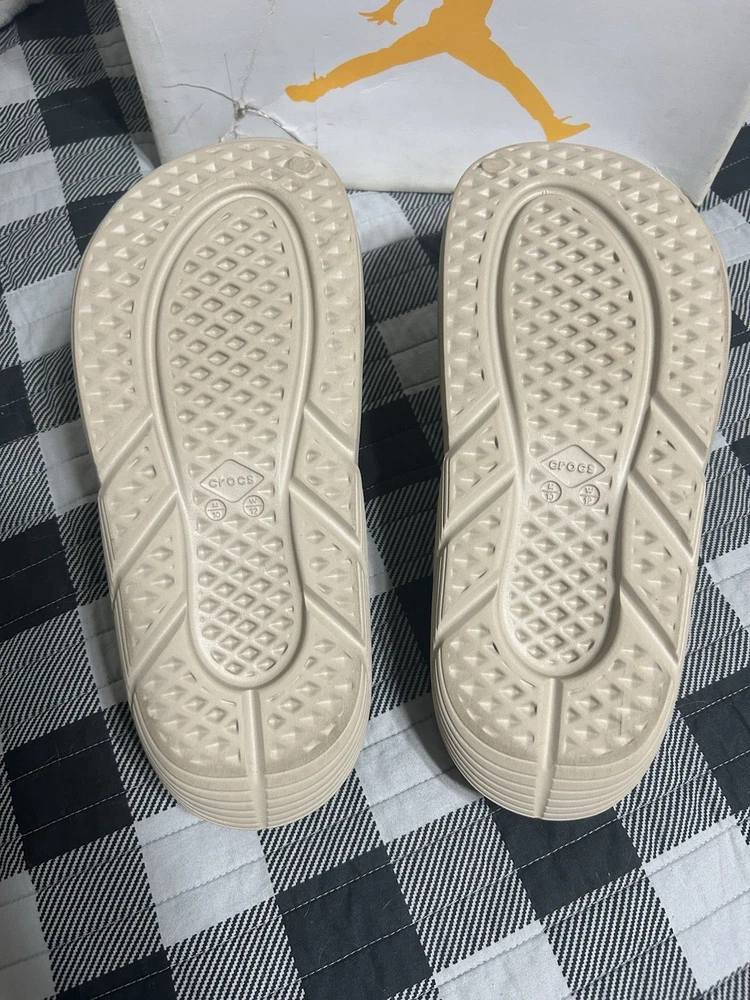 Color: Beige Type: Sandal Brand: Crocs Outsole Material: Rubber Style: Slide Upper Material: Rubber Theme: Outdoor Department: Men US Shoe Size: 10