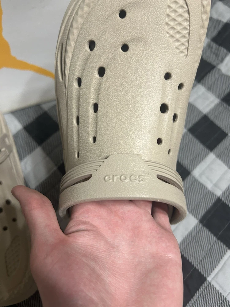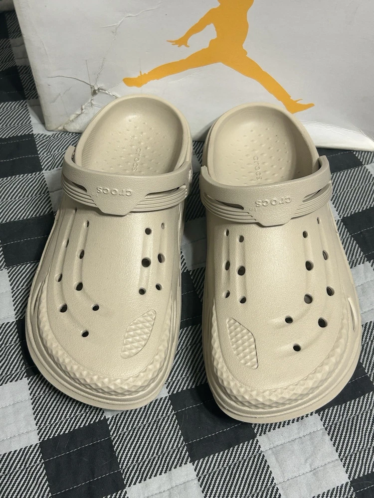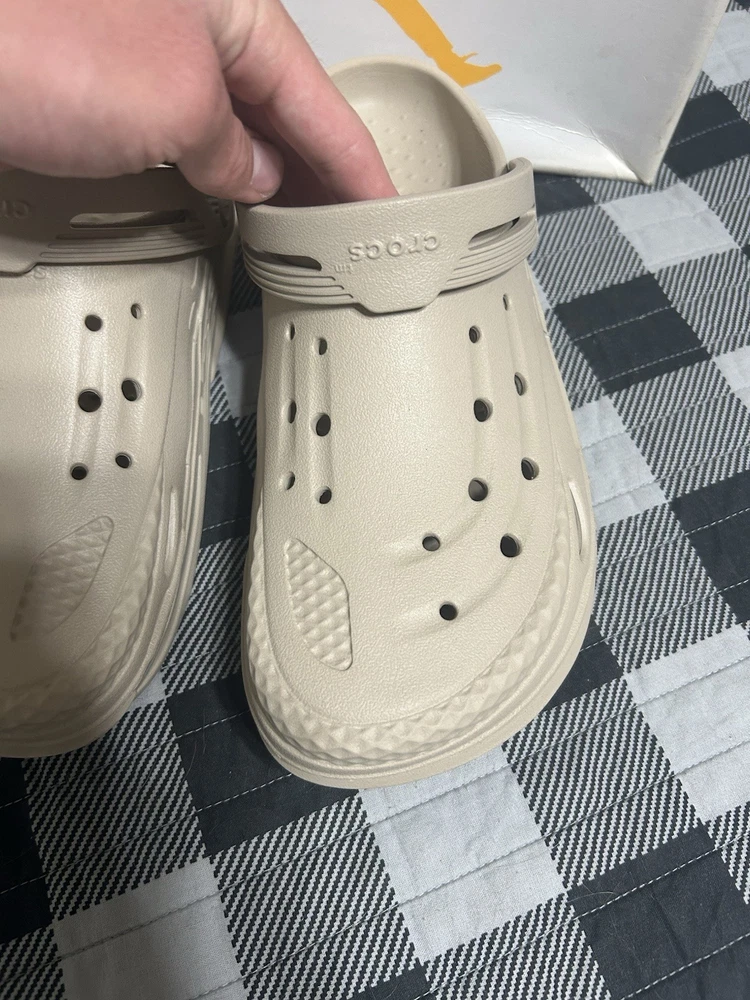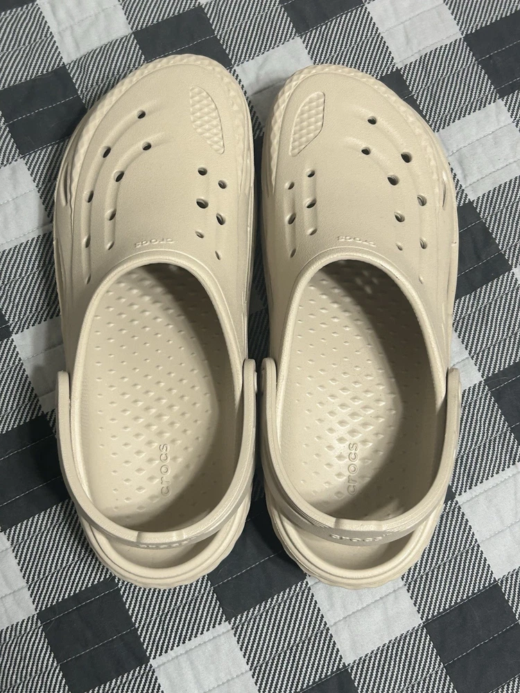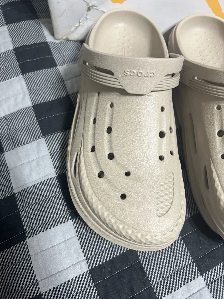 Color: Beige Type: Sandal Brand: Crocs Outsole Material: Rubber Style: Slide Upper Material: Rubber Theme: Outdoor Department: Men US Shoe Size: 10