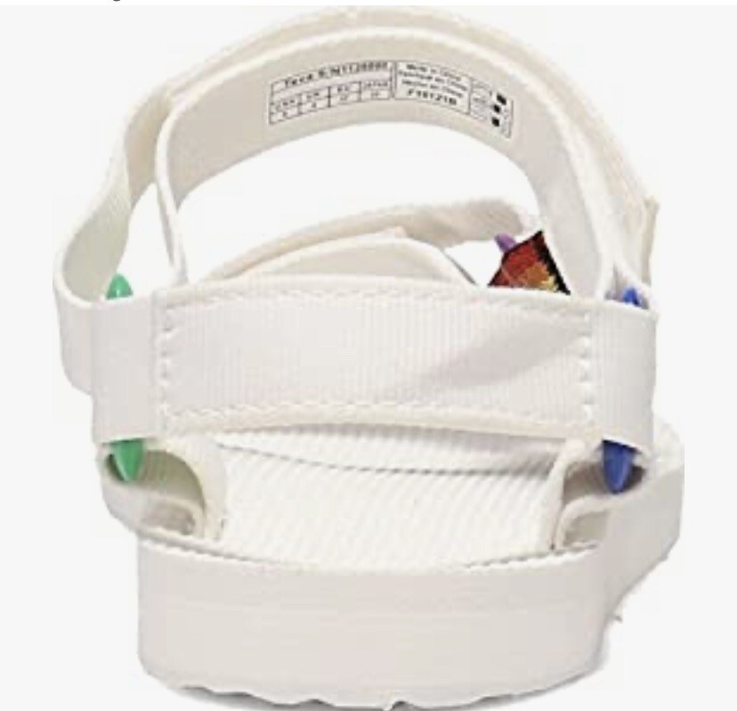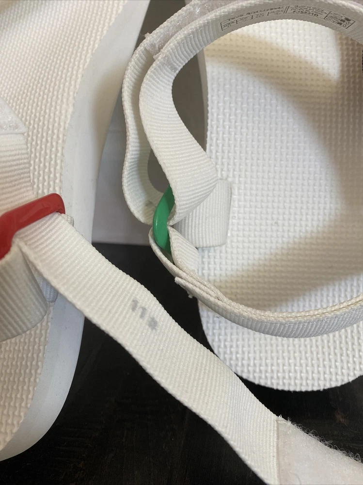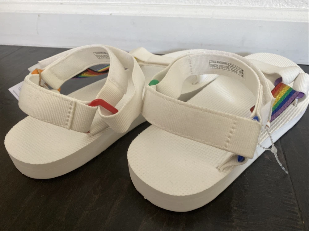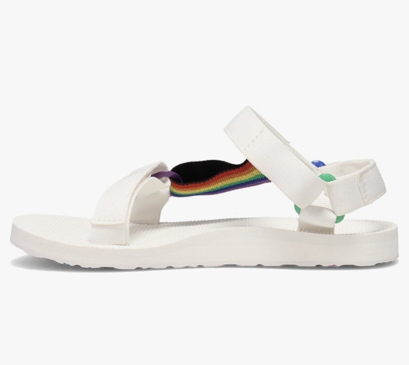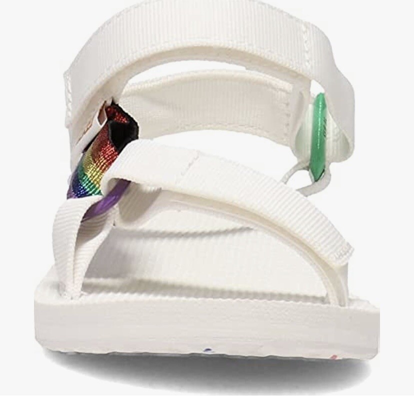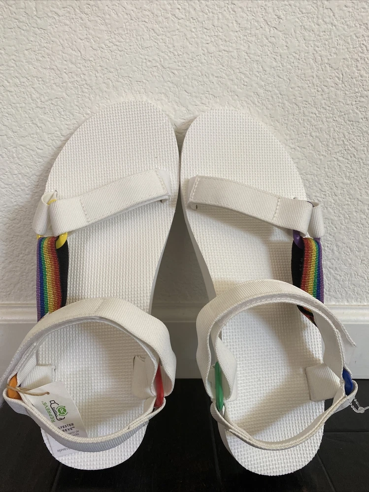 Teva Men’s Original Universal Pride Sandals White Rainbow Sz 11 NEW. Size: Men’s 11 Color: White Features: - Quick-dry webbing made from recycled plastic using traceable verifiable REPREVE polyester yarn by Unifi supports your foot and stands up to abuse; Universal Strapping Stytem Multiple points of adjustability let you dial in the absolute perfect fit. - Easy hook-and-loop closure comes on and off quickly and gets the fit just right. - Molded EVA midsole with heel cupping and arch cookie for added support; Rubber outsole for durability and traction. - Vegan footwear created using synthetic and plant-based materials. - Best for: Festival wear All-day wear. Condition - Brand new with tags! - No box From smoke and pet free environment Check out our store for more fantastic listings.