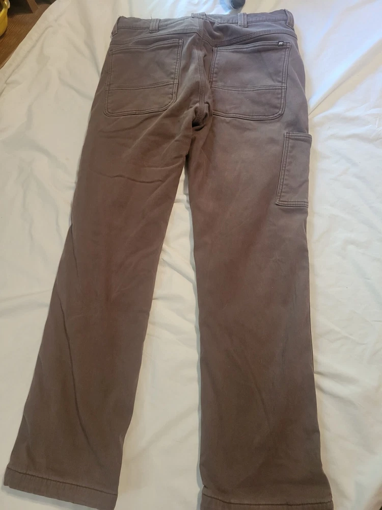 Introducing these stylish and functional men's work pants in a classic brown color. These pants are made of a high-quality cotton blend material with a canvas fabric type, ensuring durability and comfort throughout the day. The pants feature a solid pattern and a straight leg style, with a flat front design and button closure for easy wear. These pants are perfect for workwear occasions and come in a regular fit, with a waist size of 34 inches and an inseam of 34 inches. They also include thermal accents for added warmth and comfort. The pants are part of the work product line and are ideal for any man looking for a reliable and stylish pair of work pants.
