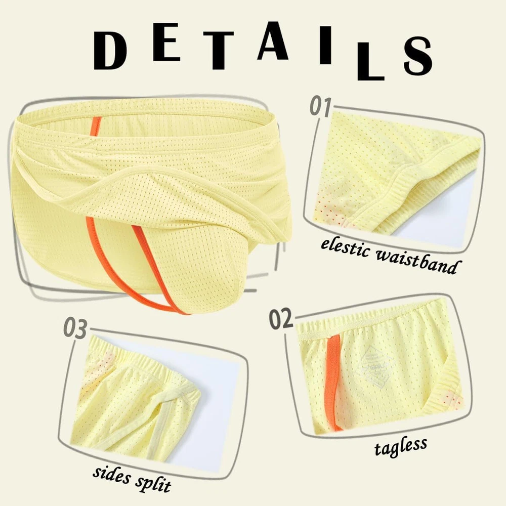 About this item MIXED FABRIC: Made of 80 % nylon and 20 % spandex, this thong is soft, breathable and stretchy BUILT-IN THO NG: Unique design, with front and back fabric covering, your buttocks are hidden, giving a boost of confidence to the shy you. The high split design on the side of the thong will not restrict your leg movement, there is a great stretching space, so the use of the place has increased a lot more Tagless: Tagless design avoids discomfort and makes the underwear fit more comfortable MACHINE WASHABLE: This thong can be machine washed on gentle mode. Hand washing is recommended to prolong the life of the thong underwear SUITABLE FOR MULTIPLE OCCASIONS: This thong underwear is suitable for sports and fitness, recreational play or outdoor activities. It can also be a great choice for couples to increase their love interest
