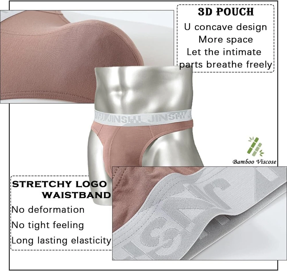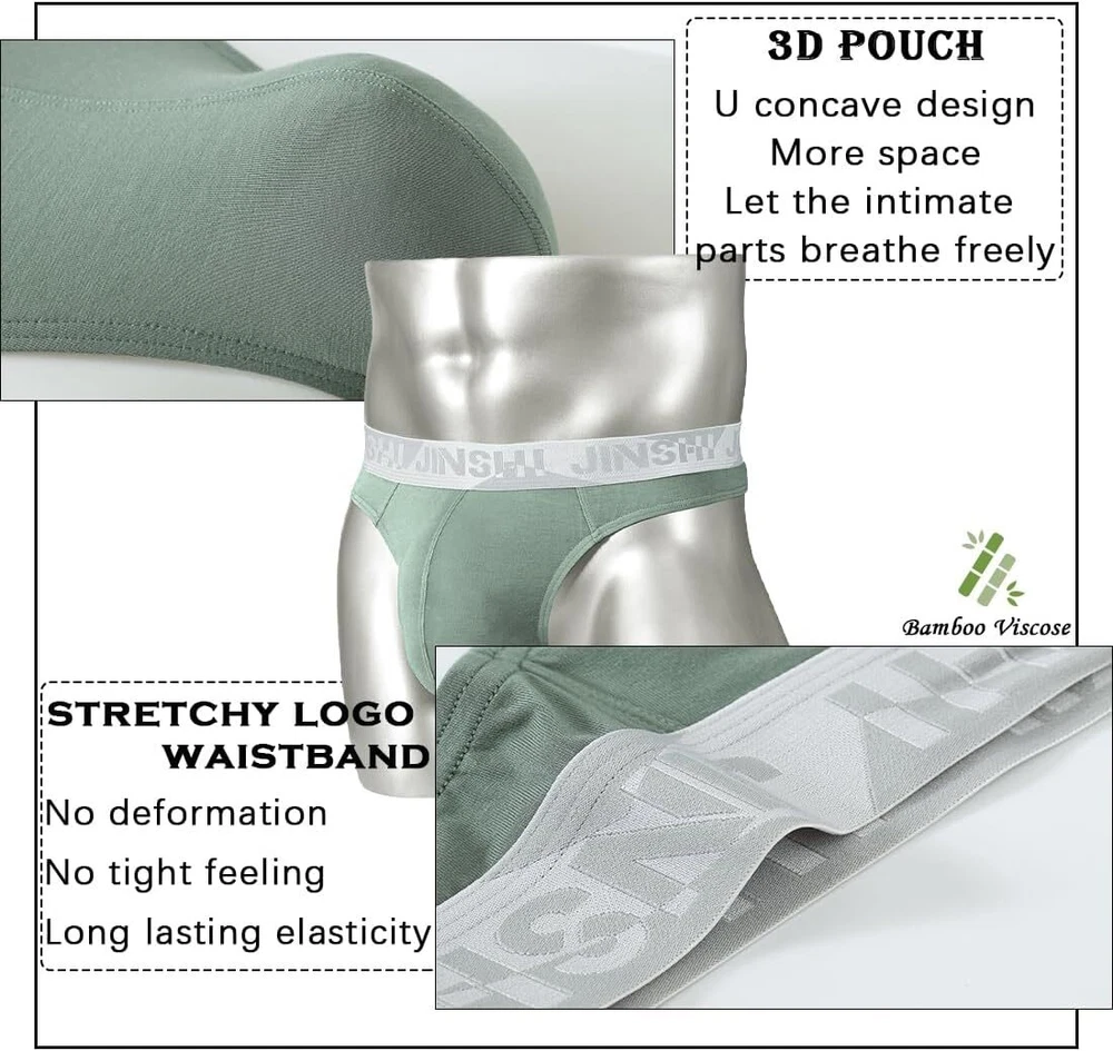 About this item Bulge enhanced pouch design: Our G String thong underwear feature a big ball, reinforced pouch design that provides all-day comfort and support. Smooth and lightweight: Made with a comfortable and light-as-air Bamboo fiber that feels like you're not wearing anything at all. 3.5cm Waistband: The 3.5CM waistband ensures a snug and secure fit that won't slip down, giving you long-lasting comfort you can count on. Tagless Design: No more annoying tags scratching your skin. Enjoy a comfortable fit with the tagless feature. Full size: Our underwear has three sizes M-3XL, perfectly suitable for any body type. M=32"-34", L=36"-38", XL=40"-42", XXL=44"-46".