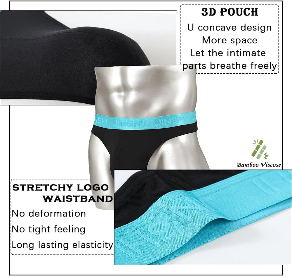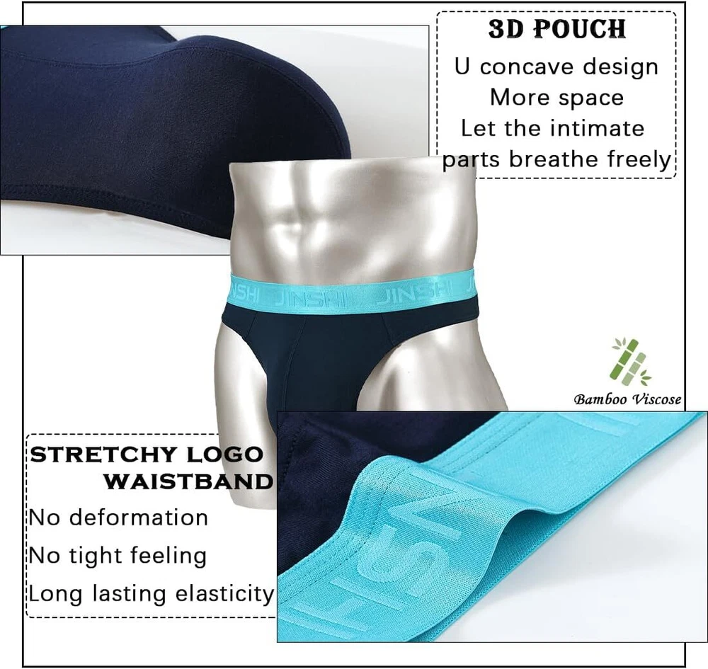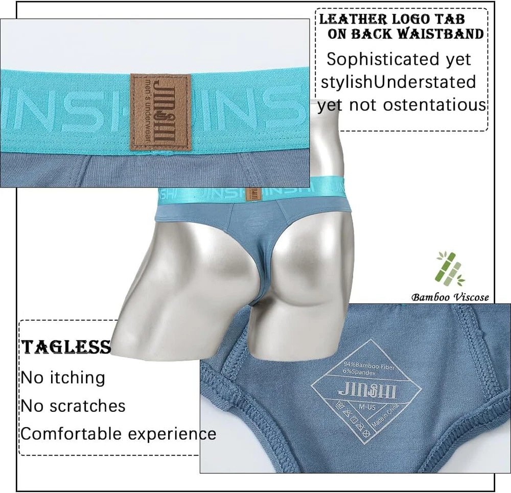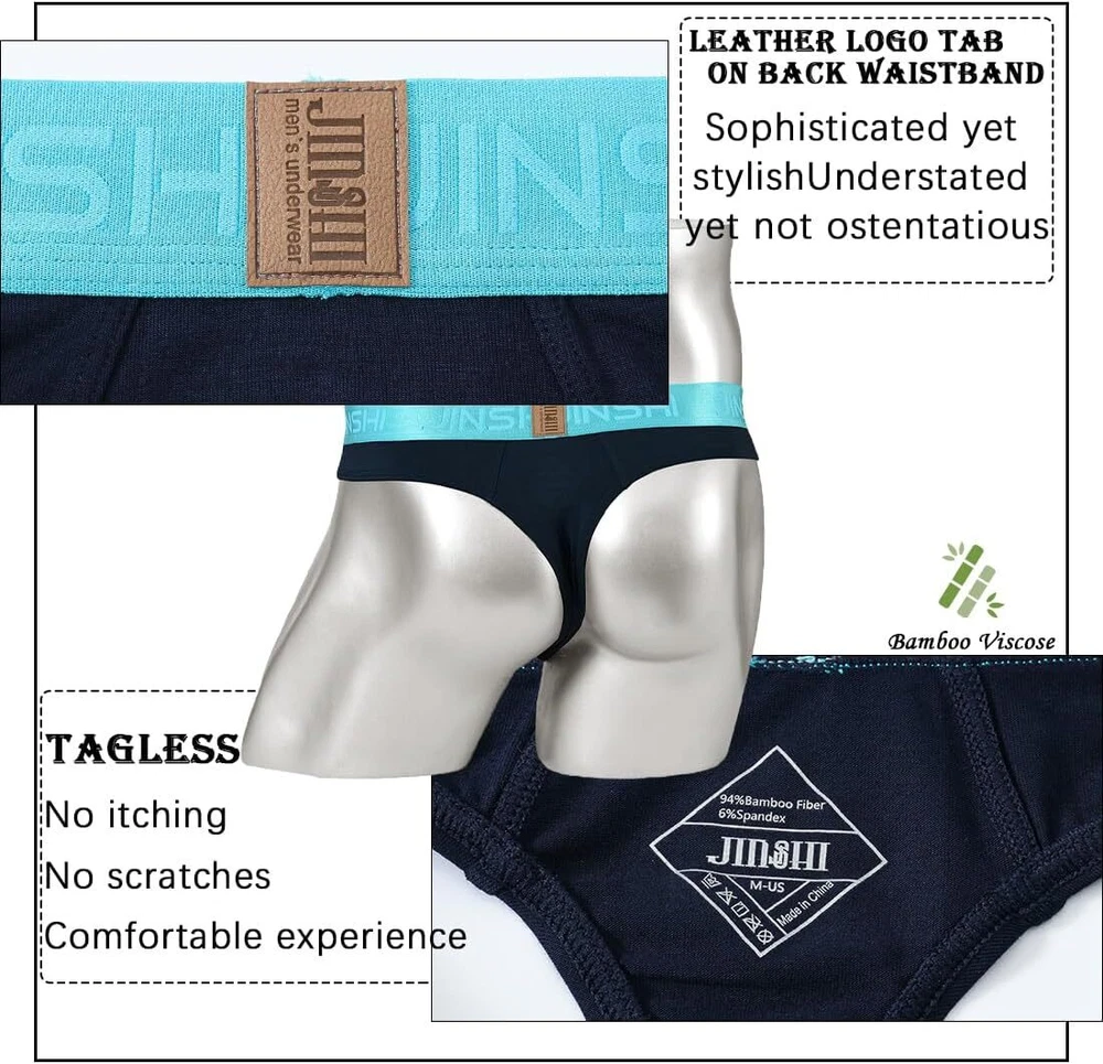 About this item Bulge enhanced pouch design: Our G String thong underwear feature a big ball, reinforced pouch design that provides all-day comfort and support. Smooth and lightweight: Made with a comfortable and light-as-air Bamboo fiber that feels like you're not wearing anything at all. 3.5cm Waistband: The 3.5CM waistband ensures a snug and secure fit that won't slip down, giving you long-lasting comfort you can count on. Tagless Design: No more annoying tags scratching your skin. Enjoy a comfortable fit with the tagless feature. Full size: Our underwear has three sizes M-3XL, perfectly suitable for any body type. M=32"-34", L=36"-38", XL=40"-42", XXL=44"-46".