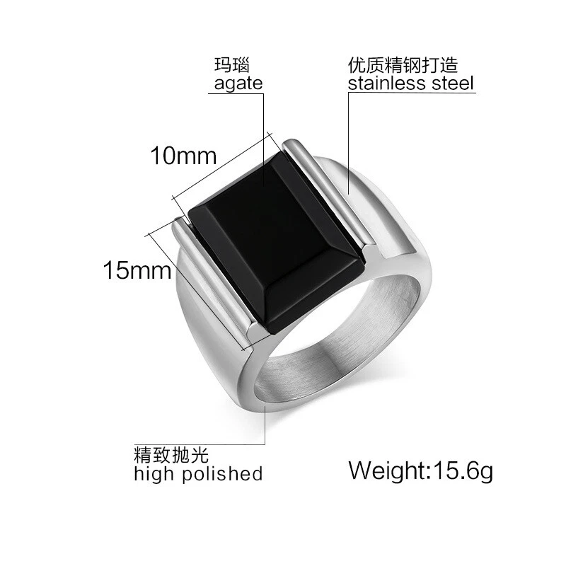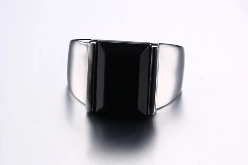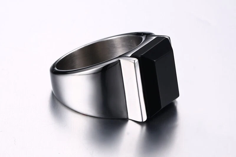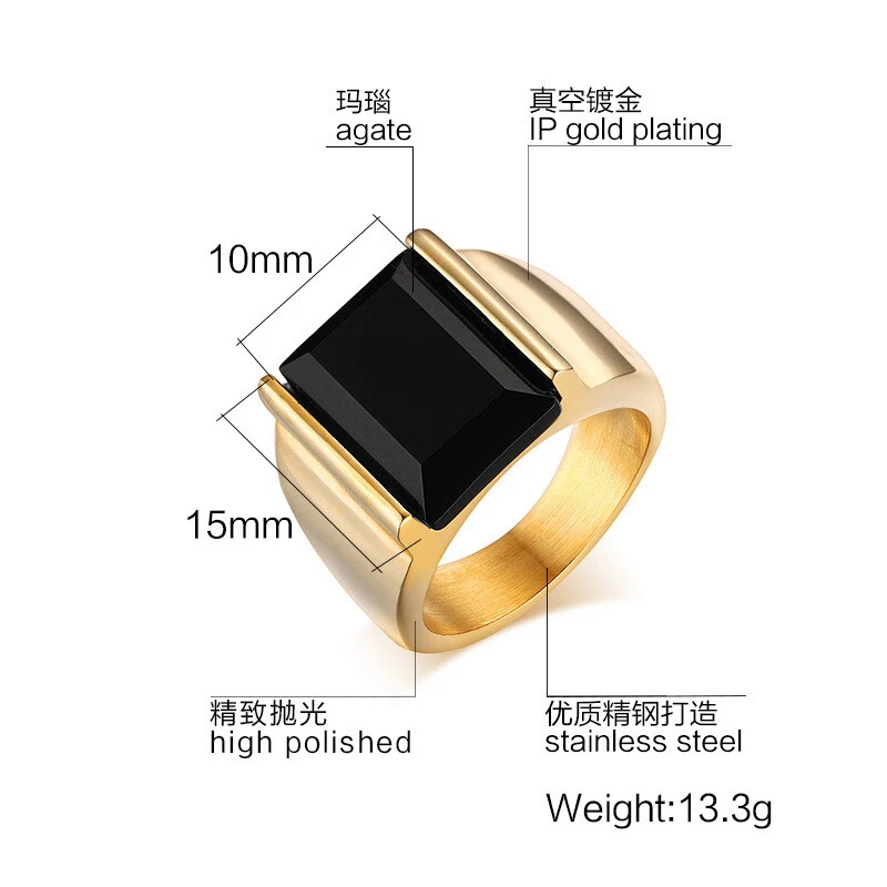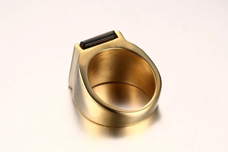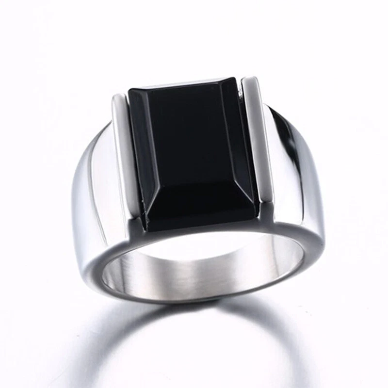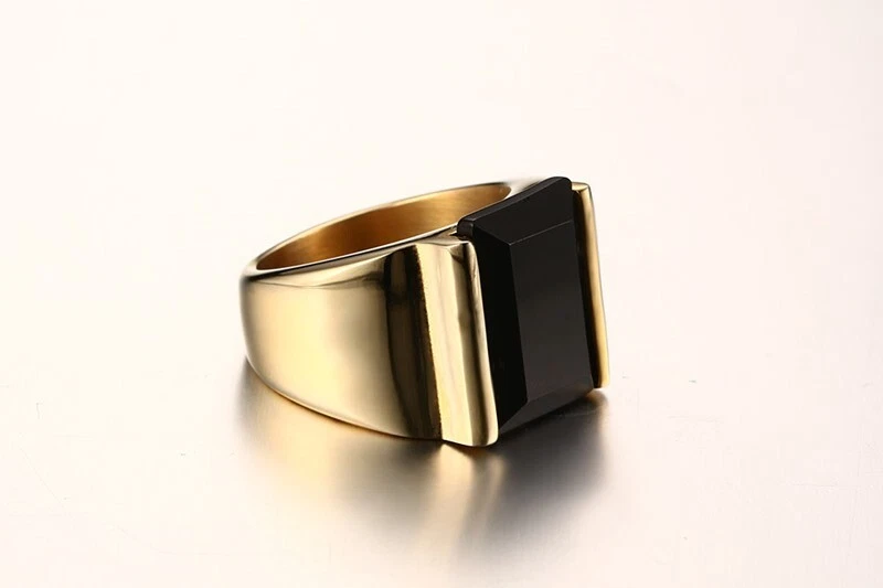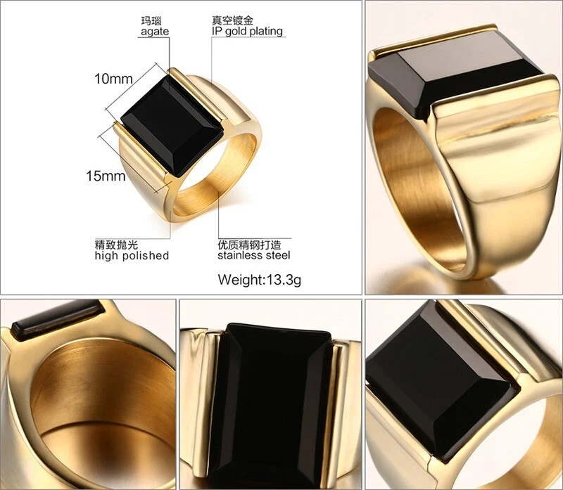 Men's Titanium Steel Black Agate Jewellery Ring Size 7-13 Gold/Steel Color