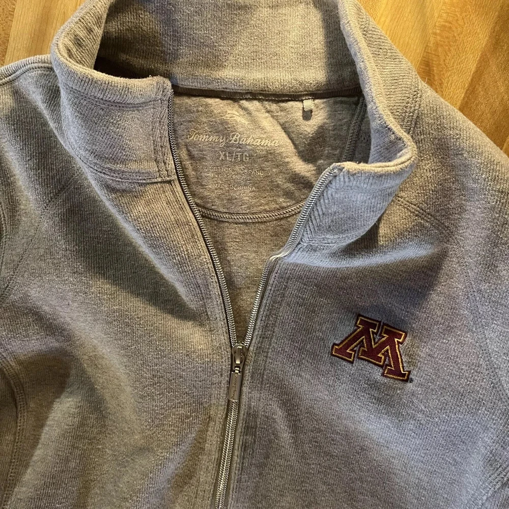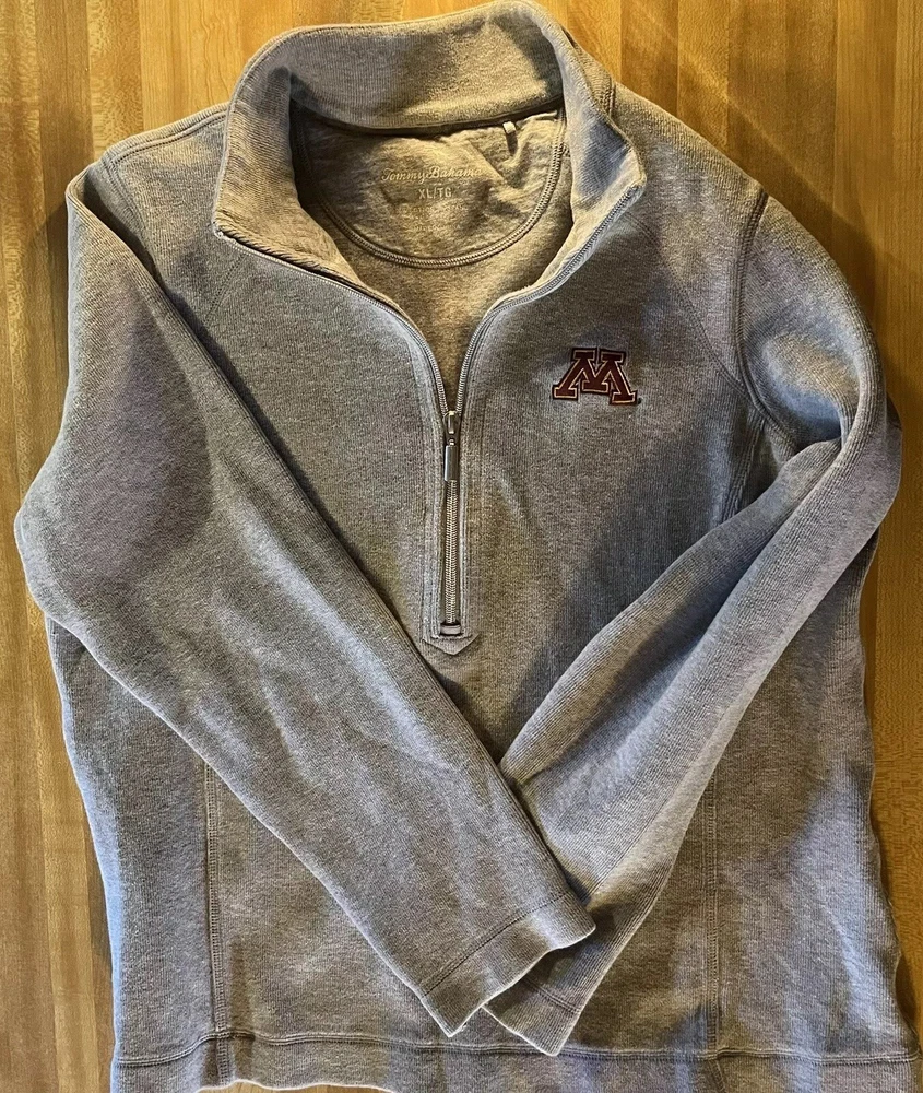 Elevate your game day attire with the Men's Tommy Bahama Gray Minnesota Golden Gophers Sport Tobago Bay Half Zip Sweatshirt in size XLT. The relaxed fit ensures comfort while the half-zip design adds a touch of sporty sophistication. Embrace the team spirit with the vibrant maroon hue and showcase your pride for the Minnesota Golden Gophers. Crafted with quality in mind, this sweatshirt is a testament to the fine blend of style and function that Tommy Bahama is known for. Whether you're cheering from the stands or enjoying a casual day out, this NCAA-licensed apparel is a versatile addition to any fan's wardrobe. Made in the Bahamas, it promises to be a durable and stylish choice for any season.