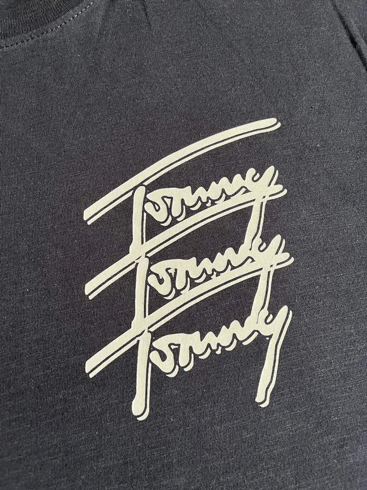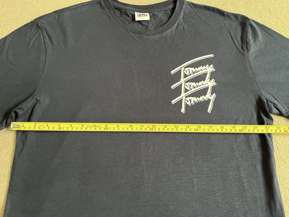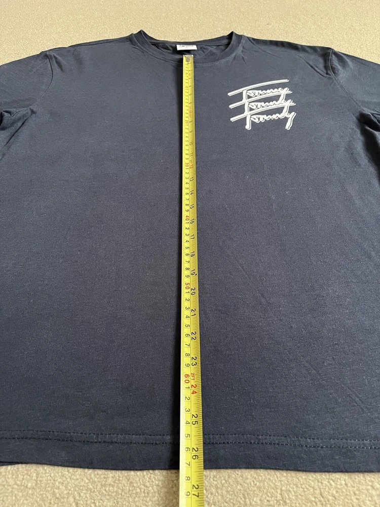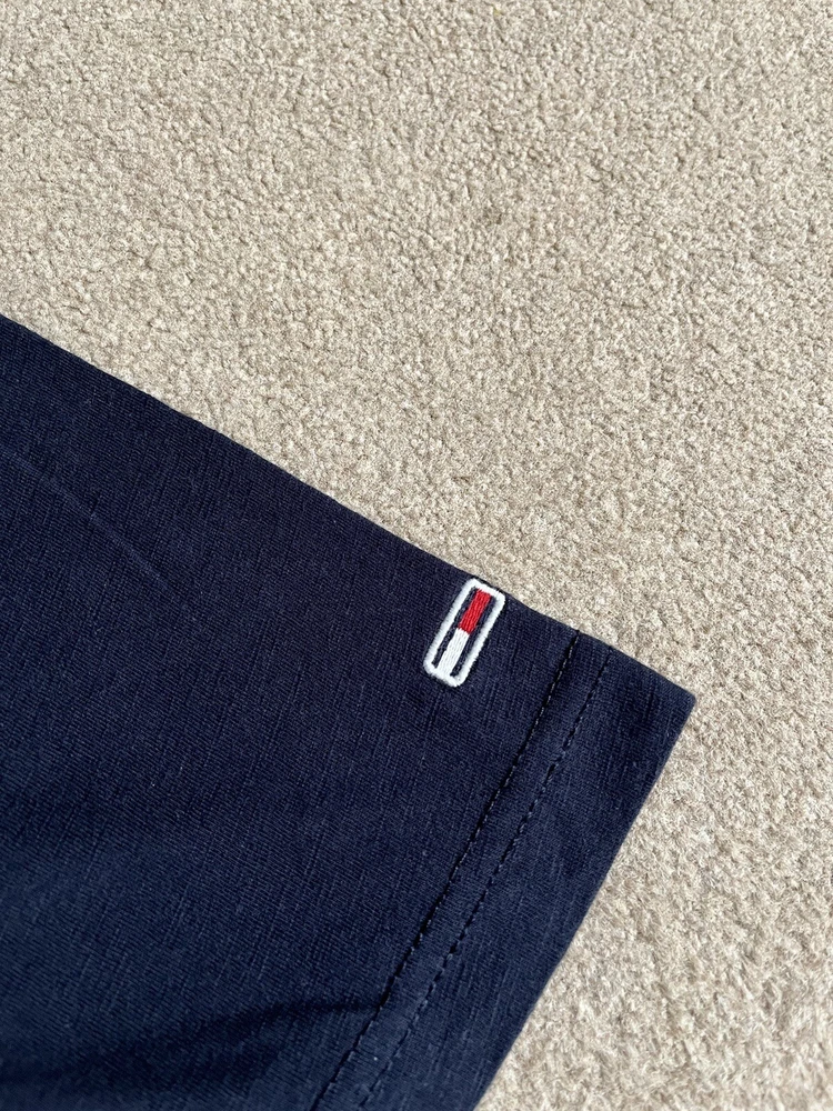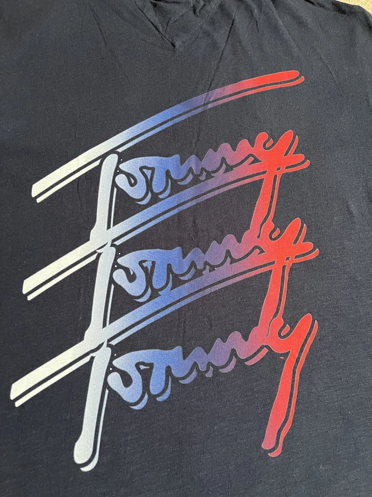 Men’s Tommy Hilfiger Navy Blue T-shirt With Back print - Size XL. Condition is Used. Dispatched with Royal Mail 2nd Class.