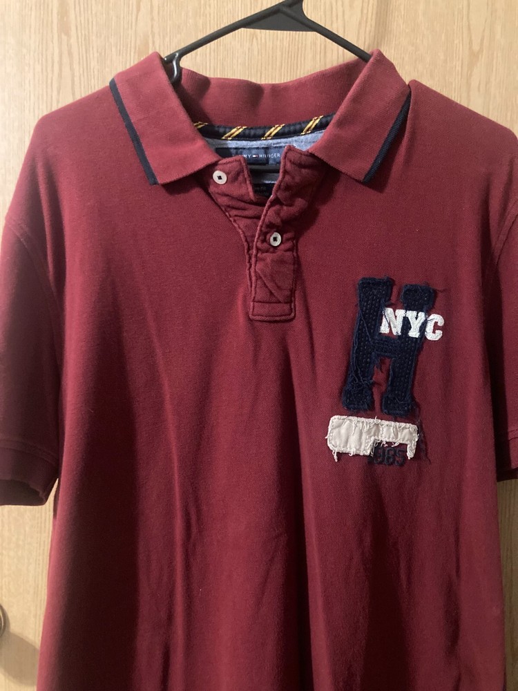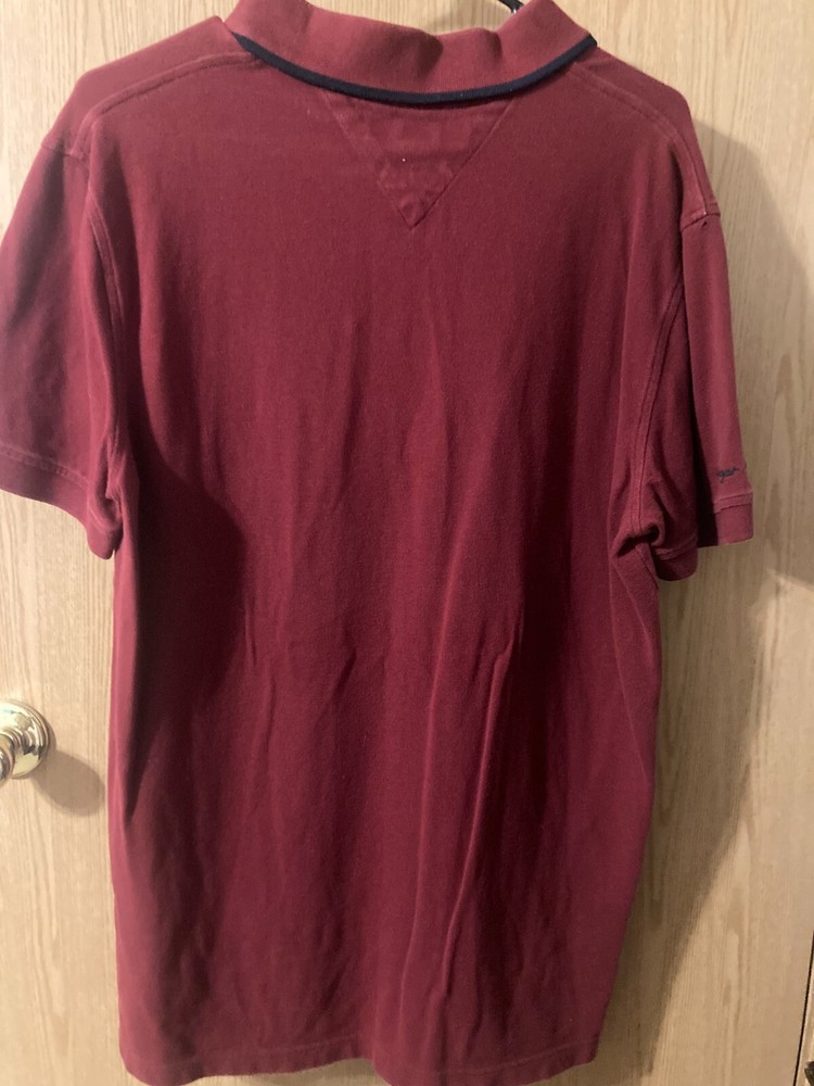 Elevate your casual wardrobe with the classic Tommy Hilfiger polo shirt. Designed for the modern man, this burgundy polo embodies a perfect blend of style and comfort. The shirt comes in a regular fit, size large, making it an ideal choice for those who value both elegance and ease. Crafted with attention to detail, the shirt features short sleeves and a dark fabric wash that lends a sophisticated edge to your everyday look. Whether you're hitting the golf course or enjoying a weekend outing, this polo shirt is sure to become a go-to in your collection.