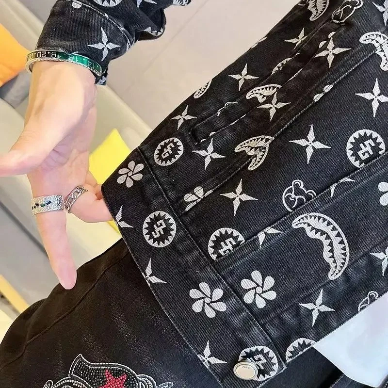 90s Hip Hop Flock Embroidery Streetwear Jacket for Men