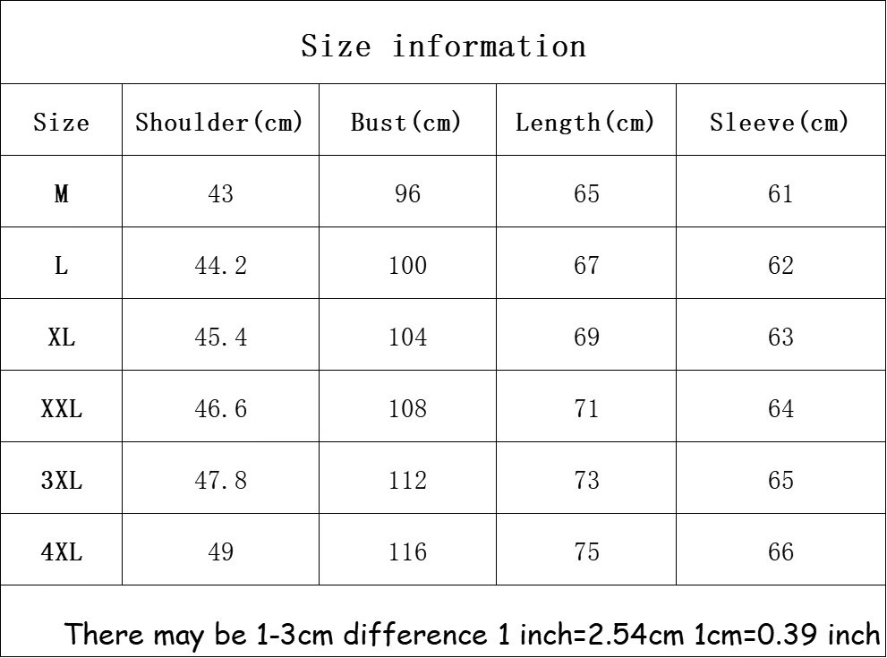 Men Luxury Fashion Trendy Bomber Streetwear Long Sleeve Denim Casual Jacket Coat FAST & FREE DELIVERY | GREAT PRICE | SECURE SHOPPING | HIGH QUALITY Please pay attention! Please strictly follow our size chart carefully to select your correct size. Do not select directly according to your habits. please notice our size is Chinese size, it is 2 size smaller than Europe or US size, so please check the size suggestion carefully before buying! Please note: Due to differences in computer screen displays, the actual color of the item may vary slightly from the images shown. Try our size recommendation: M 44–52 kg (97–115 lbs) L 52–60 kg (115–132 lbs) XL 60–67 kg (132–148 lbs) XXL 67–75 kg (148–165 lbs) XXXL 75–83 kg (165–183 lbs) 4XL 83–93 kg (183–205 lbs) 5XL 93–103 kg (205–227 lbs) Size Chart Manufacturer Size IN Size Shoulder Bust Length Sleeve M 16.93 37.80 25.59 24.02 L 17.40 39.37 26.38 24.41 XL 17.87 40.94 27.17 24.80 XXL 18.35 42.52 27.95 25.20 3XL 18.82 44.09 28.74 25.59 4XL 19.29 45.67 29.53 25.98 Contact us & Feedback Customer satisfaction is very important to us. If you have any problem with your order, please contact us through eBay messages . We are here to assist you and resolve any issues that arise within 24 hours , so please give us a chance to do so prior to potentially posting any negative feedback. We'd like to be sure you are completely satisfied with your purchase. Payment Policy We give you a fast and secure PayPal Transaction. We also accept: VISA, MasterCard, American Express, Google Pay, Apple Pay, Discovery and many others. Highest safety and security standards are taken so you can feel safe. Shipping Policy All orders are typically processed and shipped within 3 business days. You will receive tracking information automatically uploaded once the item has been shipped. Return & Refund Policy If the item got defects or damaged we provide refund ( 100% moneyback guarantee service) If you have a problem with the item you have got please let us know within a week. It must be returned the item within 30 days after the delivery. Please feel free to contact us via eBay messages if you have any problem with the item without opening a case on the site. We contact you within 24 hours and do our best to help you out! Thank you for shopping with us!
