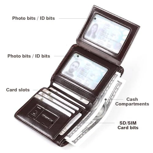 Return Policy Fast Delivery Trusted seller Mens Trifold Leather RFID Blocking Wallet with 2 ID Windows 2 Cash Compartments 6-8 card slots 2-3 inside slots Large Capacity Wallet Product Description Shipping Returns Payment Shipping Shipping is FREE to all addresses other than APO/PO boxes in the lower 48 states. All our stock ships from US-based warehouses. Shipped via USPS or UPS (depending on location and package weight) Unless stated otherwise, all orders will ship within 24-72 hours of your payment being processed. Check our feedback to see the great reviews of FAST shipping we offer. Returns Seller does not accept returns Payment We currently accept payment via eBay managed payments only. Once payment is cleared, we will dispatch your shipment within 1-3 business days. Please refer to the "Shipping" tab for more information regarding shipping speed to your destination.