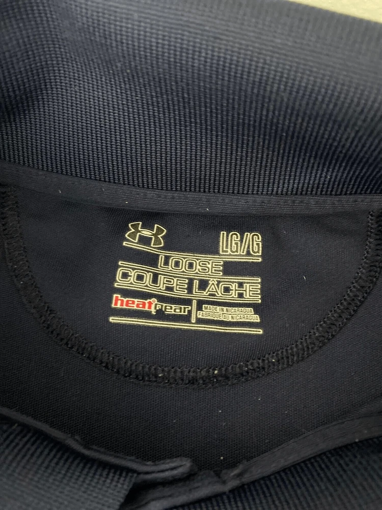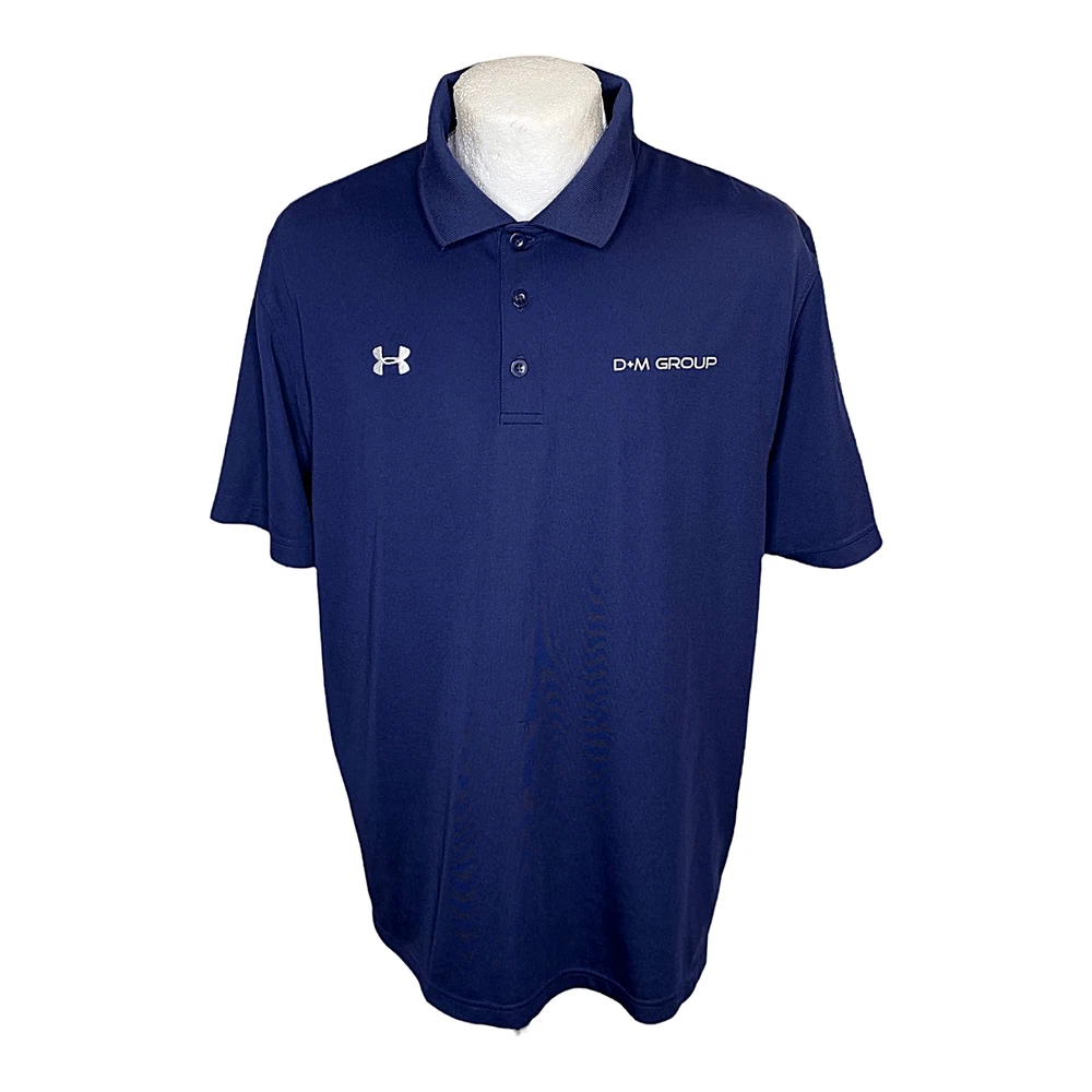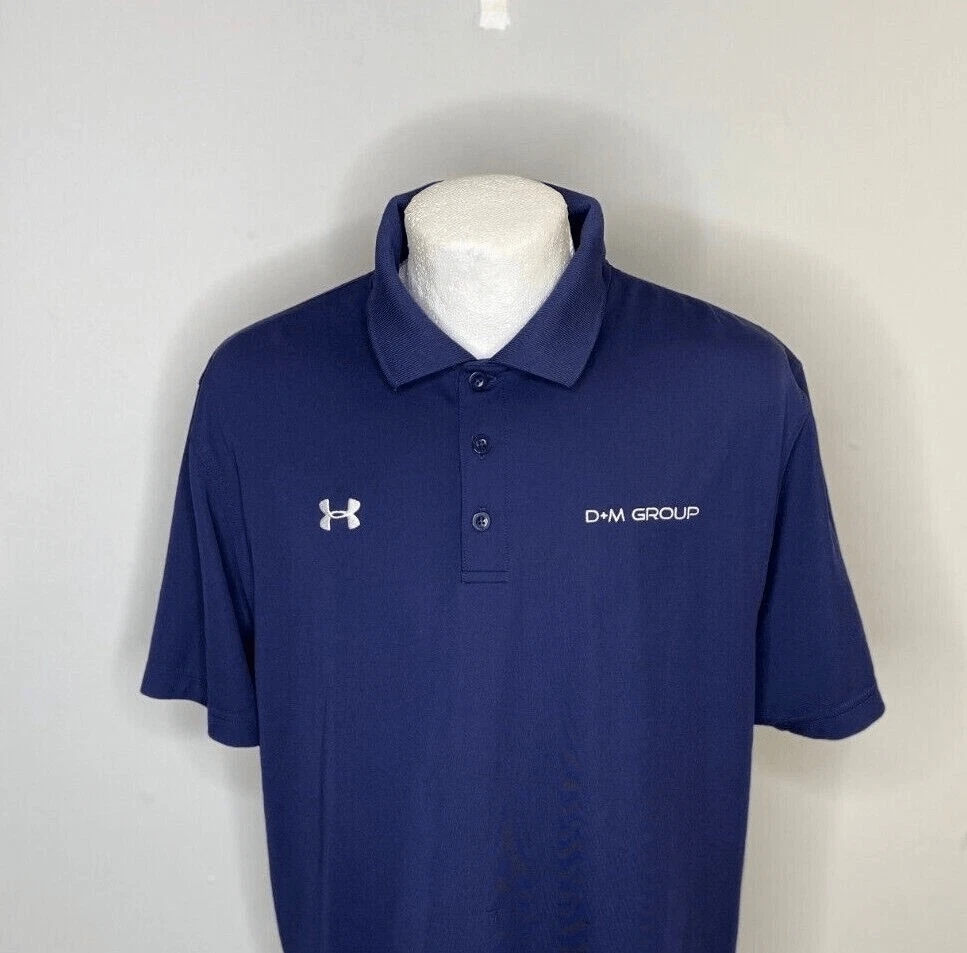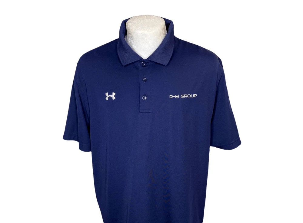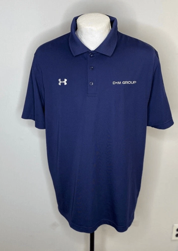 Men's Under Armour Golf Polo Blue Heat Gear Size Large Loose Stretch Logo (2358) In very good condition logo in front Armpit to armpit measures 24" Blue Dark Polyester elastain Blend