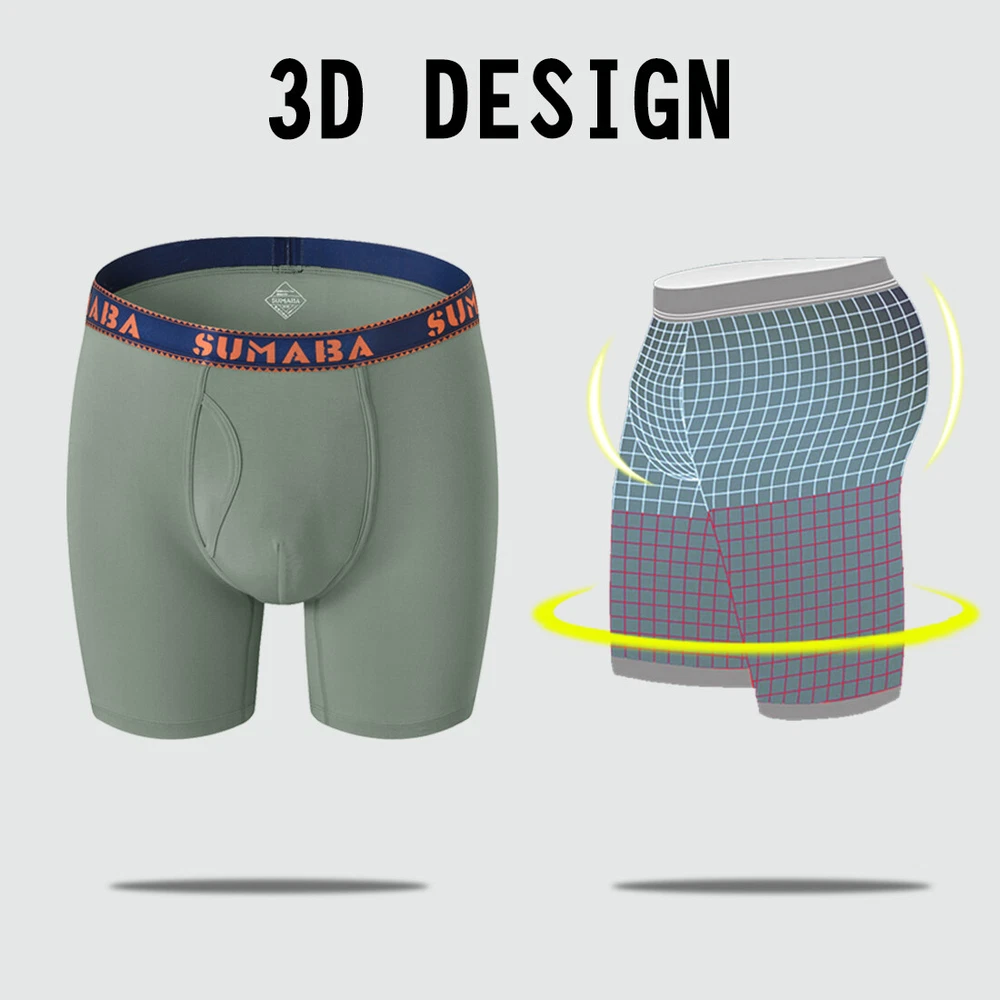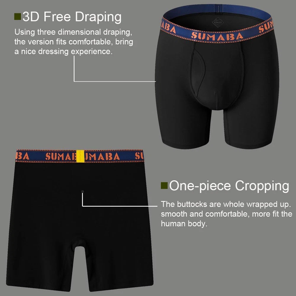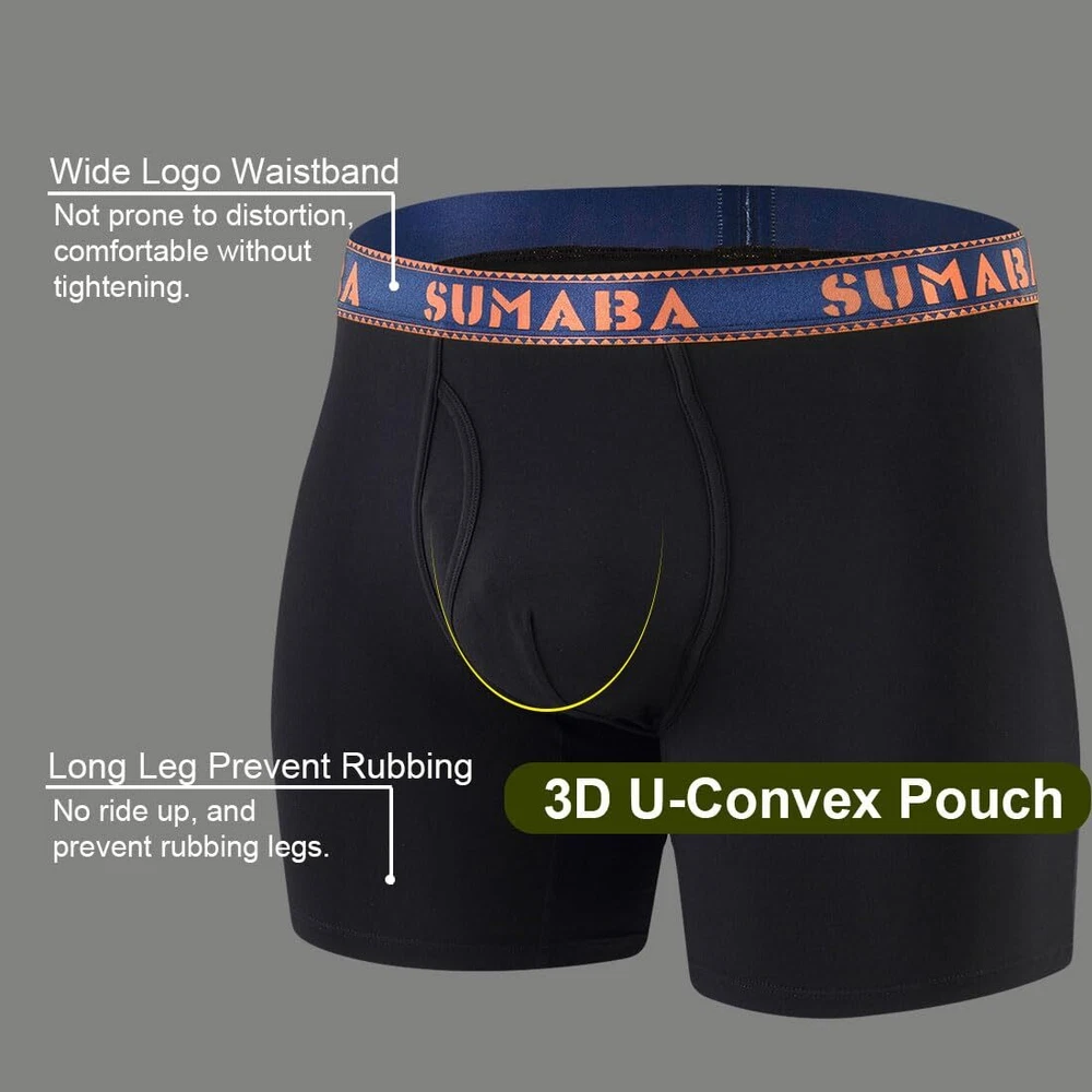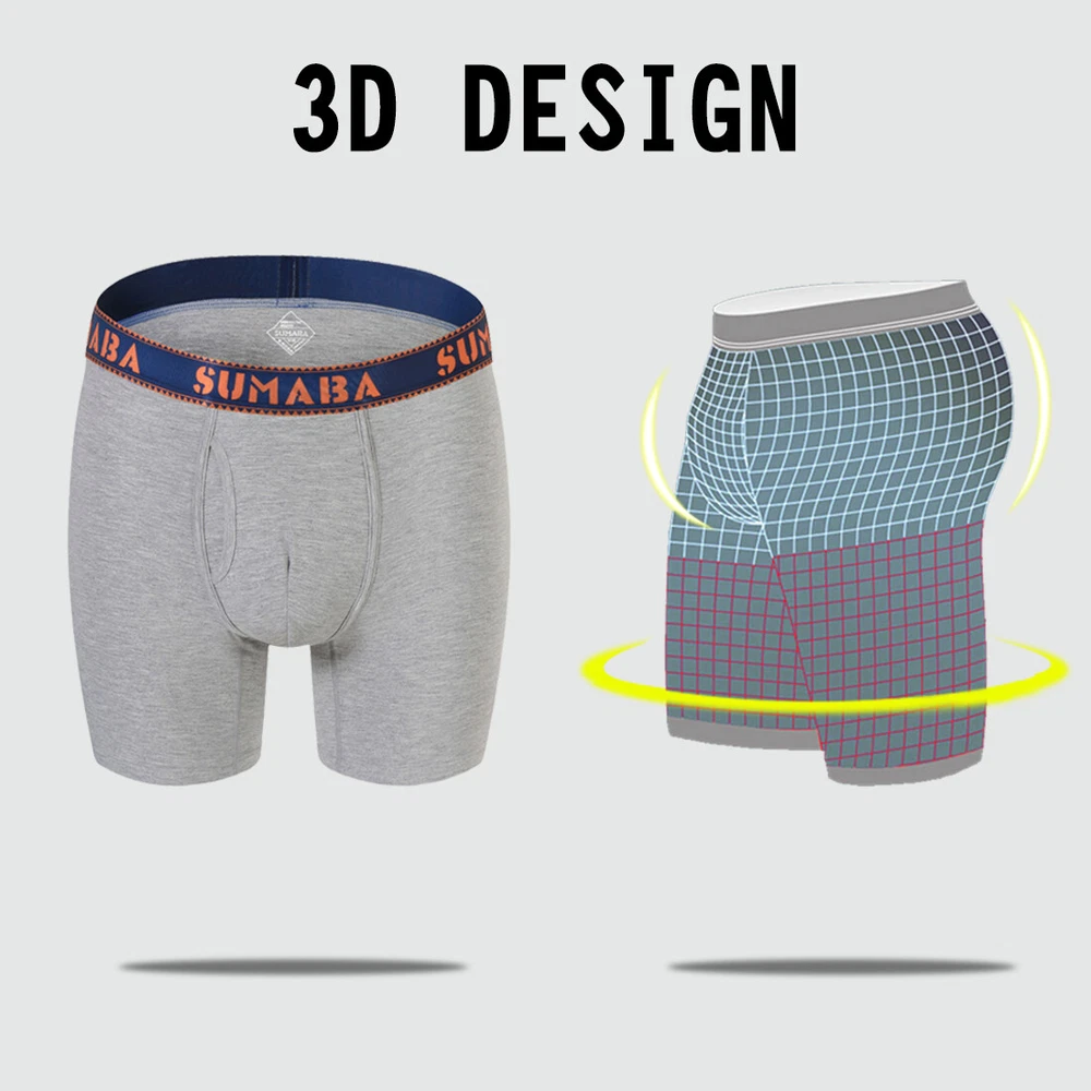About this item 【SUPERIOR FABRIC】This classic bamboo underwear for men is made of Bamboo Viscose with 6% spandex, soft and elastic, which make it a comfort flex fit boxer briefs for men, men's breathable underwear boxer briefs moisture-wicking. This lightweight men‘s briefs underwear is soft, functional and hard-wearin 【UNIQUE DESIGN】This long boxer briefs underwear for men features 3D U pouch with fly front opening covered, enough space for bulge and has funtional enhancing effect. Elastic waistband in contrast color with letter print make it fashion and special. 6 inches inseam men boxer briefs increase comfort and keep warm 【INTIMATE DETAILS】Tagless boxer shorts for men and big boys won't pinch or bind, make sure comfort. Elastic Mid-rise waist design of this anti chafing boxer briefs for man is for easy pull on and take off. Long leg trunks for men with our good struction design would cover your thigh well to prevent cuffs ride-up and hike up in the base of thigh, make sure comfortable and functional 【WASH CARE】Machine or Hand Wash Cold, Do Not Bleach 【WAIST SIZE】5 Sizes of this men shorts available. M=32-34'', L=36-38'', XL=40-42'', XXL=44-46'', 3XL=48-50''