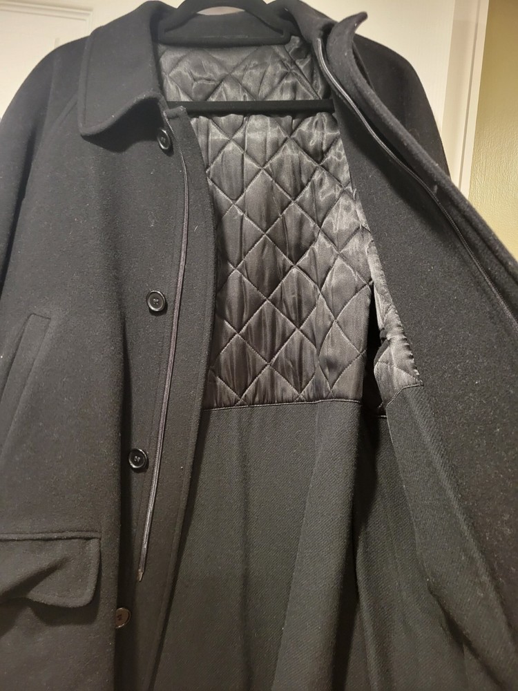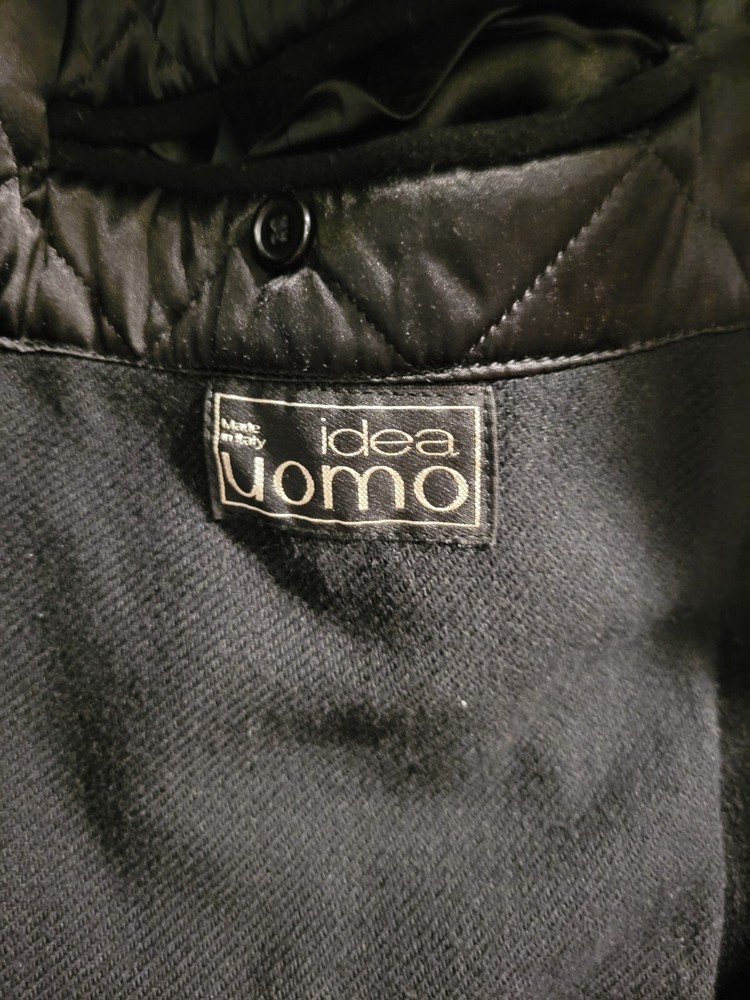 Elevate your winter wardrobe with this stylish Idea Uomo Men's coat. Very gently worn. Crafted from a luxurious cashmere wool blend, this coat exudes sophistication and elegance. The classic pea coat style zipper and button front perfect for any occasion, whether you're dressing up for a formal event or running errands around town. Made in Italy. This black coat features a regular size fit for men and is available in size L. The Idea Uomo brand is known for its quality and attention to detail, making this coat a must-have for any fashion-conscious man. Add this coat to your collection today and experience the ultimate in style and comfort.