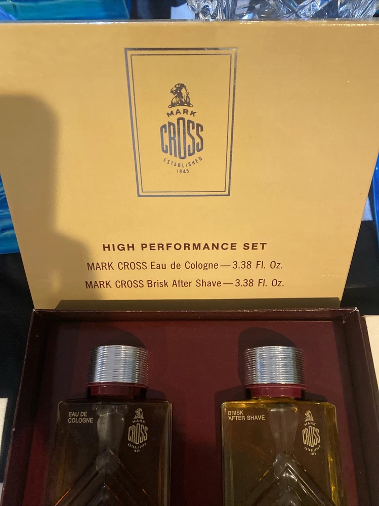 Get your hands on this rare vintage gift set from Mark Cross! This men's aftershave and cologne duo is the perfect addition to any perfume collection. The set includes two 3.38 fl oz bottles of Est.1845 Mark Cross fragrance and is sure to impress with its unique scent. Crafted with care and attention to detail, this set is perfect for any fan of vintage perfumes. The brand's reputation for quality products and attention to detail shines through in this set, which features a stylish design that is perfect for display. Don't miss your chance to add this unique set to your collection today!