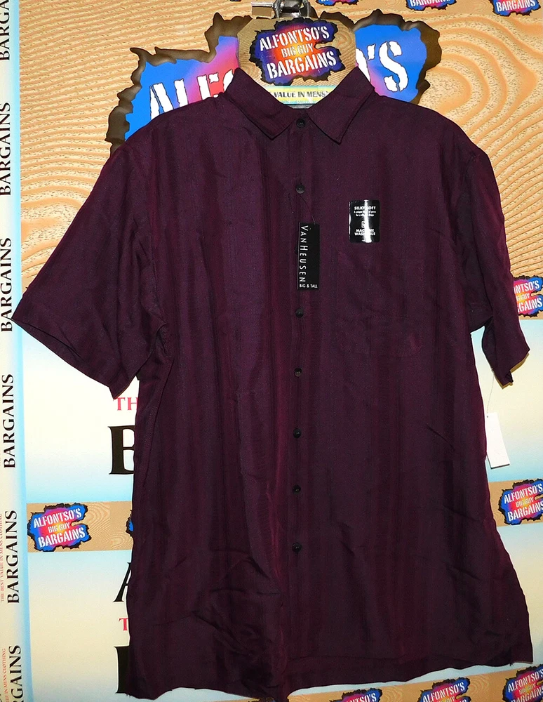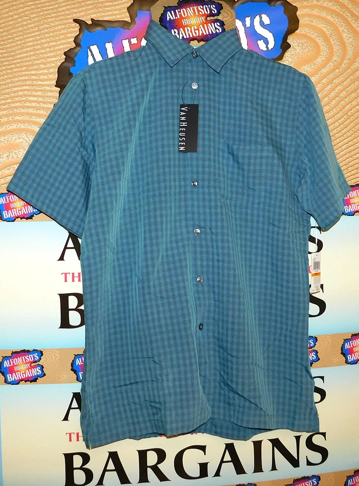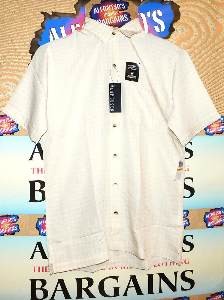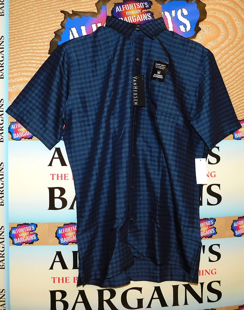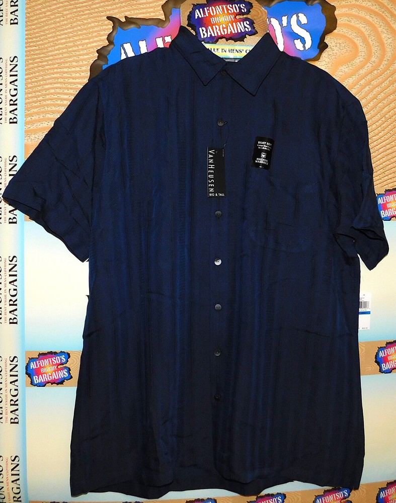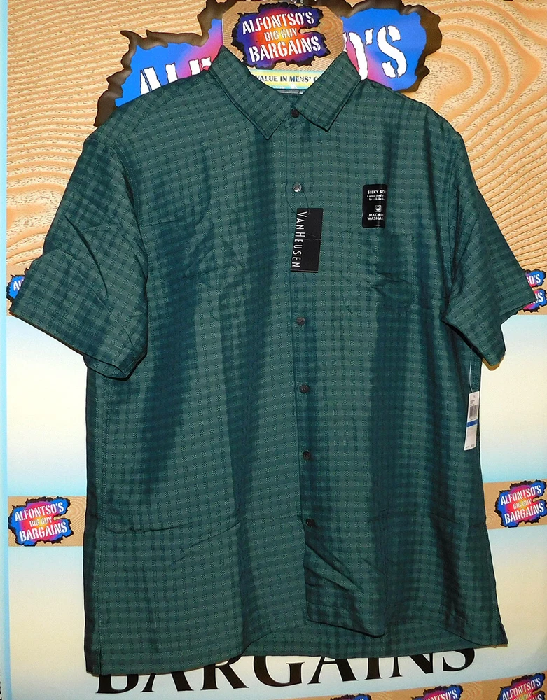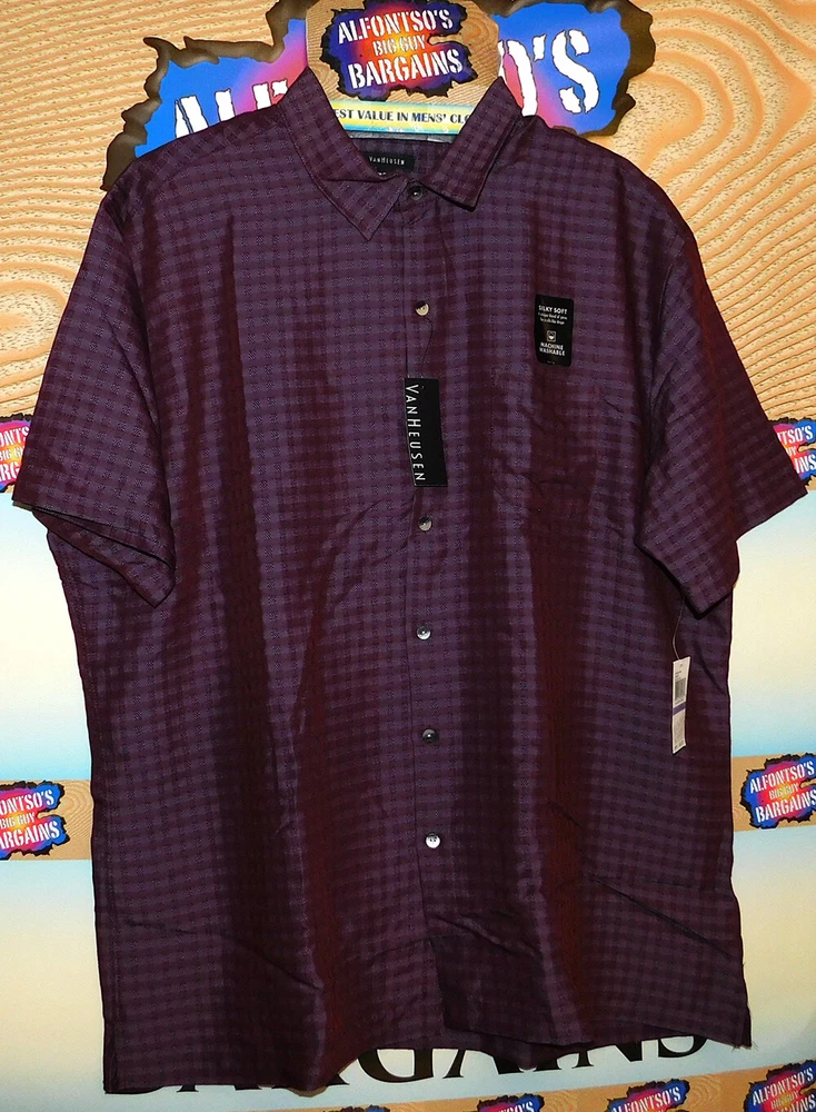 Van Heusen Silky Soft Short Sleeve Shirts Reg and Big and Tall Stock photos representative of color and style, not size. Crafted for comfort and style, this men's Van Heusen short sleeve shirt offers a silky soft touch that's sure to become a staple in your wardrobe. The classic button-front design and versatile rayon material make it an ideal choice for both casual and smart-casual occasions. With a thoughtful blend of elegance and ease, it's made in Egypt, ensuring high-quality construction and attention to detail. The unmodified piece retains its original design integrity, providing a reliable and fashionable option for those who appreciate quality and timeless style.