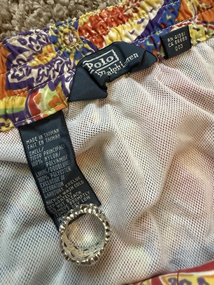 Pattern:Floralgtin13:Does not applyTheme:90s, Aloha, Beach, Hawaiian, Logo, Floral, Polo, Polo Ralph Lauren, Ralph LaurenDepartment:MenModel:Vintage Polo Ralph Lauren Swim TrunksGarment Care:Machine WashableSize Type:RegularBrand:Polo Ralph LaurenMaterial:Cotton BlendSize:34UPC:Does not applyCharacter:Polo, Polo Ralph Lauren, Ralph LaurenCountry of Origin:IndonesiaPerformance/Activity:Surfing, Life, Beach, Pool, SwimmingPersonalize:NoColor:MulticolorType:BottomLining Material:Cotton BlendSwim Bottom Style:TrunksFeatures:Breathable, DrawstringVintage:YesFabric Type:Cotton Blend