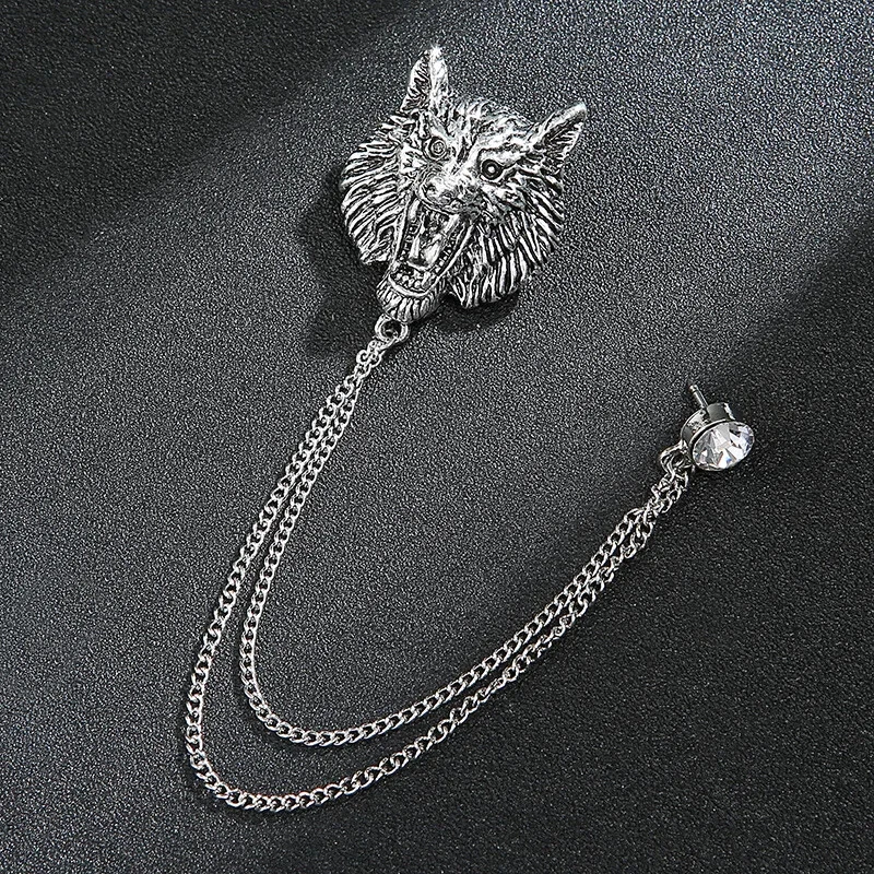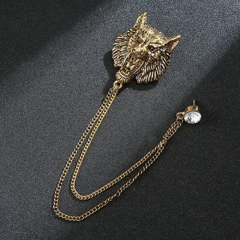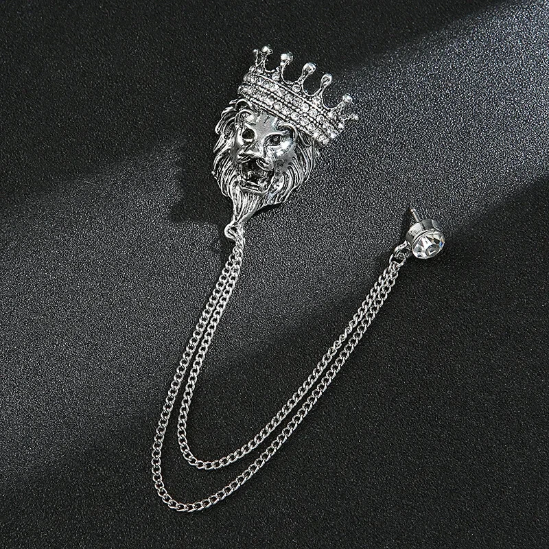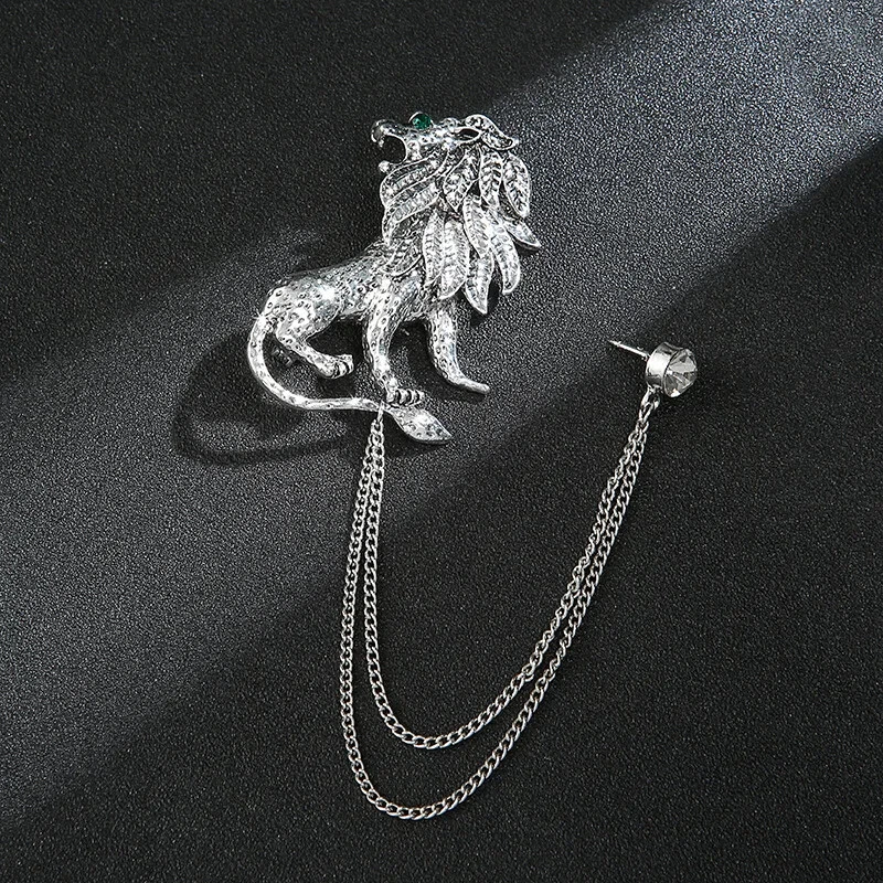 Men's Vintage Suit Brooch Lion Leopard Animal Brooch Chain Lapel Pin Accessories