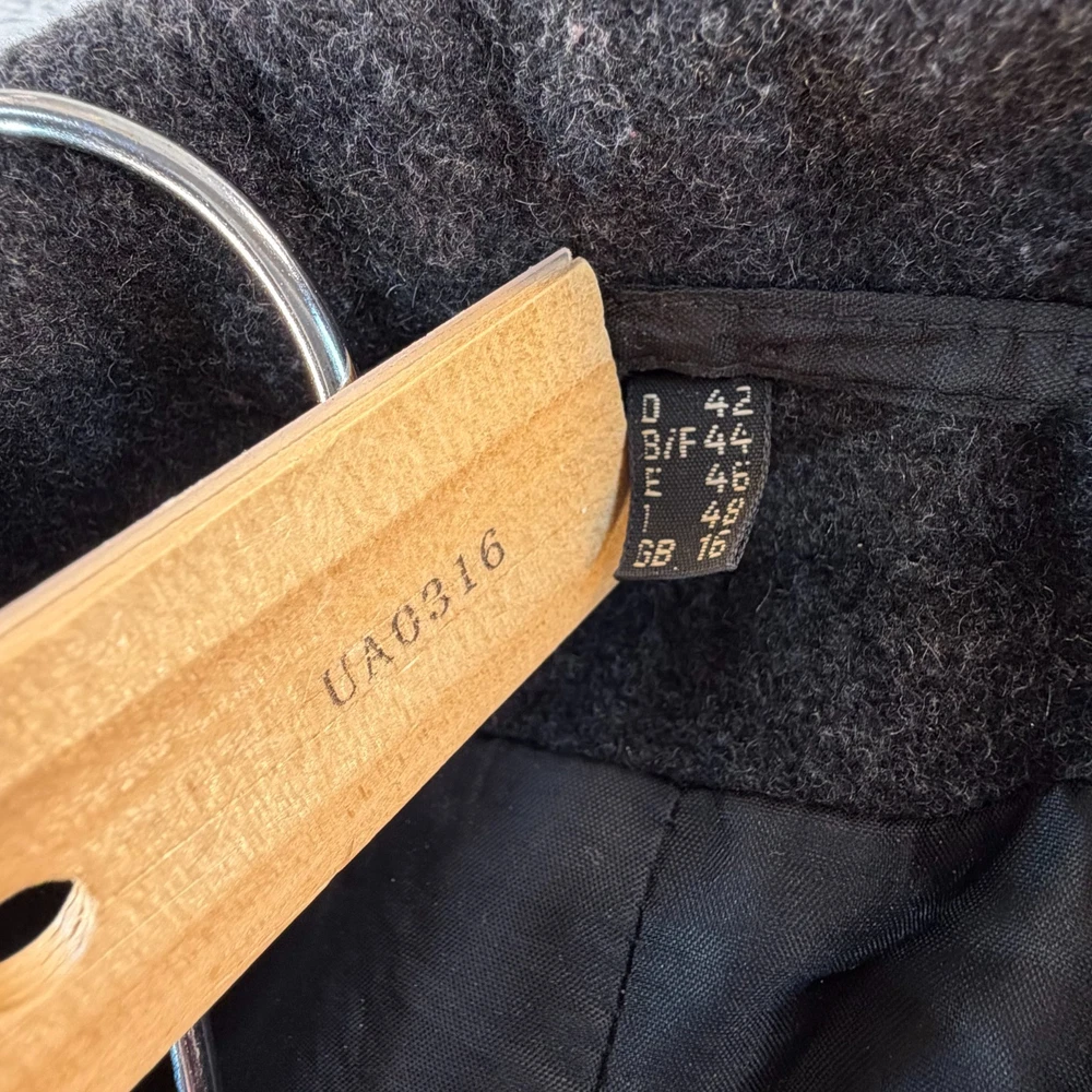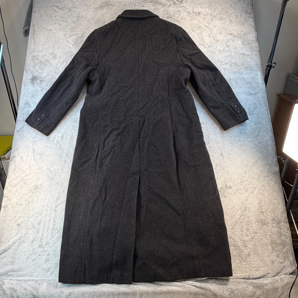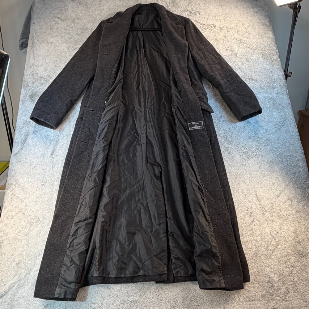 Men’s Virgin Wool & Cashmere Long Overcoat High-quality European overcoat crafted from a premium blend of virgin wool (Schurwolle) and cashmere. Classic full-length silhouette with clean tailoring and timeless structure. Shell: 70% Virgin Wool (Schurwolle), 20% Cashmere, 10% Polyamide Lining: 100% Viscose Color: Gray Closure: Button front Length: Approx. 50" (see photos) Size: Tagged 42 Extra: Spare button included (attached to tag) This is a substantial, well-made coat ideal for business wear, formal occasions, or elevated winter layering. Condition: Light surface lint typical of wool/cashmere fabric. Minor seam stress at the interior lining near the bottom center vent. Please review all photos carefully. Measurements: Please see included photos for measurements. 💛 Thanks for supporting our small family business!