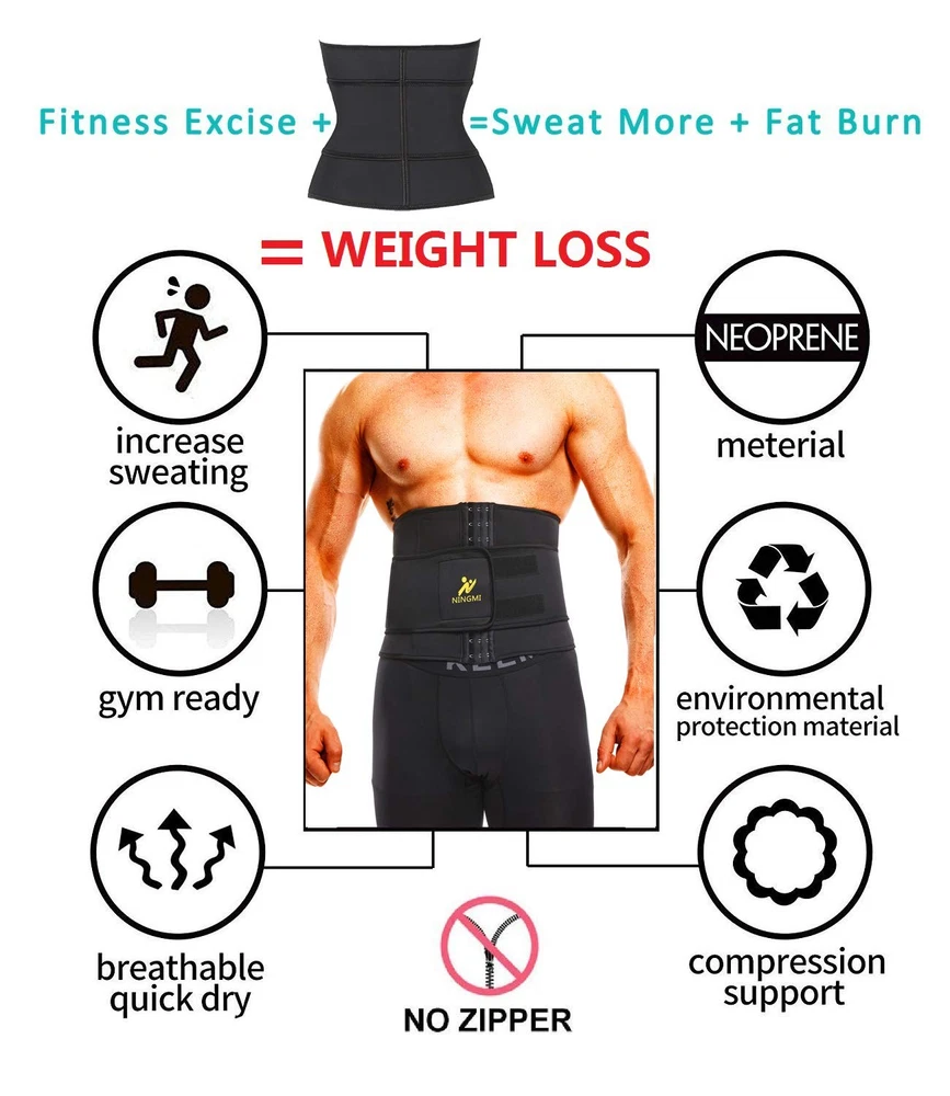PRODUCT DESCRIPTION Condition: Brand New product. Material: 90%Neoprene + 10%nylon Sizes: S/M/L/XL/2XL/3XL Front height: 12.6in (32cm) Back height: 11.8in (30cm) Feature: Built-in 4 STEEL METAL BONES (Spiral Structure) to Support Back Suitable for sport, running, yoga, gym, workout, office, postpartum recovery Perfect for abdominal strains, muscle toning, power lifting, ab training, and tummy control. SIZE MEASUREMENT Please refer to our size chart before order, and Choose the right size below that fit you. NOTE: If your waistline is between two size, please choose a bigger one. Size S -------- Fits waistline 30.3"-31.9"inch Size M ------- Fits waistline 32.3"-33.9" inch Size L -------- Fits waistline 34.3"-35.8" inch Size XL ------ Fits waistline 36.2"-38.2" inch Size 2XL ----- Fits waistline 38.6"-40.6" inch Size 3XL ----- Fits waistline 40.9"-42.9" inch HOW TO WEAR Before begining to exercise, you can wear waist slimmer under clother or above vest, 3 rows hook allows you to adjust the level of compression, we suggest you have a slightly tighter position. Waist slimmer that can be worn during workout, better not more than 3-4 hours. ALLERGY NOTICE Some mens are allergic to NEOPRENE, if you with allergic constitution, we don’t recommend to wear waist trainer belt. If necessary, we strongly suggest you to wear waistband under a vest or sports T-shirt. First time to wear waist trainer belt, you maybe feel uncomfortable or tight, it is normal, our body need a process of adaptation, please do not worry. HOW TO WASH Dot not machine wash. It is better to wash in cold water, and the temperature should not exceed 30 degrees Celsius. DO not bleach, it will hurt waist trimmer. DO not Iron. ① Waist Trainer Belt Well Design ☛☛ Ultra-thin neoprene men weight trainer, made of 80%neoprene + 20% nylon. This sauna belts have special ANTI SLIP flex design, breathable material on the outer layer, sewn edge is reinforced with high elastic PP needle thread, ensure that the edges are not easy to fall off and have good flexibility. To make a comfortable experience in working out. ② Mens Waist Trimmer Sweat Cause ☛☛ Neoprene Material helping quickly you Sweat 3 Times more than Usual exercise (Sauna Effect), it can speed-up the calorie burning, keeping your muscles warm and back support. And waste trainers can be wear under clothing directly adjustable. ③ Waste Trainer WIth Belt Strap ☛☛ Design of strap with strong magic velcro, Controlled with double compression in 2 sides, tummy belt is naturally flexible adjustable freely, Sauna waist trainer protect the lower back muscles and abdomen from strain and fatigue. Power lifting, ab training, and tummy control. ④ Waist Slimmer Fits Variety Of Sports ☛☛ Stomach wrap, built-in 4 STEEL METAL BONES (Spiral Structure), mens workout corset waist training, provide strong support for back and correct your posture. It is suitable for sports, running, Yoga, weightlifting, gym, office. ⑤ Shopping Risk Free Notice ☛☛ Please read our waist belt size chart to measure waistline, Any question about our waist band, please contact us firstly by email and we will assist you within 12 hours. Exchange/Return/Refund is available, promise you satisfied. Hope you can be satisfied with our waist shaper.