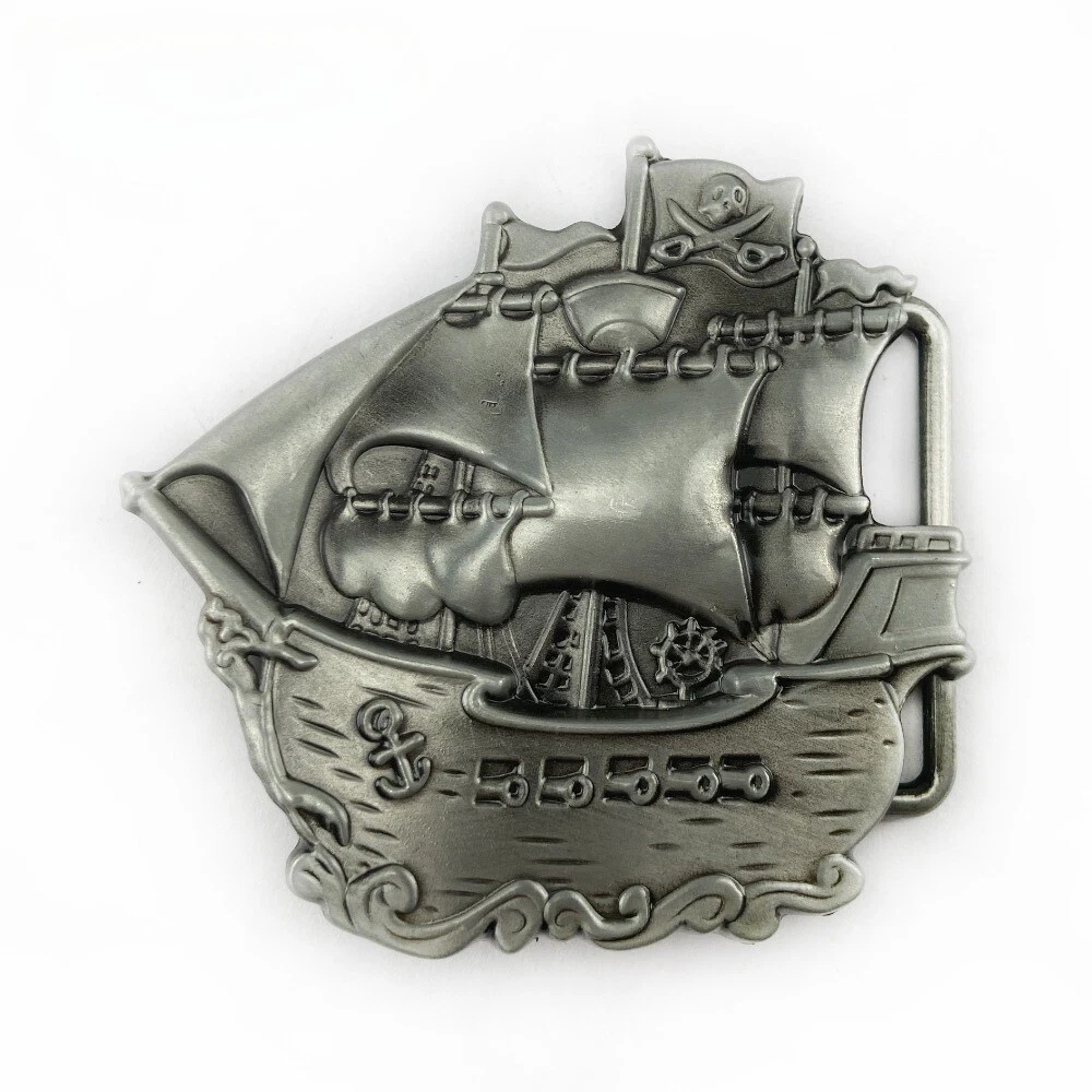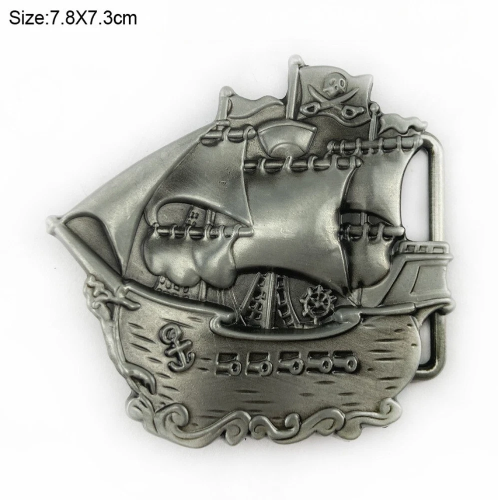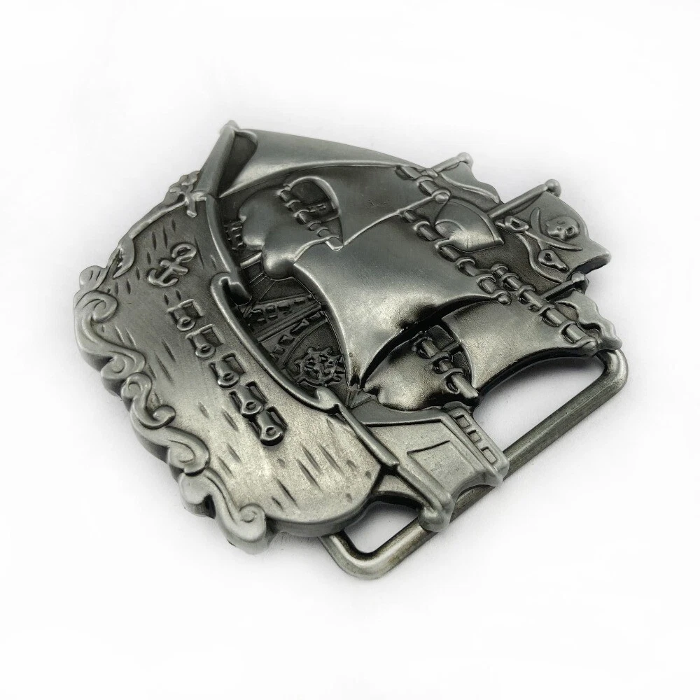 Men's Western Belt Buckle Cowboy Metal Rodeo Vintage Style Wear Pirate Ship Flag