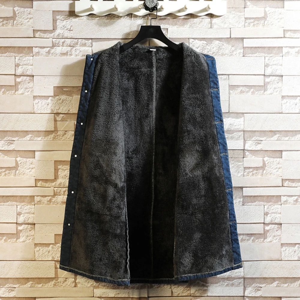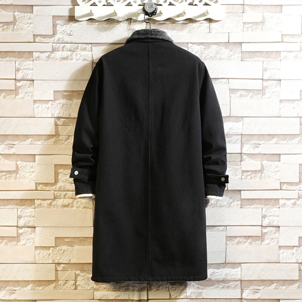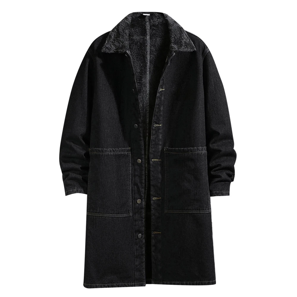 Mens Winter Autumn Loose Casual Denim Trench Coat Long Coat Warm Jeans Jacket