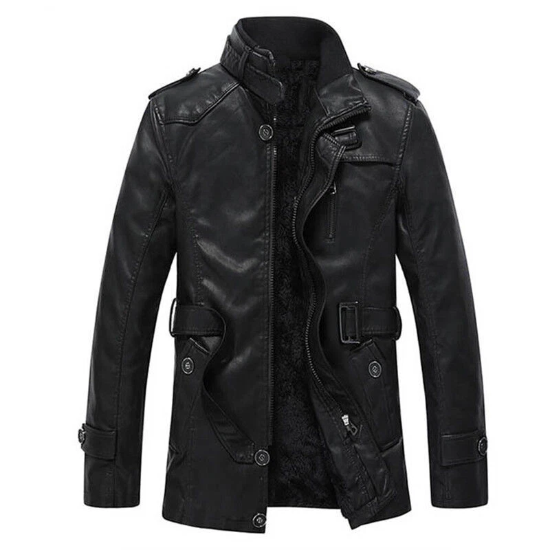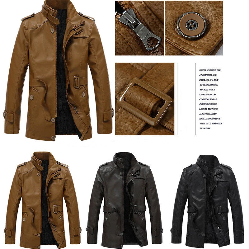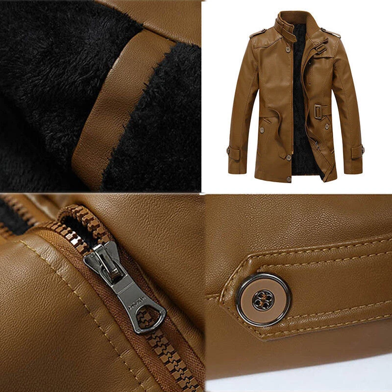 Fit: Slim Occasion: Casual Features: Lightweight Season: Fall, Spring, Winter Country/Region of Manufacture: China Lining Material: Faux Leather Closure: Open Front, Zipper, Button Outer Shell Material: Faux Leather Fabric Type: Fleece MPN: Does Not Apply Insulation Material: Polyester Size Type: Regular Style: Motorcycle, Motorcycle Jacket Theme: Classic Chest Size: XL-4XL Vintage: Yes Department: Men Type: Coat Brand: Unbranded