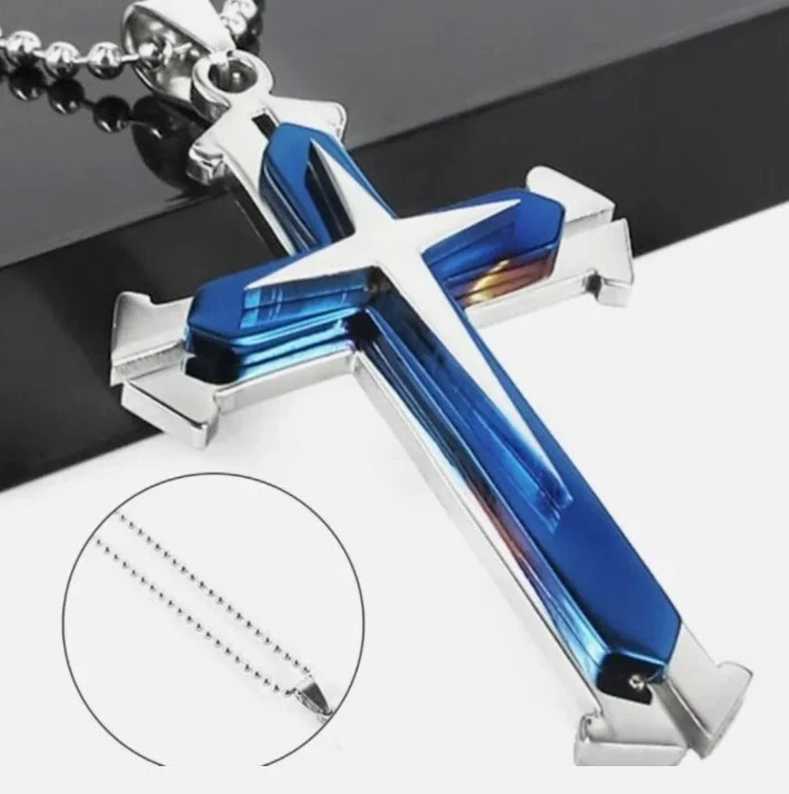 Mens Women Chain Necklace Cross Gold Pendant Jesus Gift UK. Blue Silver Stainless Steel Cross Pendant Unisex's Necklace Chain Women Man Jesus Cross Necklace Pendant Chain Choker Party Jewelry Product details Type: Necklace Theme: Beauty Gender: Men's women Style: Fashion, Punk Material: Stainless Steel Occasions: Daily Life, Club, Gift, Party, etc Features: Cross Pendent, Fashion Jewelry Chain Length: 50cm/19.67" (Approx.) Pendant Size: 5.2cm x 3.4cm/2.05" x 1.34" (Approx.) Special design and unique structure Fashionable and lovely styling Perfect to add some accessories to any occasion Great gift for her/him great birthday gift, christmas gift.
