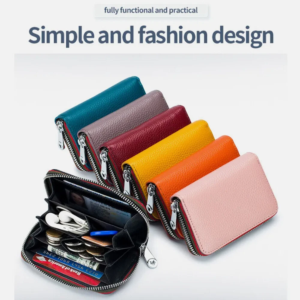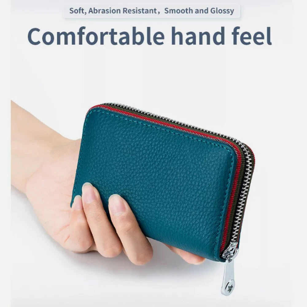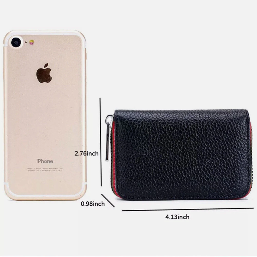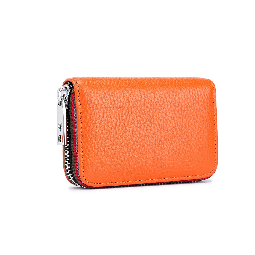 Description: 100% Brand new and high quality. Leather lining Zipper closure Color:Black/Coffee/Dark Blue/Orange/Rose Red/Light Blue Material: Soft Cow Leather ; the inner material is RFID Fabric; Stainless Steel zipper, Slide Smoothly RFID Blocking: Block RFID Readers From Scanning Your Credit Cards, Debit Cards, Banking Information, Smart Cards, RFID Driver's Licenses and Other RFID Cards Package Included: 1x Women's Mini Card Holder Wallet