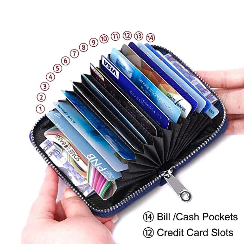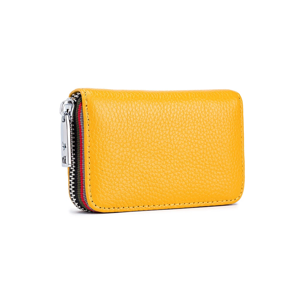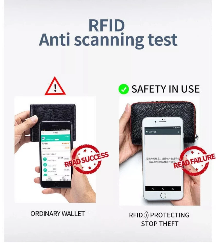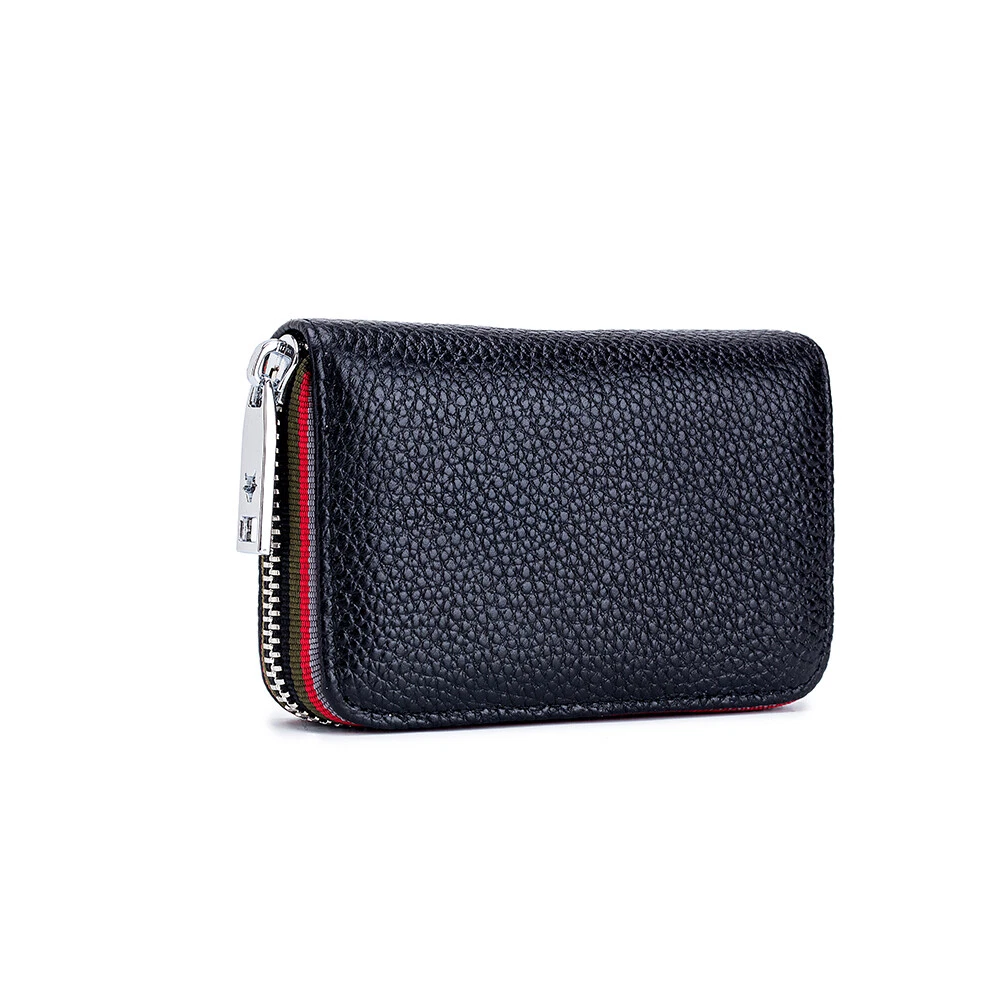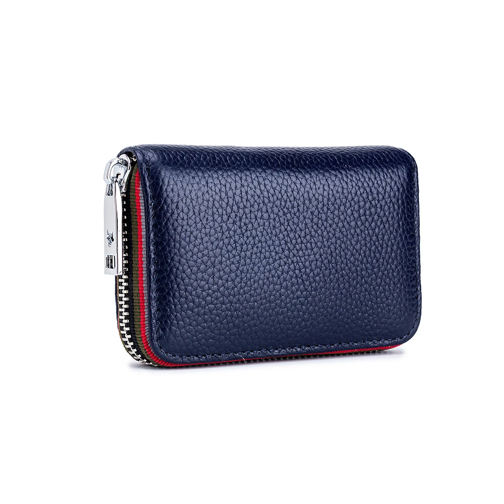 Description: 100% Brand new and high quality. Leather lining Zipper closure Color:Black/Coffee/Dark Blue/Orange/Rose Red/Light Blue Material: Soft Cow Leather ; the inner material is RFID Fabric; Stainless Steel zipper, Slide Smoothly RFID Blocking: Block RFID Readers From Scanning Your Credit Cards, Debit Cards, Banking Information, Smart Cards, RFID Driver's Licenses and Other RFID Cards Package Included: 1x Women's Mini Card Holder Wallet
