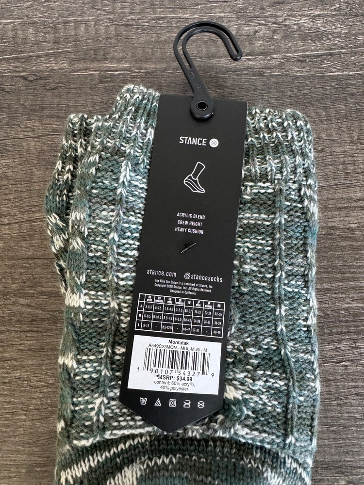 Country/Region of Manufacture: China Season: Fall, Spring, Summer, Winter Type: Socks Style: Crew Socks Brand: Stance Garment Care: Machine Washable Personalize: No Theme: Stance Socks Character Family: Cushioned Crew Socks Occasion: Casual Pattern: Montatak gtin13: 190107543279 Performance/Activity: Casual Number in Pack: 1 Pair Size Type: Regular Material: Acrylic Blend Color: Multicolor Department: Unisex Adults UPC: 190107543279 Character: House Slipper Socks Size: M Features: All Seasons, Heavy Cushion, No Slip Grip, Deep Heel Pocket Handmade: No Sock Length: Mid Calf