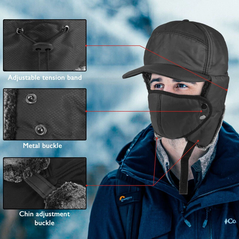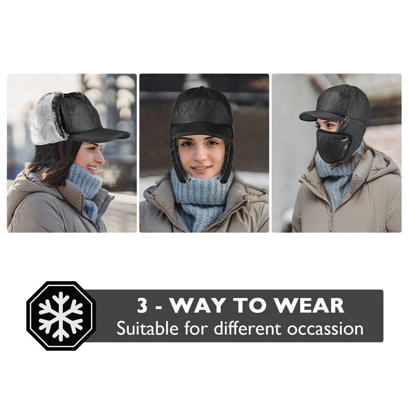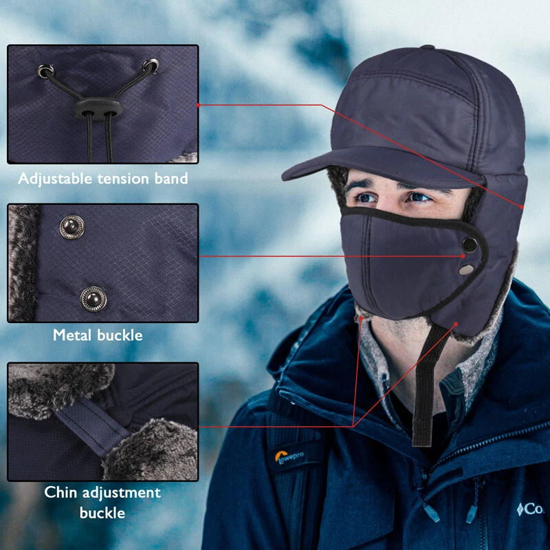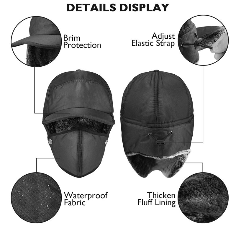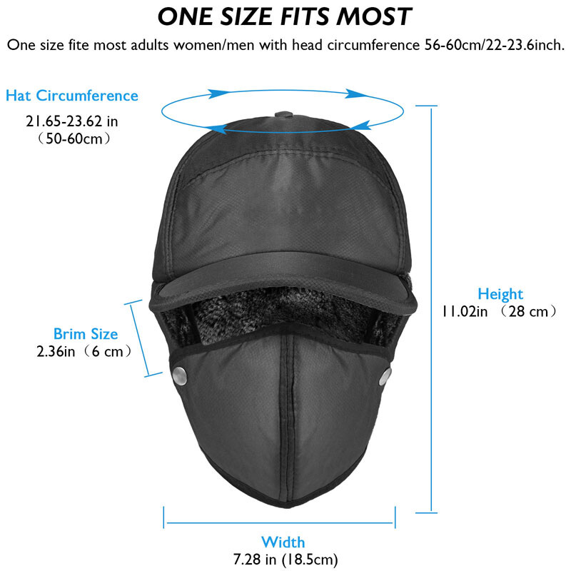 Gorros Gorras De Invierno Para Hombre y mujer Sombrero El Frio Bufanda De Moda Features: -Material: Made of thick cotton material, added thermal Faux Fur Inner Liner inside for extremely warm feelings. The Inner Liner feels not only soft, but also with awesome thermal preservation, which can cover your head tightly, works well against wind and dust in cold days. -Functional:To protect your face and head. -Universal Size : Fit most of the heads, flexible and stretchable . Stay on your head and won't fall off to keep your head and ears warm. -Widely use: Use for skiing, snowboarding, skating, sledding, snowshoeing, camping, hiking, horse riding, snowball fights, yard work, or any outdoor winter sports as well as daily use. -Ideal gift choice: As a gift on birthday, Thanksgiving, Christmas, or New Year gift for your friends and family.Suitable for men and women. Specifications: Material:Cotton Occasion:All Season:Winter Size hat circumference:50-60cm/21.65-23.62inch Height28cm/11.02inch Brim size:6cm/2.36inch Width:18.5cm/7.28inch Style:Aviator Hat Trim Material:Cotton Color: Black/Gray/Navy Blue Package Option A: 1x Bomber Faux Fur Hat Package Option B: 1x Bomber Faux Fur Hat 1x Gloves Payment Delivery details Terms of sales About us Contact us Payment Payments: Paypal, Google Pay, Visa, Master Card, Amerian Express, Discover. Delivery details All items are shipped from US warehouse located at NJ . We ship to your eBay or Paypal address. Please make sure your eBay or Paypal address is correct before you pay. Terms of sales Free return About us Pls contact our customer service firstly if have any problems , we will help to solve the issue, and could offer free return service for full refund or free replacement after confirming. You can buy from us with confidence Contact us If have any problems, please feel free to contact us.