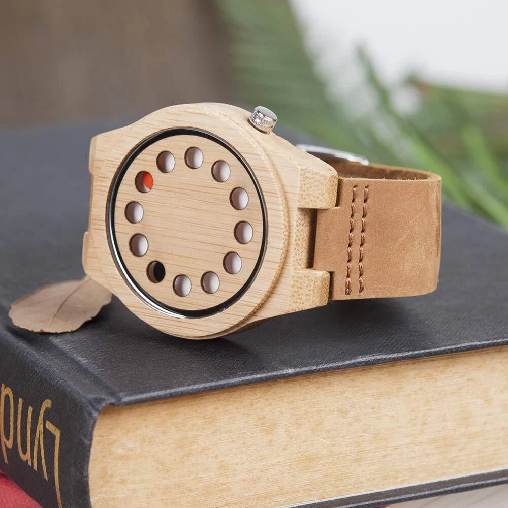 Product description: ********************************* OUR STORY ********************************* is a watch brand of unique style,natural watches & Wood watches. We hold our watches to the highest standards of craftsmanship, authenticity, and quality. Each of our products is truly an original. Every watch are handcrafted with ancient Asian sustainable wood and 100% genuine leather. Various types of materials including teak, ebony, maple and even , are all used during the creation process. These trees are hand selected by our expert craftsmen to ensure the exceptional quality of our wooden wrist watches. Specifications: 1.Model: bA03 2.Style: Unique & Casual 3. Materials: Wooden 4. Item type: wristwatch 5. Display way: a pointer type 6.Band Length: Men's Standard 7. Movement: Japanese Miyota movement 8.Not Waterproof: Getting it a little wet is fine,but not swim or shower with it on, the wood would react poorly to water. PLUS: Special design like 12 hole design which is different from other watches. shell, brown belt. Japanese quartz movement also makes it more special. Notes: 1. If the watch is too big for your wrist, you can take or joints out of the strap. 2. Due to the use of 100% natural wood as a material, there may be some spots on the , This is not a quality problem. 3.The watches are ordered in batches, and the natural colors are slightly different from each other, The watches may have some color difference. Package Contents: * 1 X Wooden Watch * 1 X Gift Box 1. Unique Great Craftsmanship Design -- 12 Holes Timer Design, Fashion Simple Eco-friendly wooden watch with Natural looking, Beautiful texture and Lightweight to hold. 2. Imported Japanese Quartz Movement -- Miyota 2035 Quartz Movement & Sony battery SR626SW which powers the electronic circuit and allows the quartz crystal to oscillate in-time with the circuit's pulses. Best of all, there is no necessary winding up. 3. Handmade Wood Watch -- Using Natural Wood, No Paint (Non-Hypo-allergenic) The wood is real and it is well polished. The leather band is put together very carefully and it is not scratchy. 4. Adjustable Wood Band -- Watch has flexible link bands that expand up to 8 ½ inches. A customized fit can be achieved when the screwed pins are adjusted by your jeweller or local watch repair . 5. Excellent Gift Box & 100% Guaranty & High Quality Service -- Carefully prepared & packaged. Best Gift for friends, loved ones, relatives. 1 year after-sale service and full support within 24 hours.