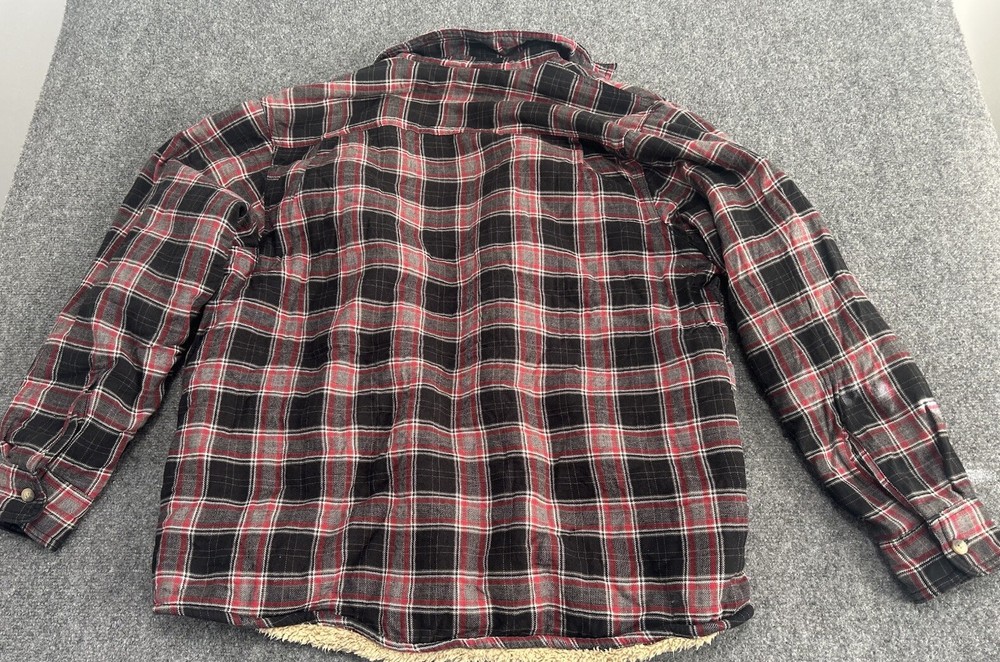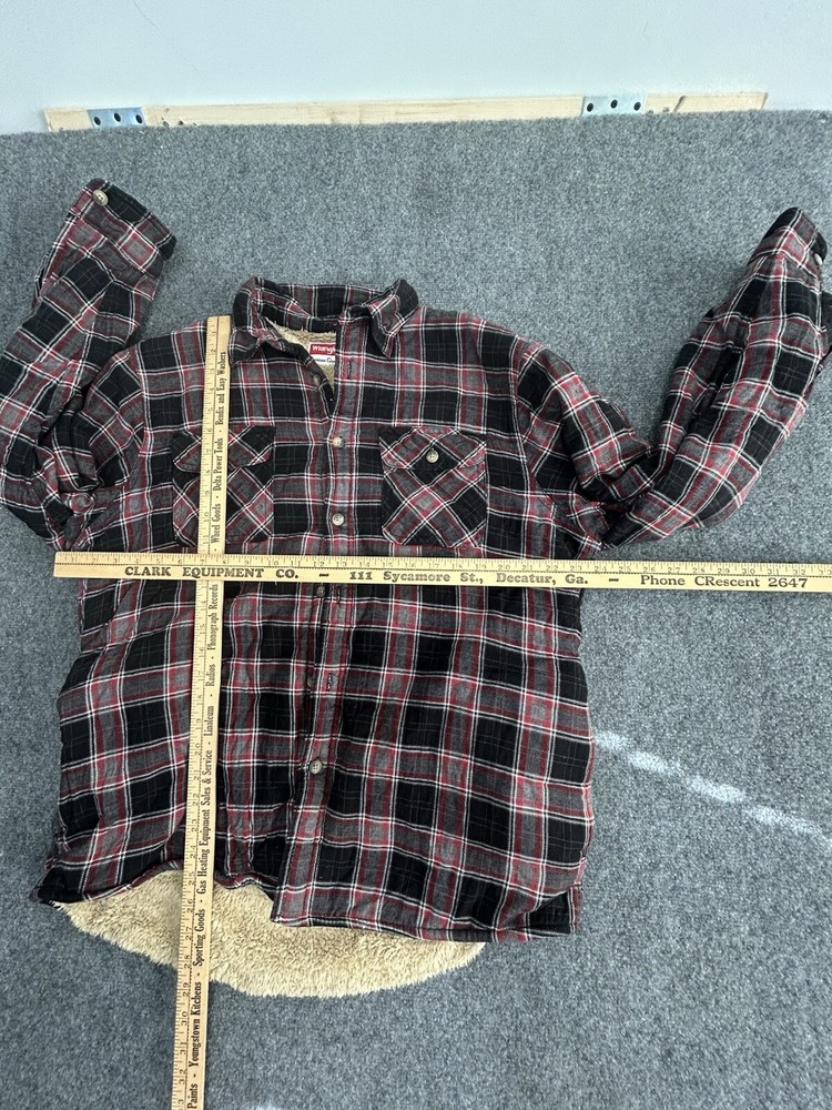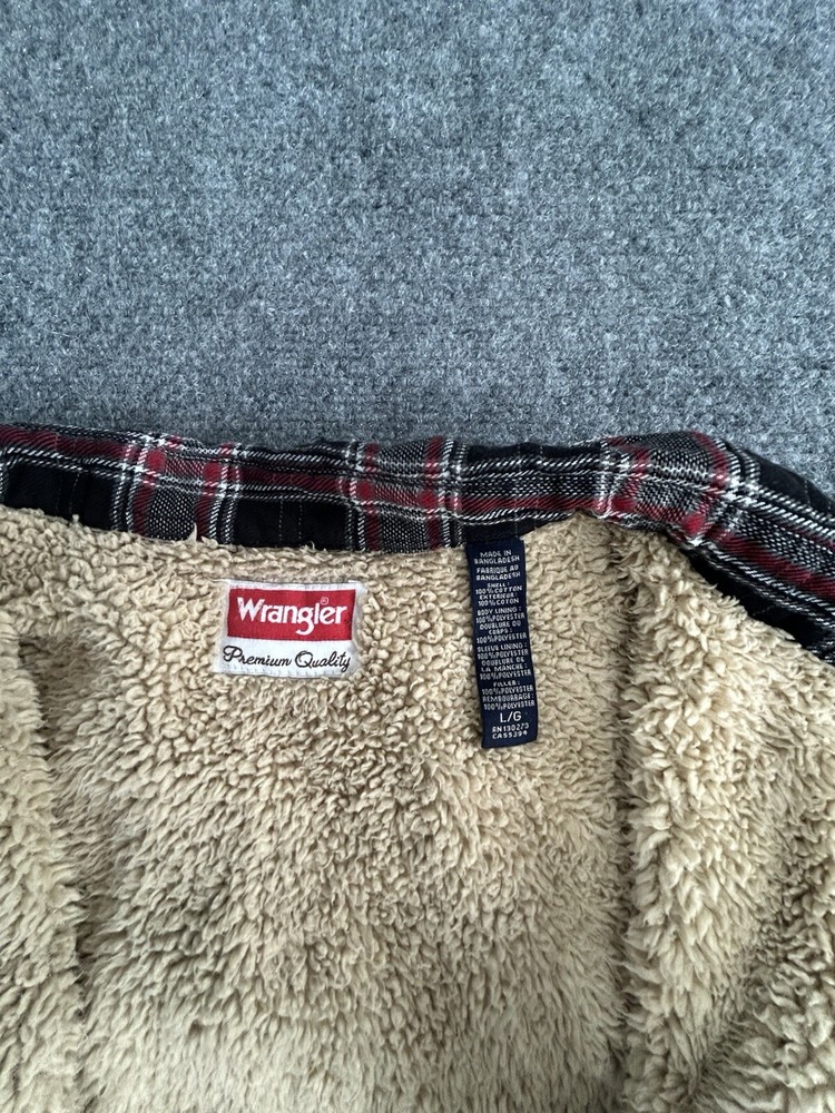 Men's Wrangler Shacket Authentic Plaid Flannel Button Large Sherpa Fleece Lined