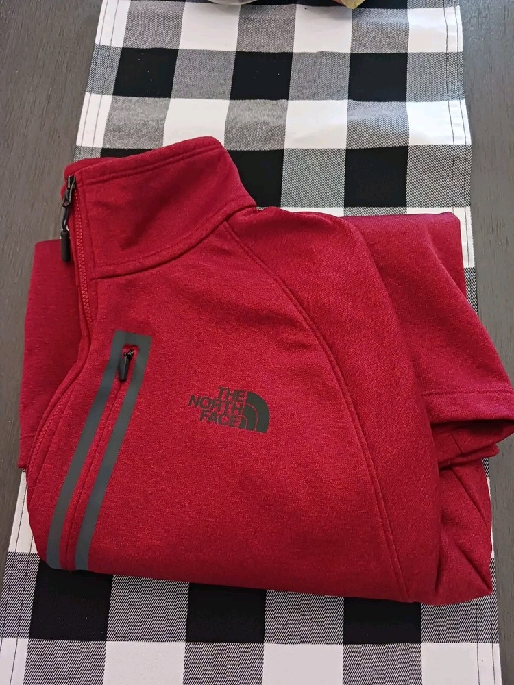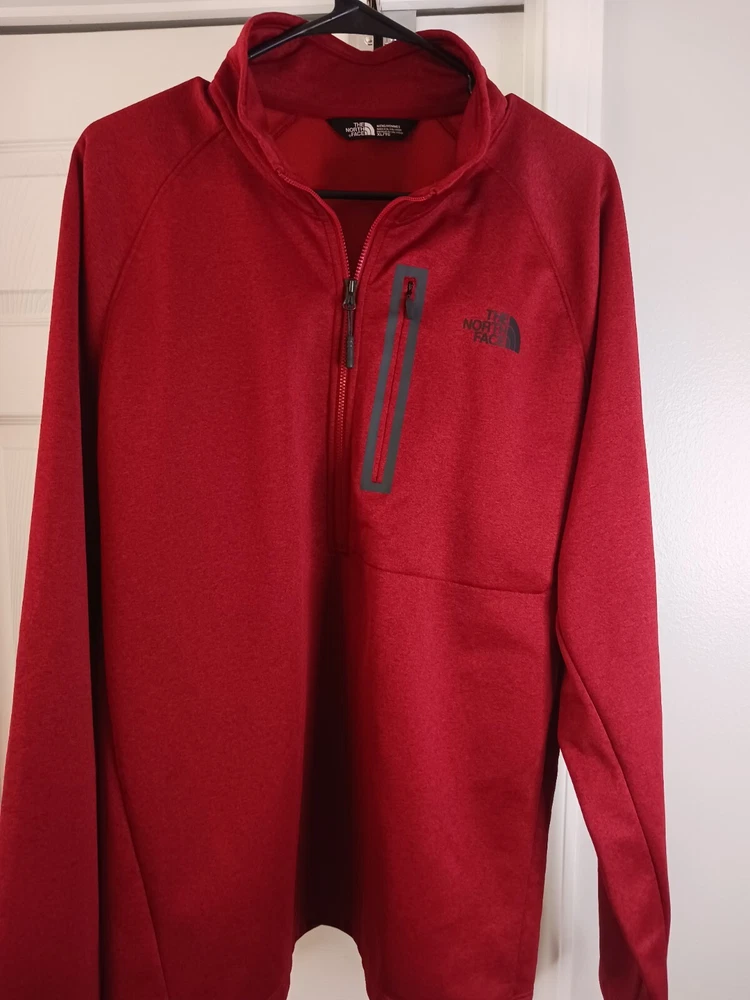 This fleece half-zip is a game-changer—super soft, warm, and perfect for layering. The fit is spot-on for an XL, and the maroon color looks sharp. Love the pockets and stand-up collar for extra coziness. Great for hikes, errands, or just lounging. Washes well, holds its shape, and the TNF logo adds a cool touch. Definitely worth every penny!